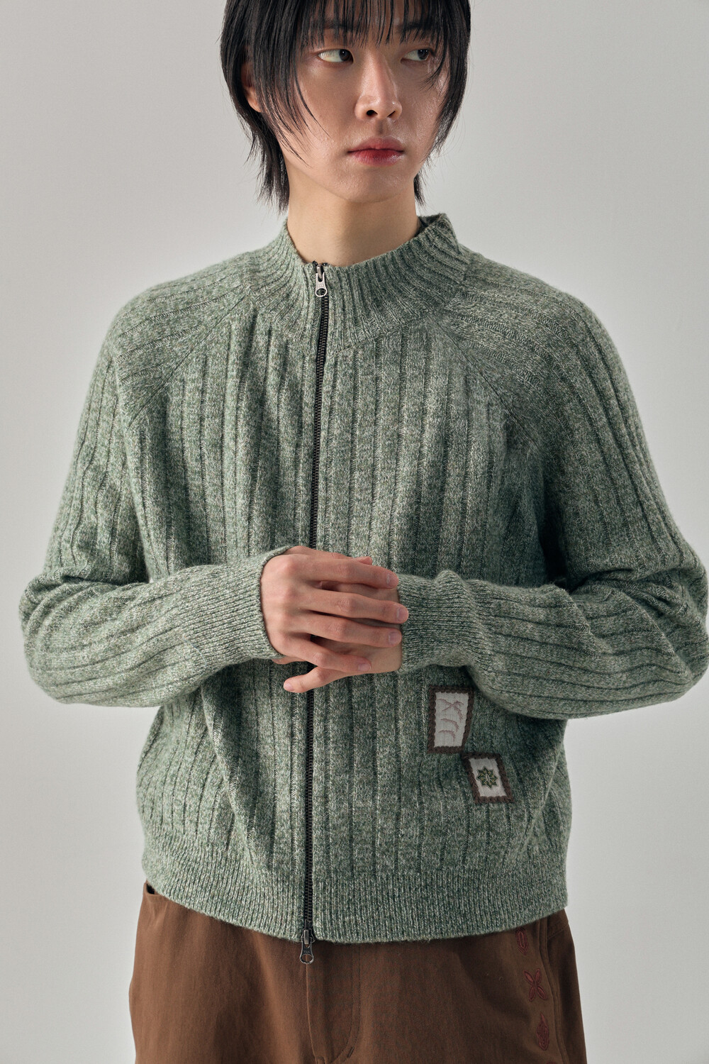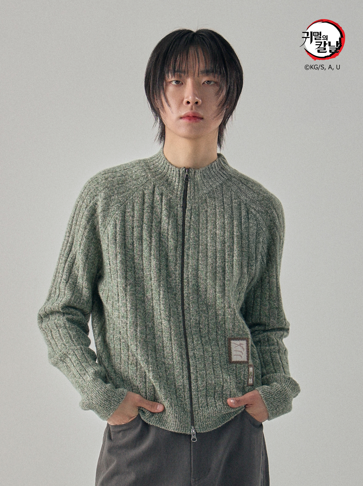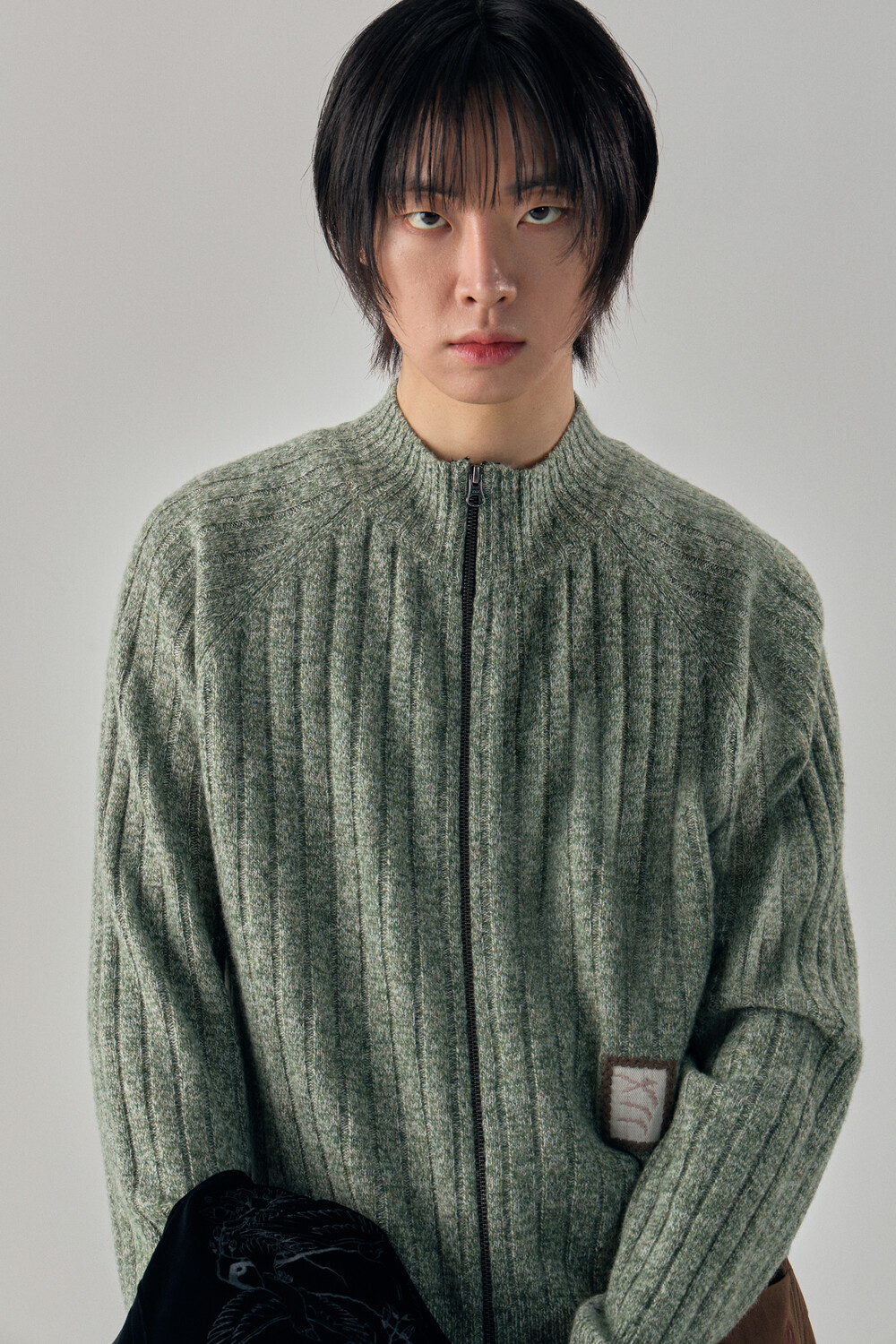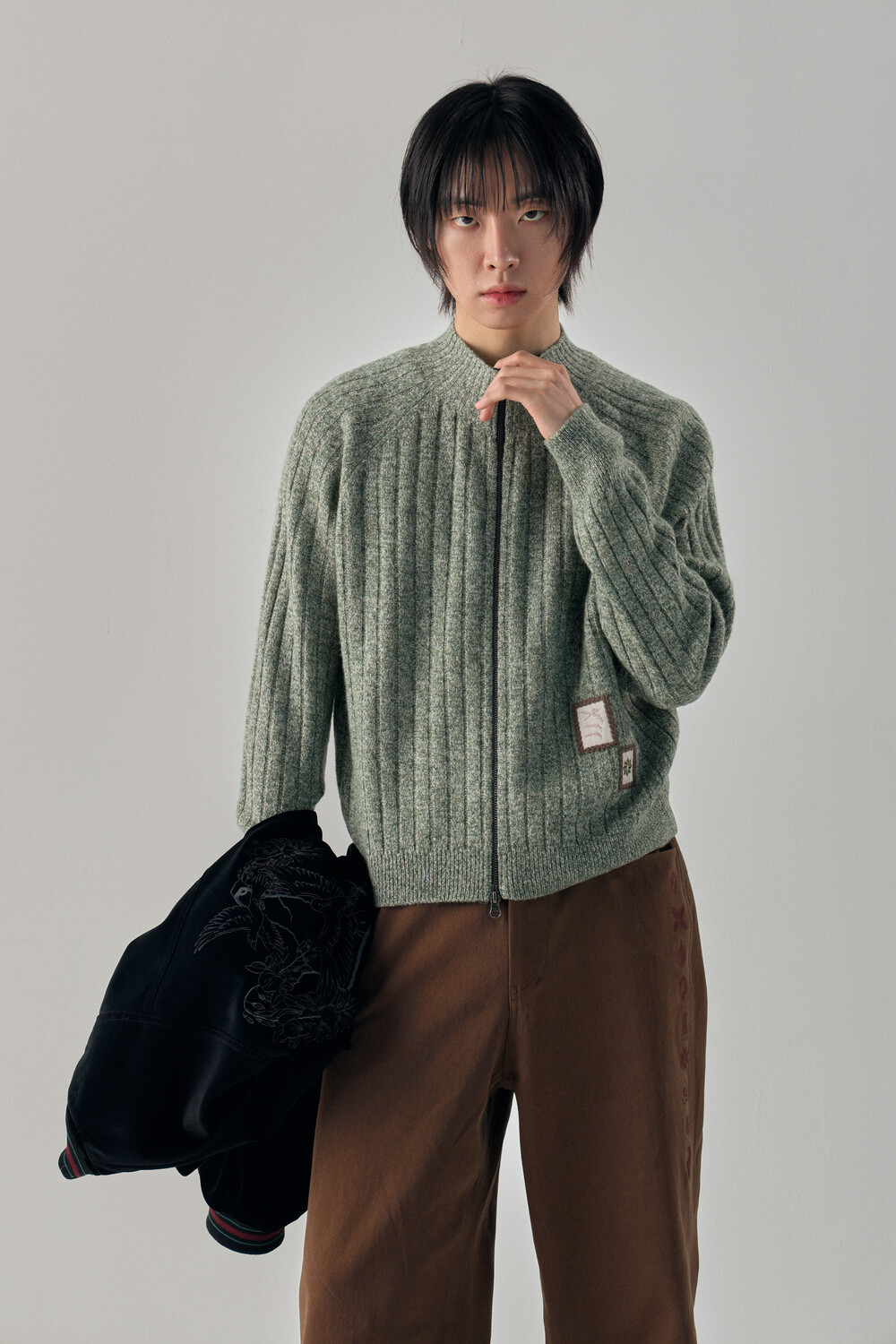 - 믹스드된 울 나일론 혼용 니트 패브릭 - 전면 작품의 캐릭터 모티브의 자수 패치 - 후면 웨이비니스 시그니처 디테일 - 목을 감싸는 모크넥 형태의 풀집업 - YKK 2WAY ZIPPER - 레글런 소매 - 레글런 어깨 부분에 절개라인과 미세한 봉제 작업을 통해 체형보완이 가능한 디자인