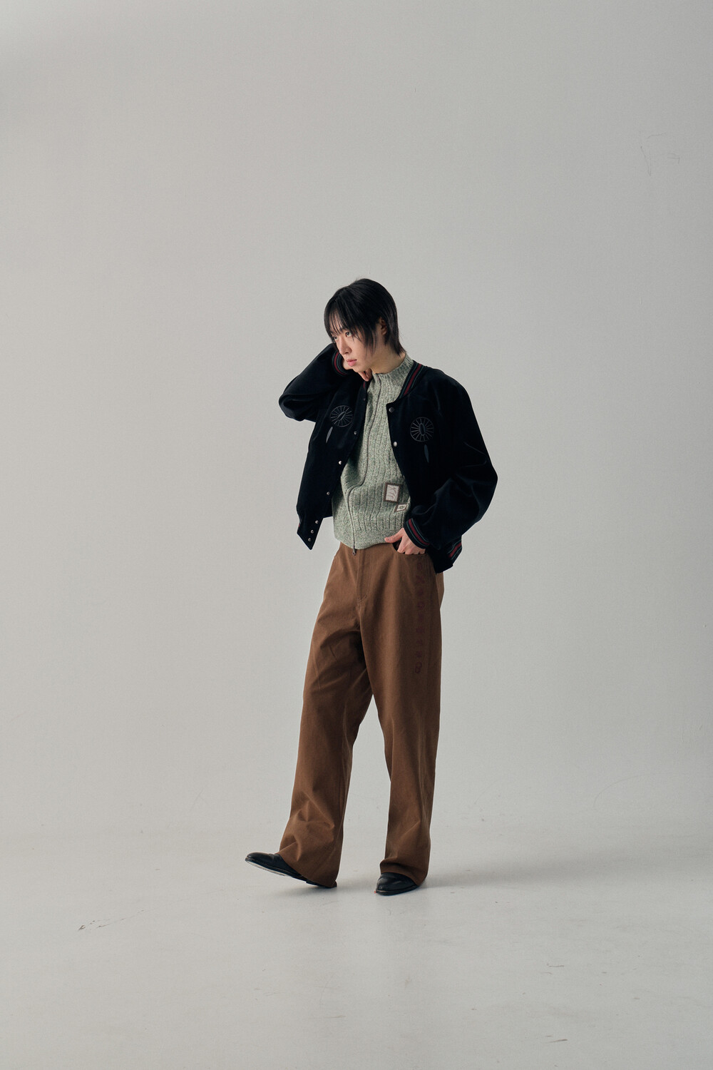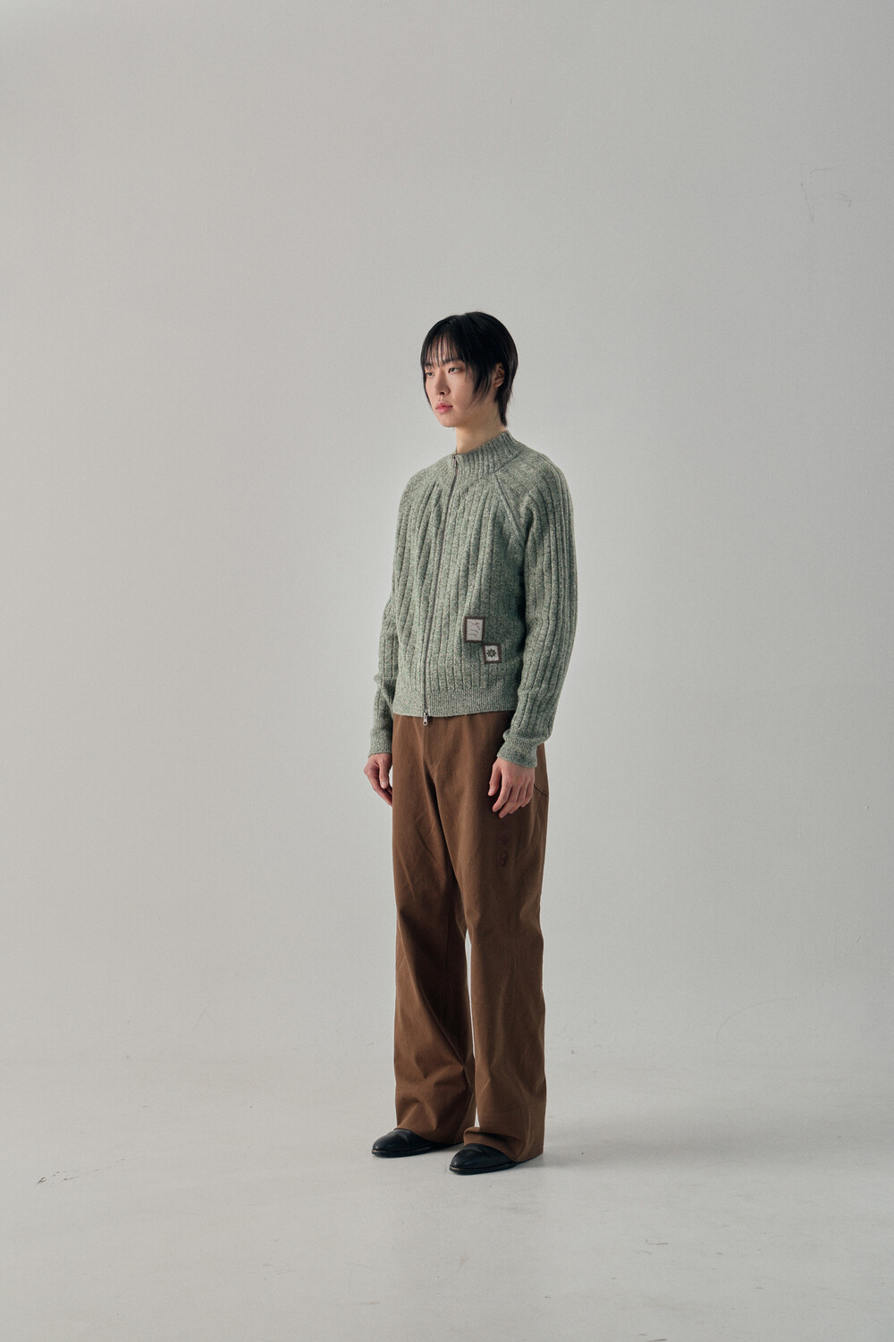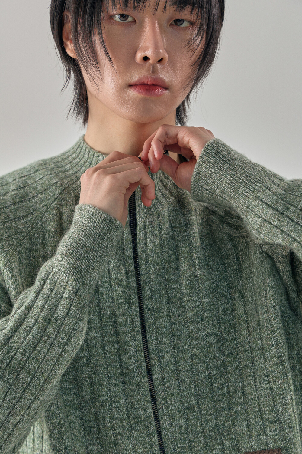 - 믹스드된 울 나일론 혼용 니트 패브릭 - 전면 작품의 캐릭터 모티브의 자수 패치 - 후면 웨이비니스 시그니처 디테일 - 목을 감싸는 모크넥 형태의 풀집업 - YKK 2WAY ZIPPER - 레글런 소매 - 레글런 어깨 부분에 절개라인과 미세한 봉제 작업을 통해 체형보완이 가능한 디자인