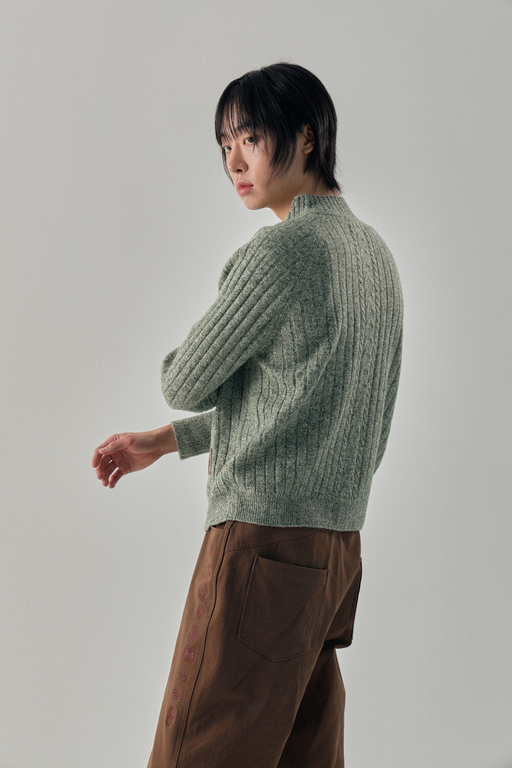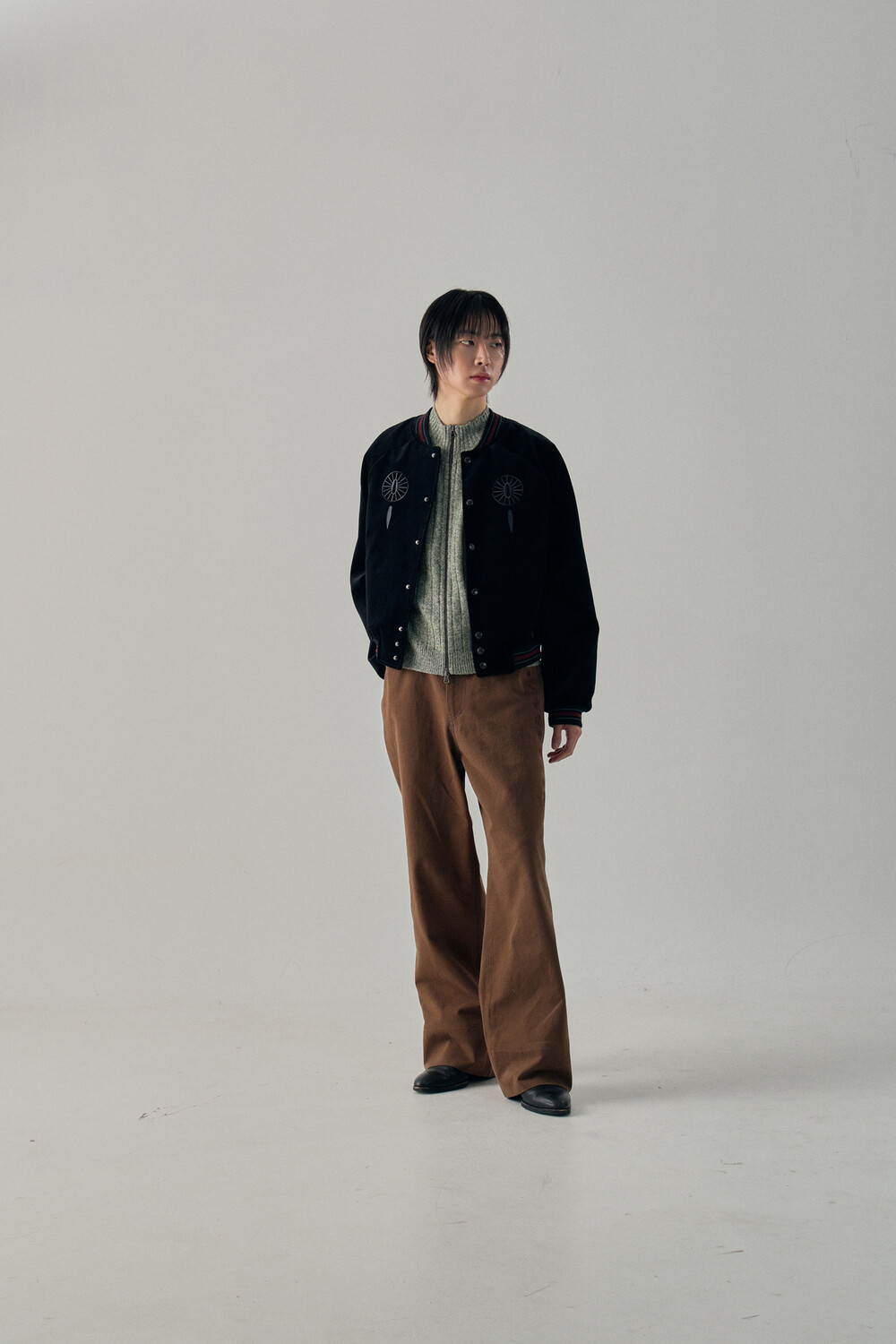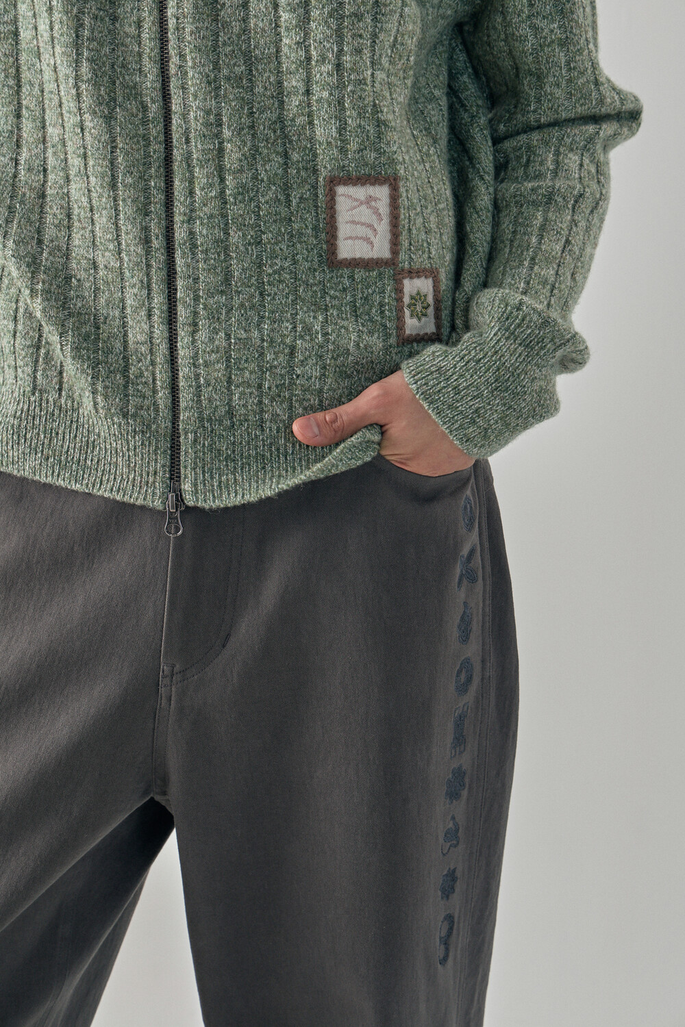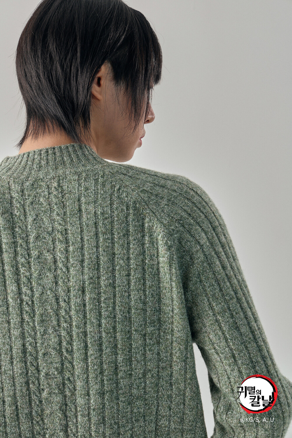 - 믹스드된 울 나일론 혼용 니트 패브릭 - 전면 작품의 캐릭터 모티브의 자수 패치 - 후면 웨이비니스 시그니처 디테일 - 목을 감싸는 모크넥 형태의 풀집업 - YKK 2WAY ZIPPER - 레글런 소매 - 레글런 어깨 부분에 절개라인과 미세한 봉제 작업을 통해 체형보완이 가능한 디자인