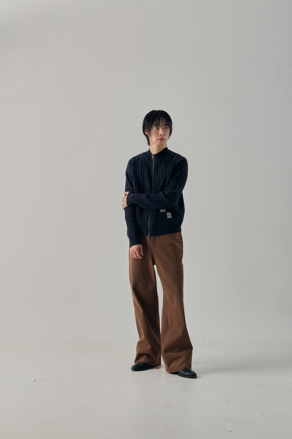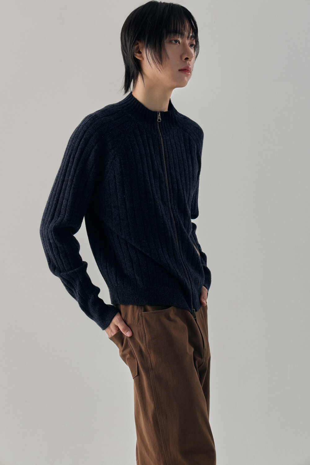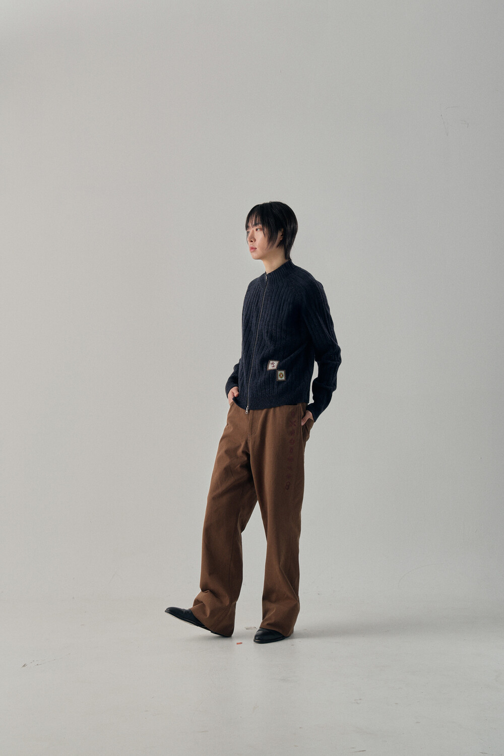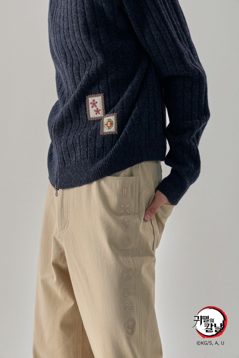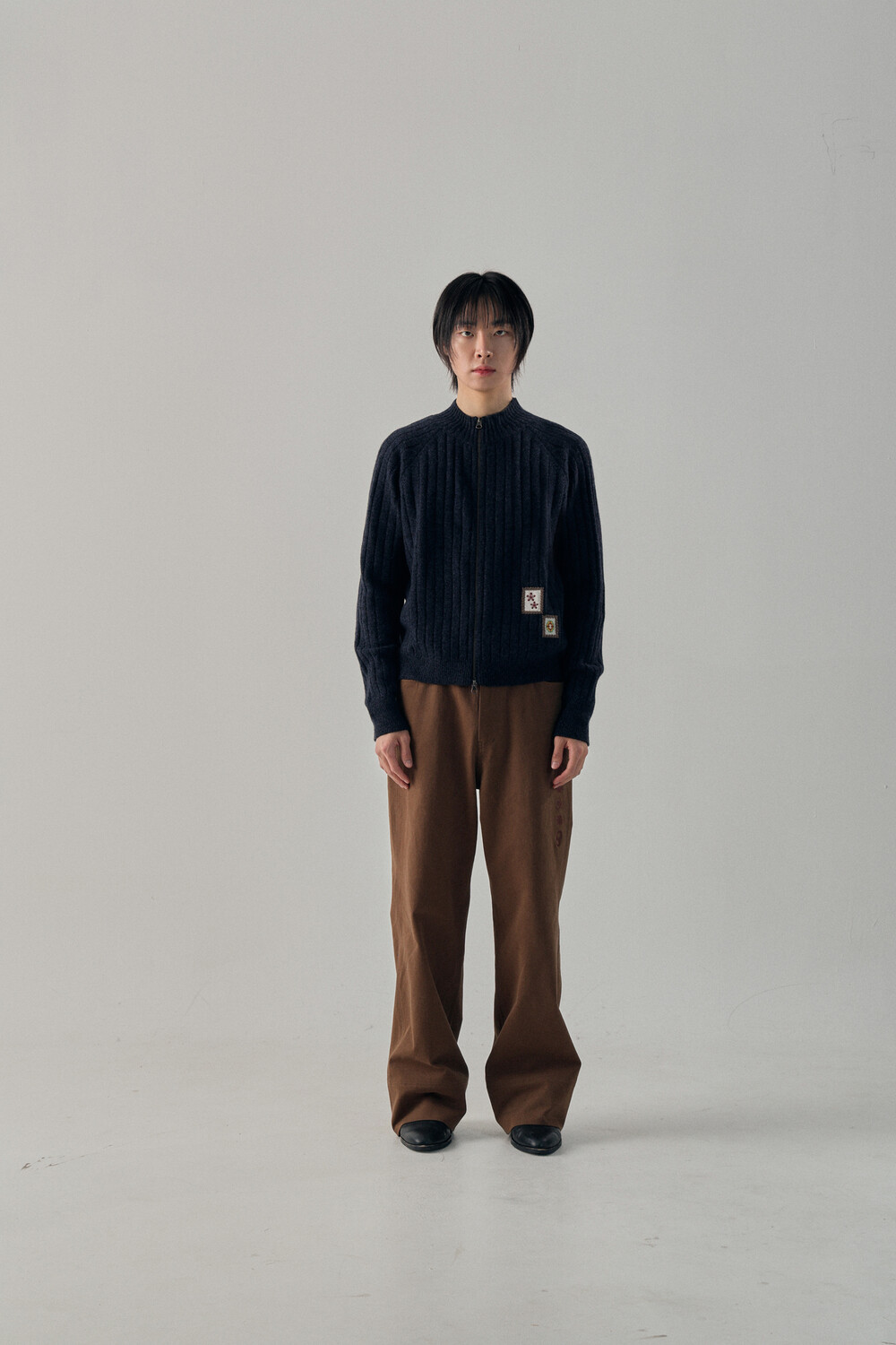 - 믹스드된 울 나일론 혼용 니트 패브릭 - 전면 캐릭터 모티브의 자수 패치 - 후면 웨이비니스 시그니처 디테일 - 목을 감싸는 모크넥 형태의 풀집업 - YKK 2WAY ZIPPER - 레글런 소매 - 레글런 어깨 부분에 절개라인과 미세한 봉제 작업을 통해 체형보완이 가능한 디자인