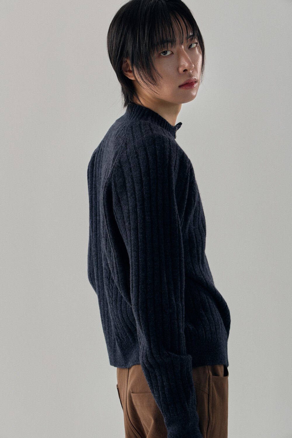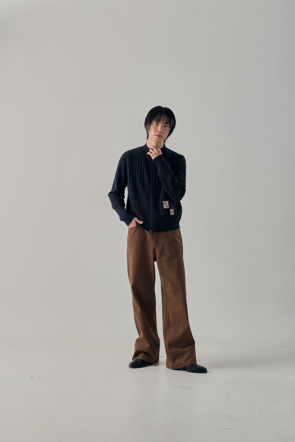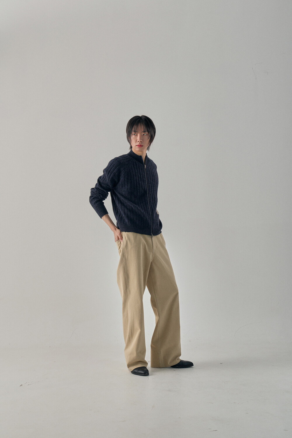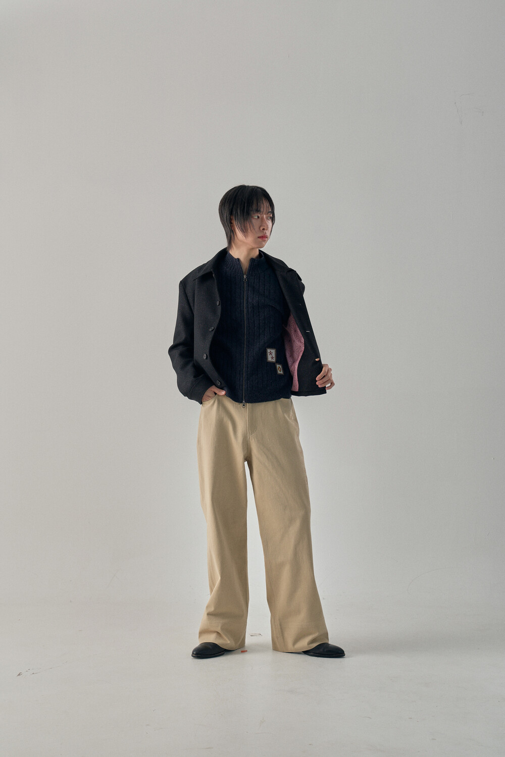 - 믹스드된 울 나일론 혼용 니트 패브릭 - 전면 캐릭터 모티브의 자수 패치 - 후면 웨이비니스 시그니처 디테일 - 목을 감싸는 모크넥 형태의 풀집업 - YKK 2WAY ZIPPER - 레글런 소매 - 레글런 어깨 부분에 절개라인과 미세한 봉제 작업을 통해 체형보완이 가능한 디자인