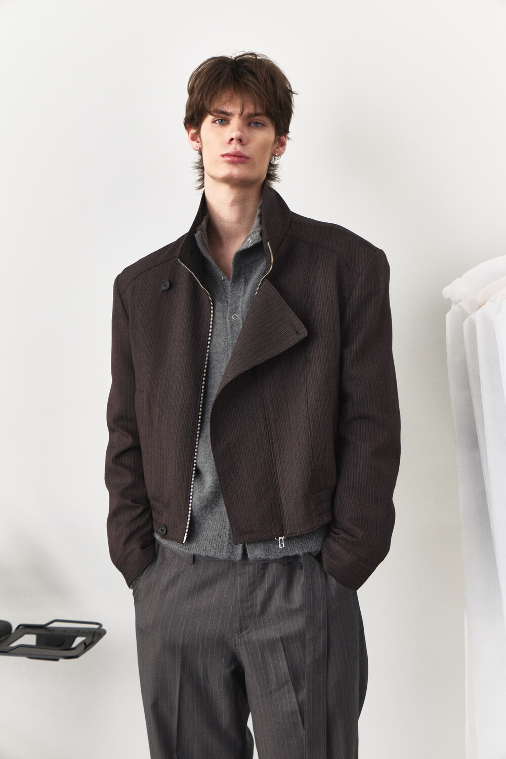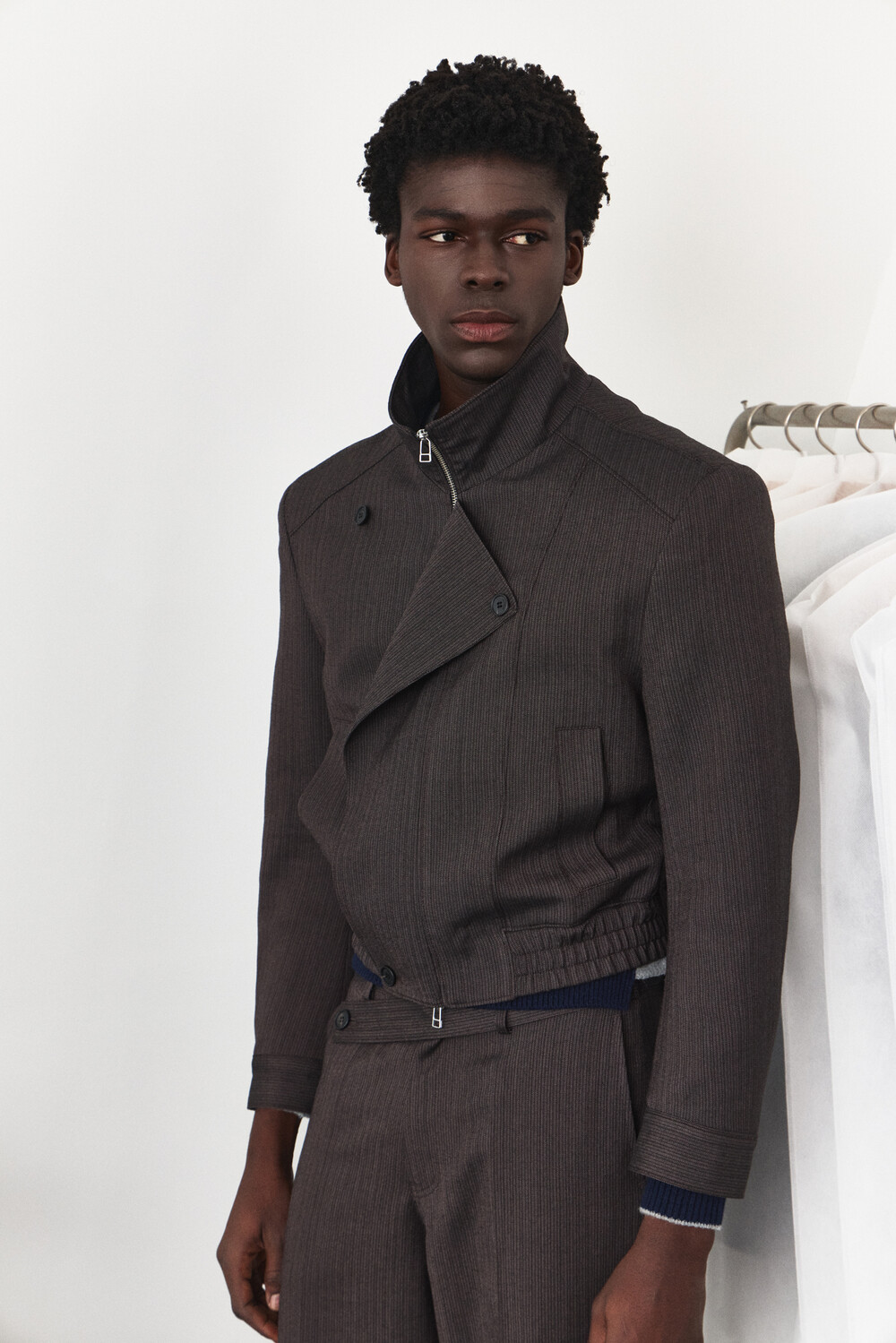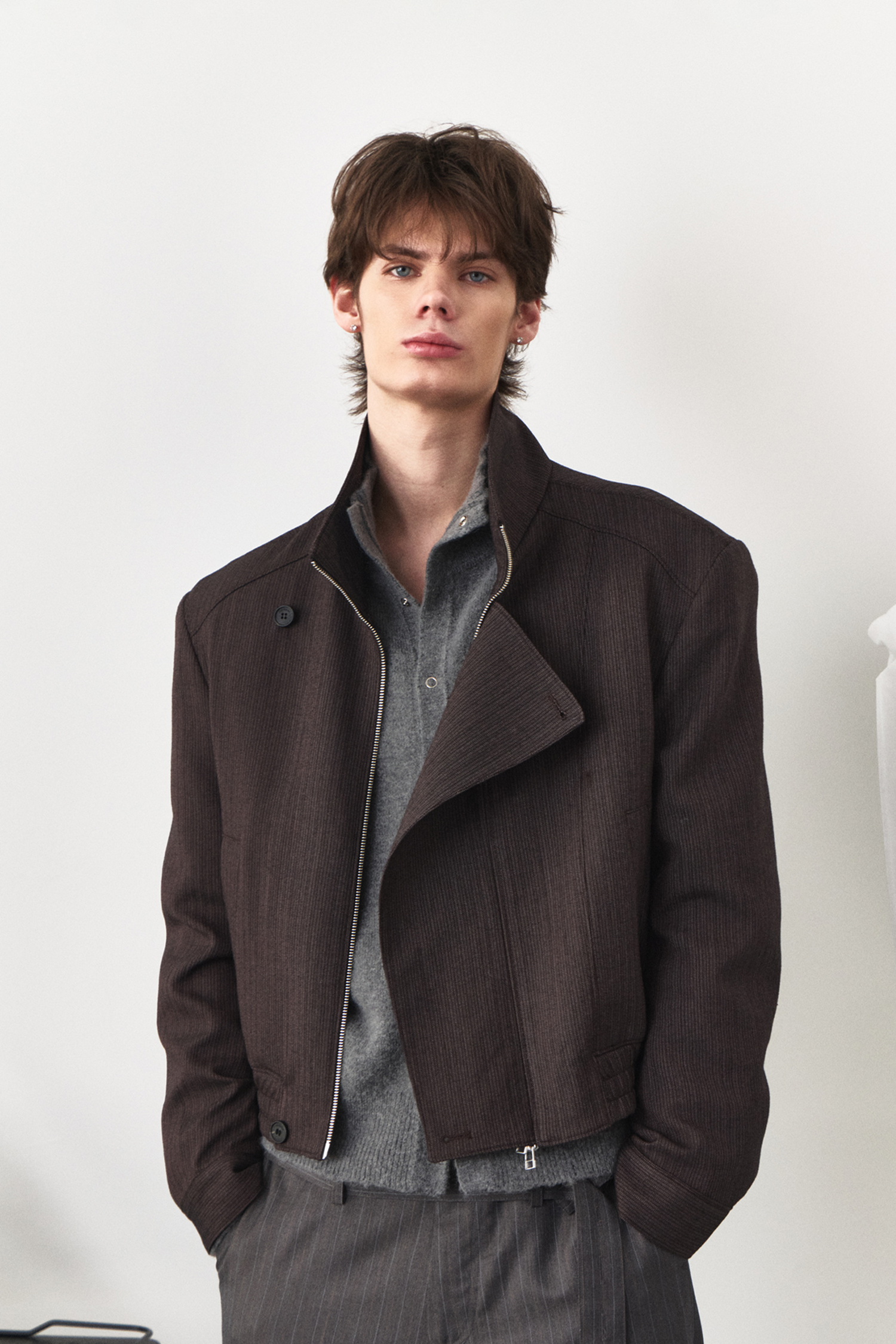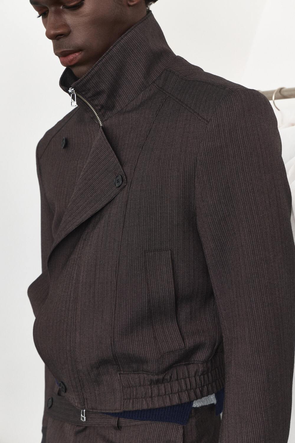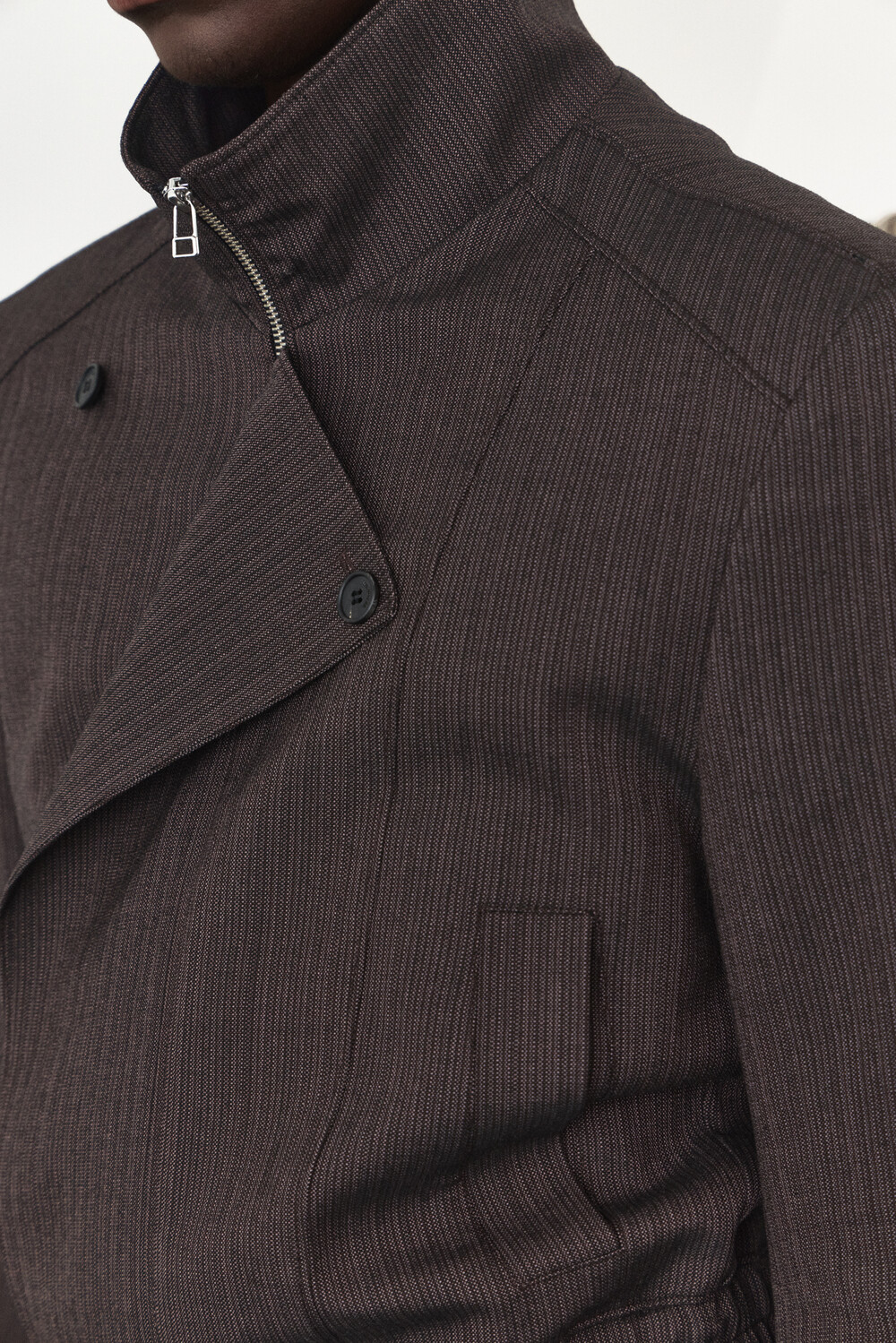 Asymmetry High-Neck Wool Jacket - Ember Brown