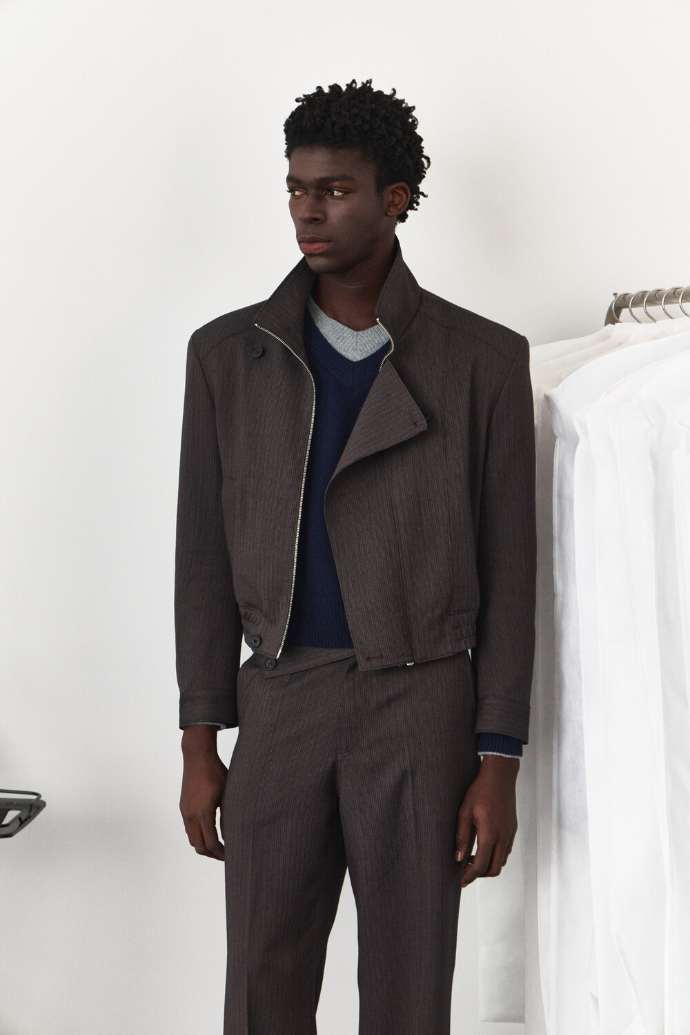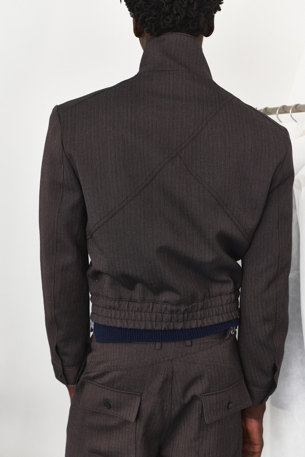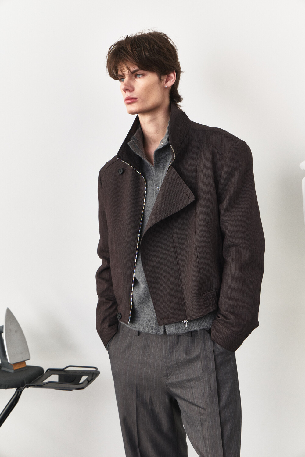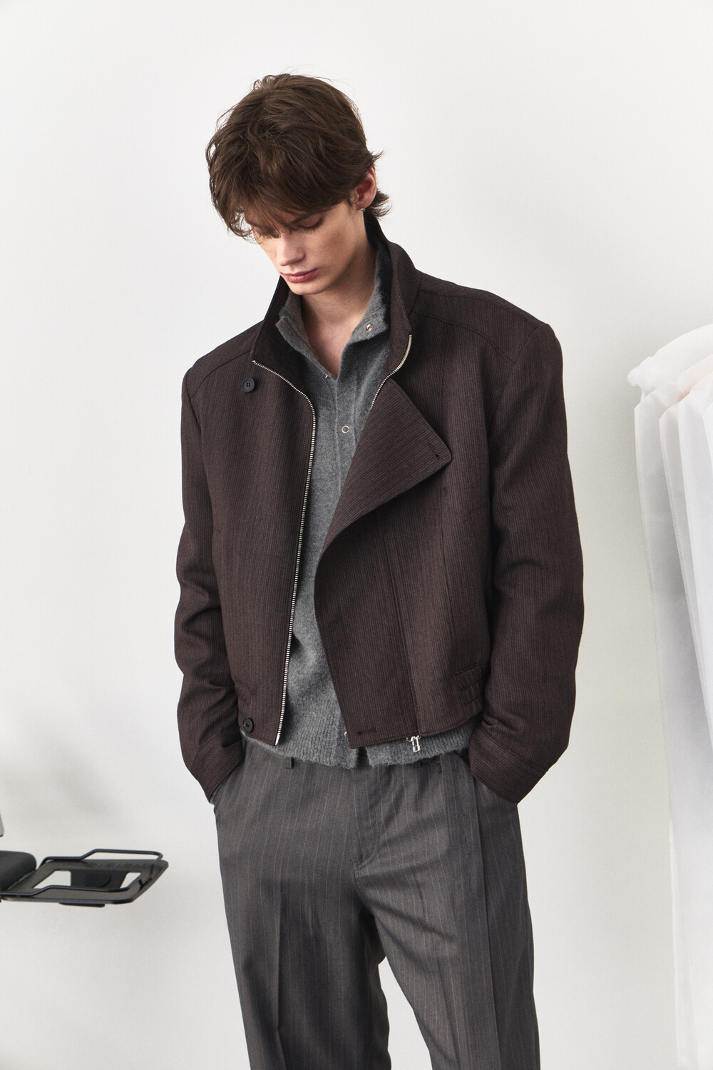 Asymmetry High-Neck Wool Jacket - Ember Brown