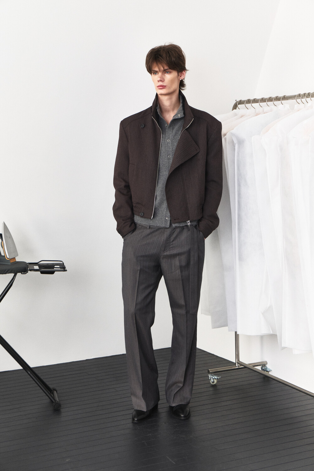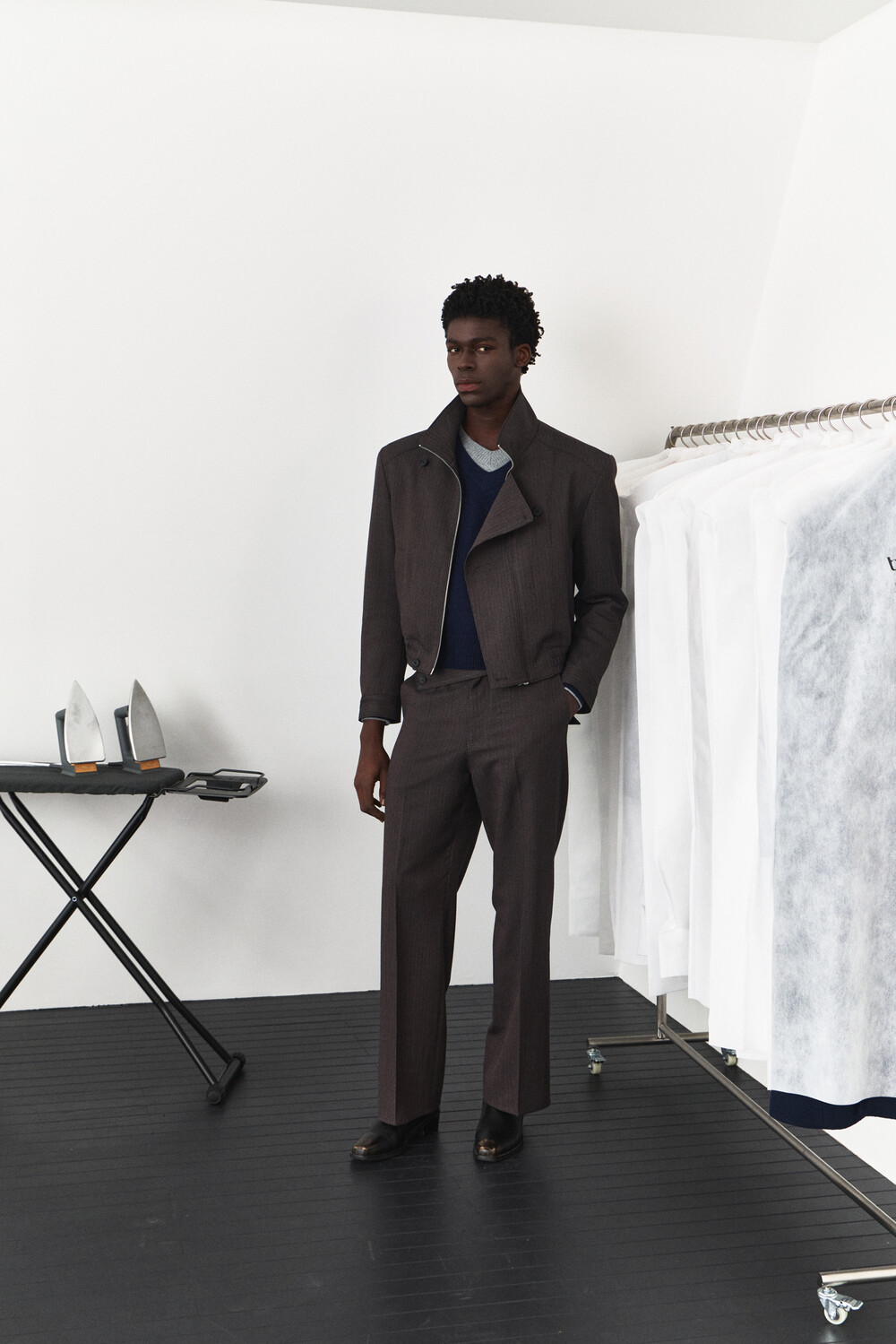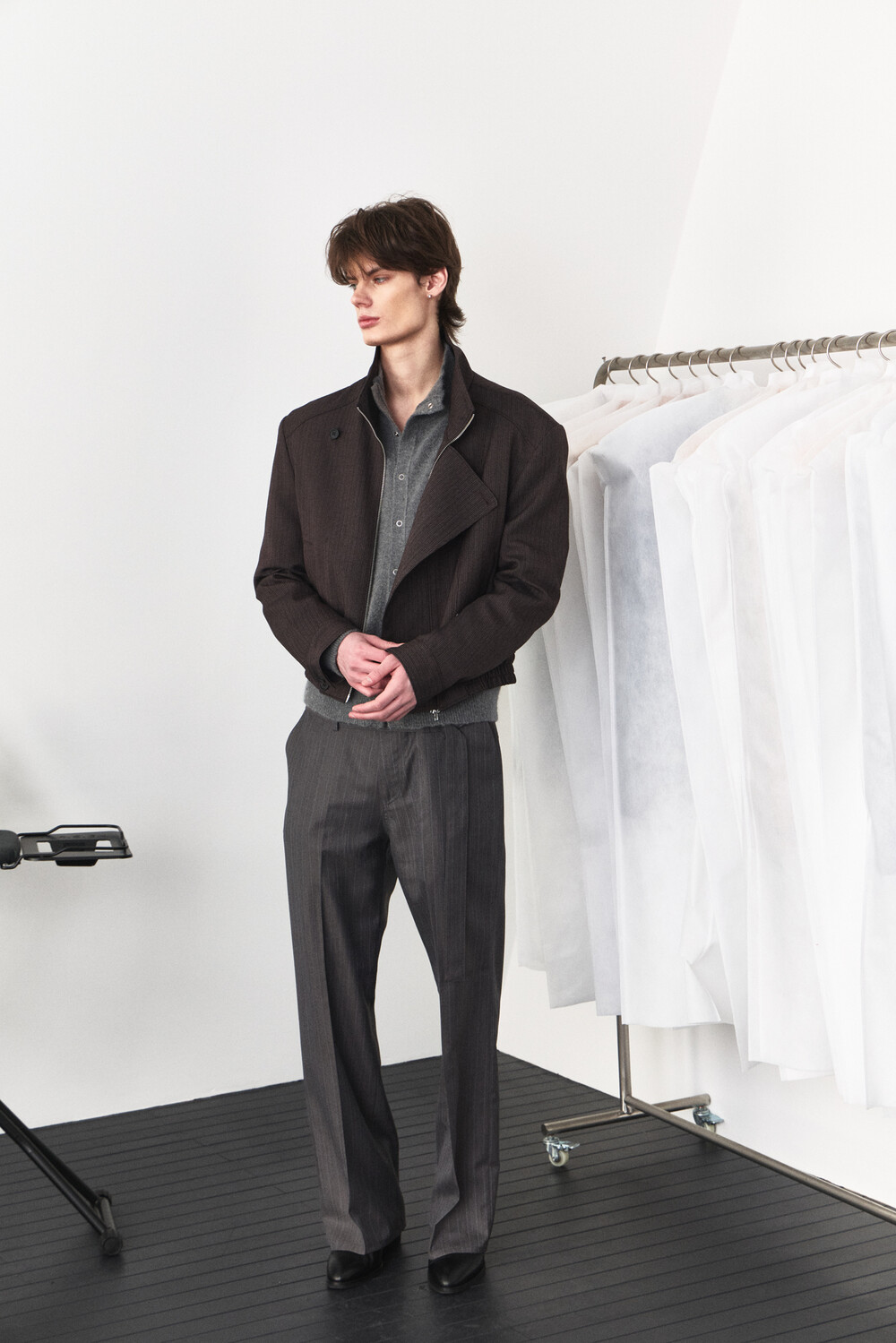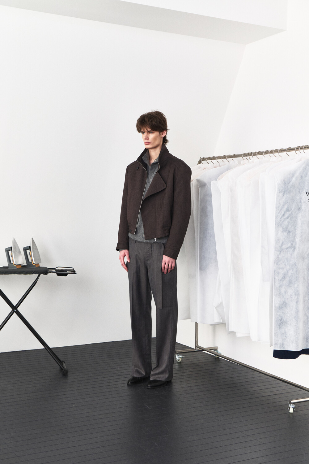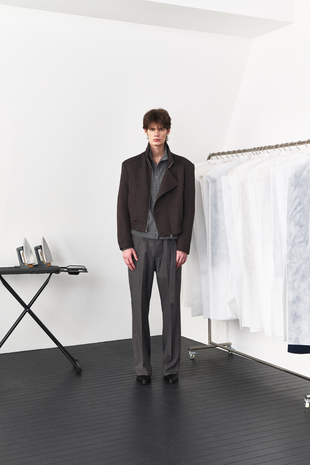 Asymmetry High-Neck Wool Jacket - Ember Brown