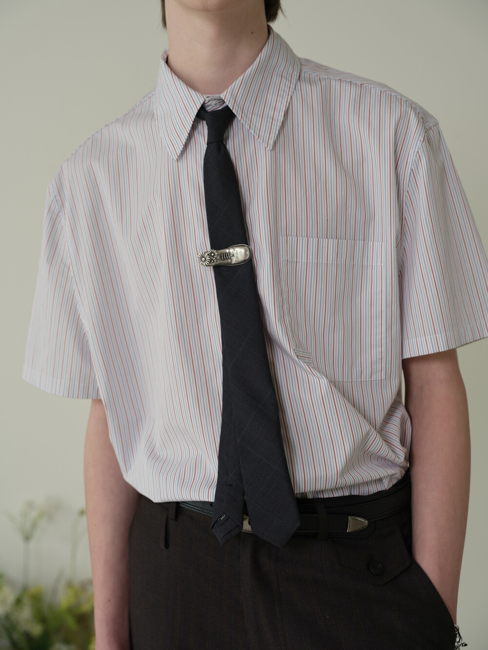 Atrium Wool Slim Tie - Charcoal Check
