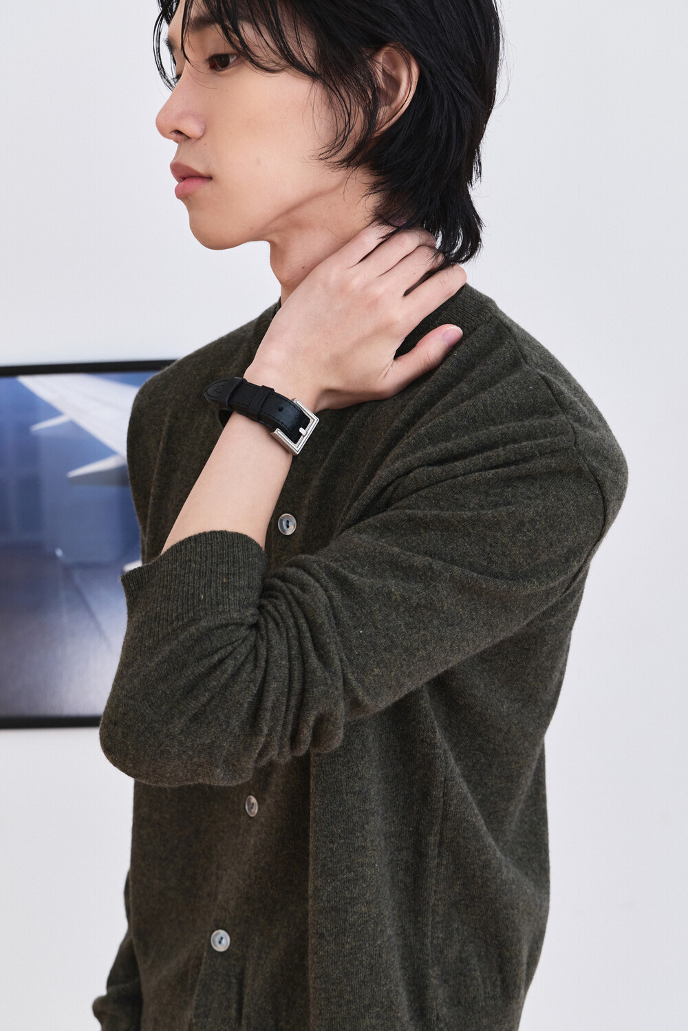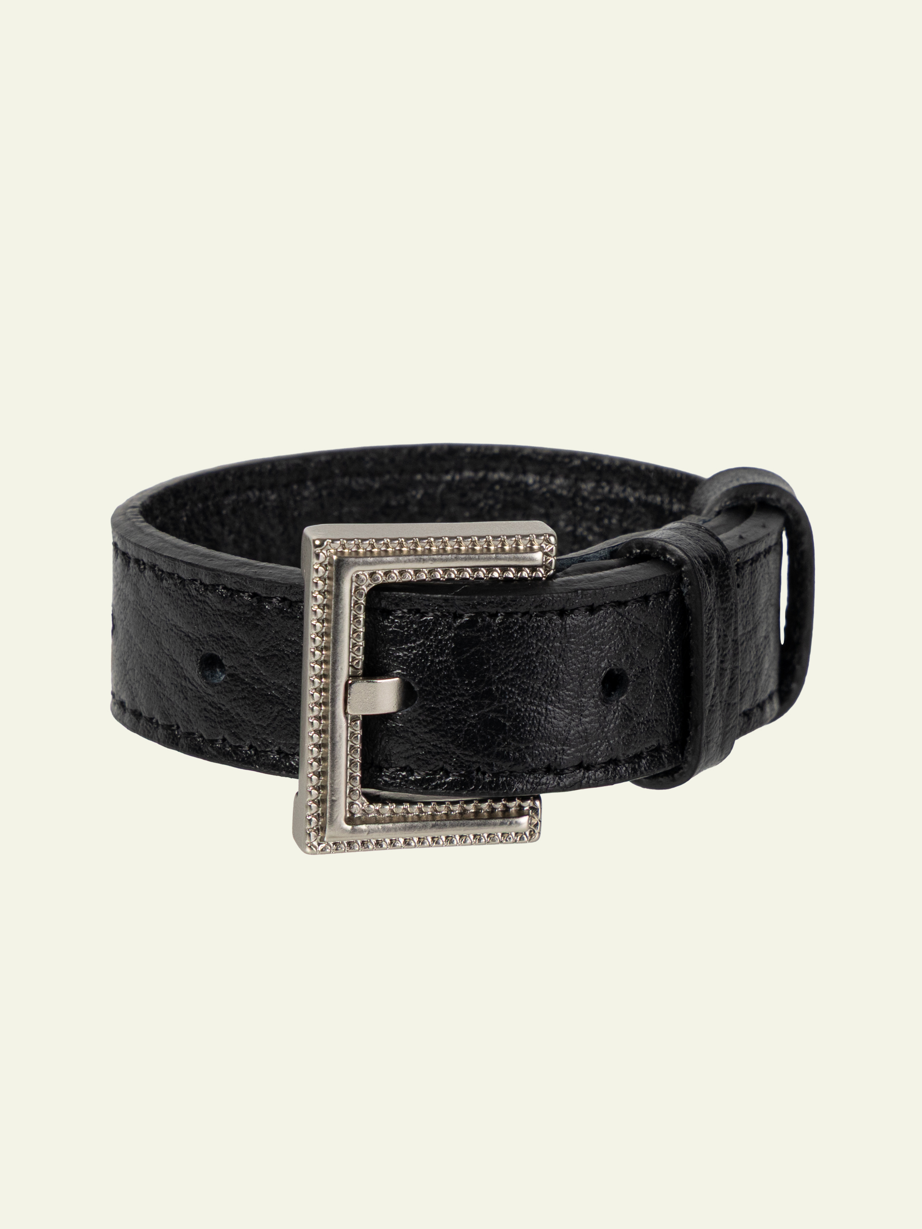 Belt Detail Leather Bracelet - Black (Silver ver.)