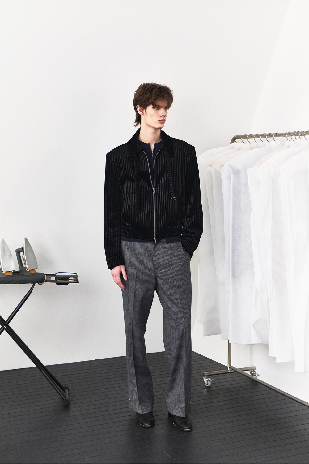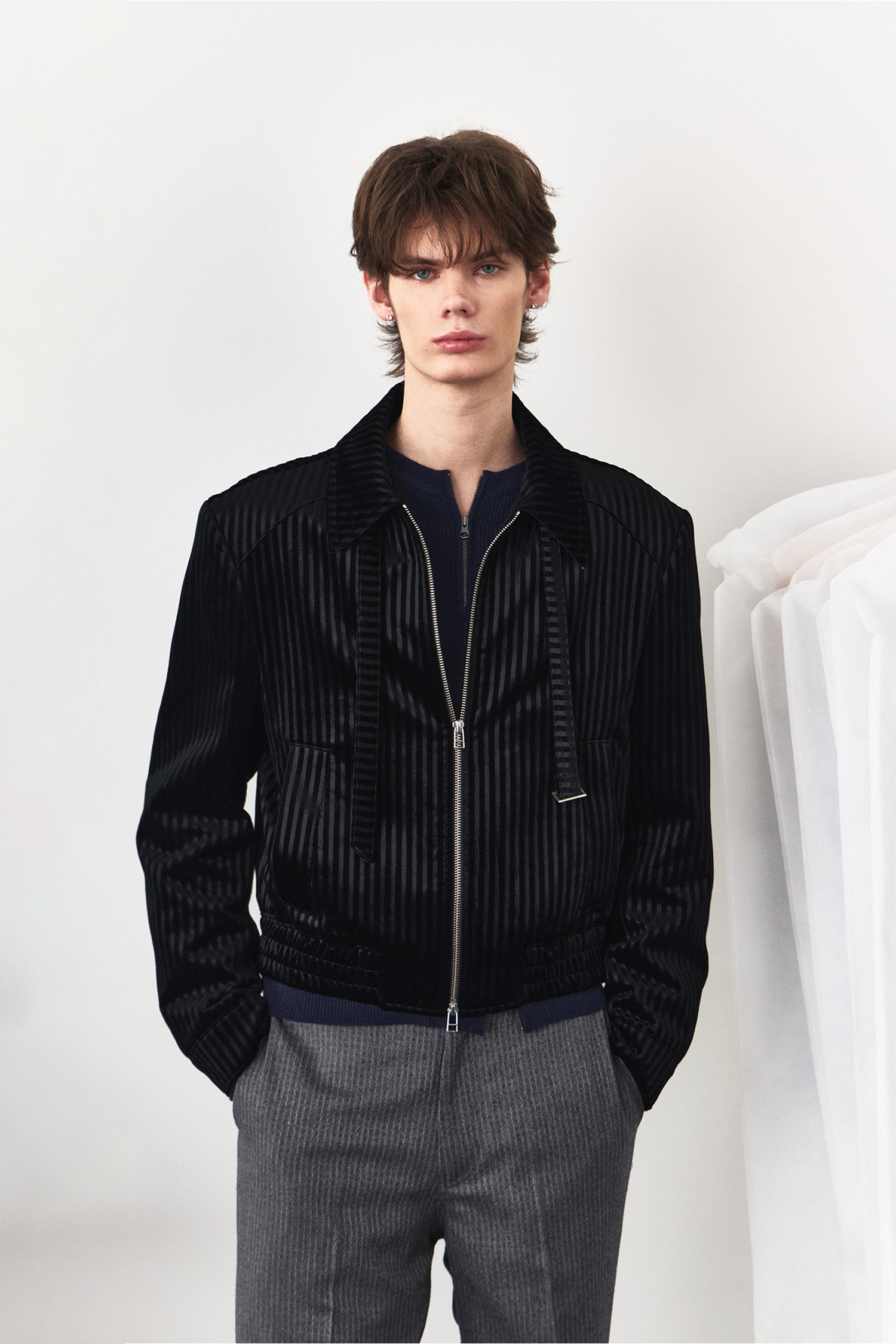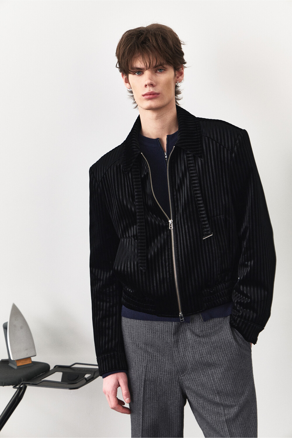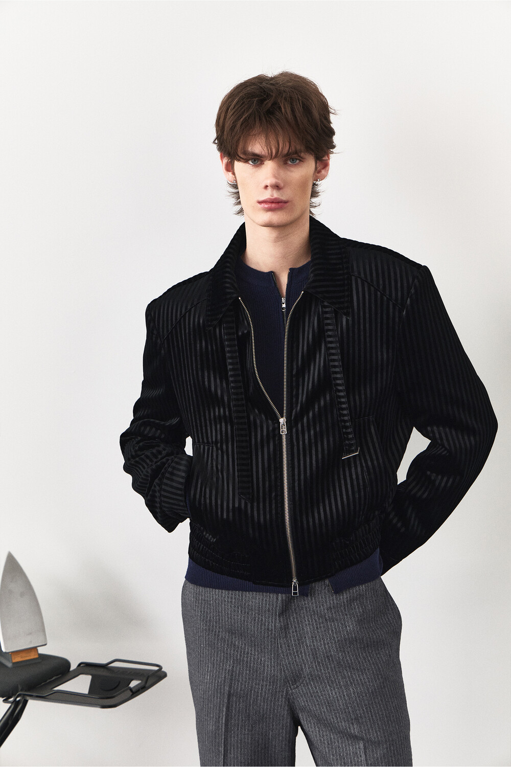 Belt Loop Velvet Jacket - Black Stripe