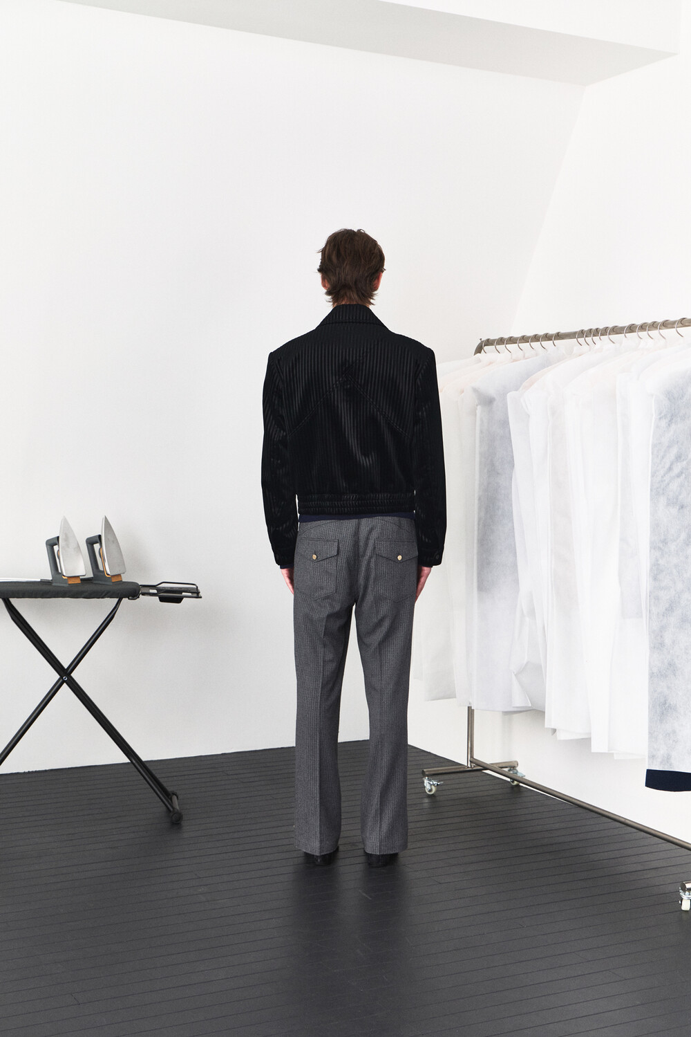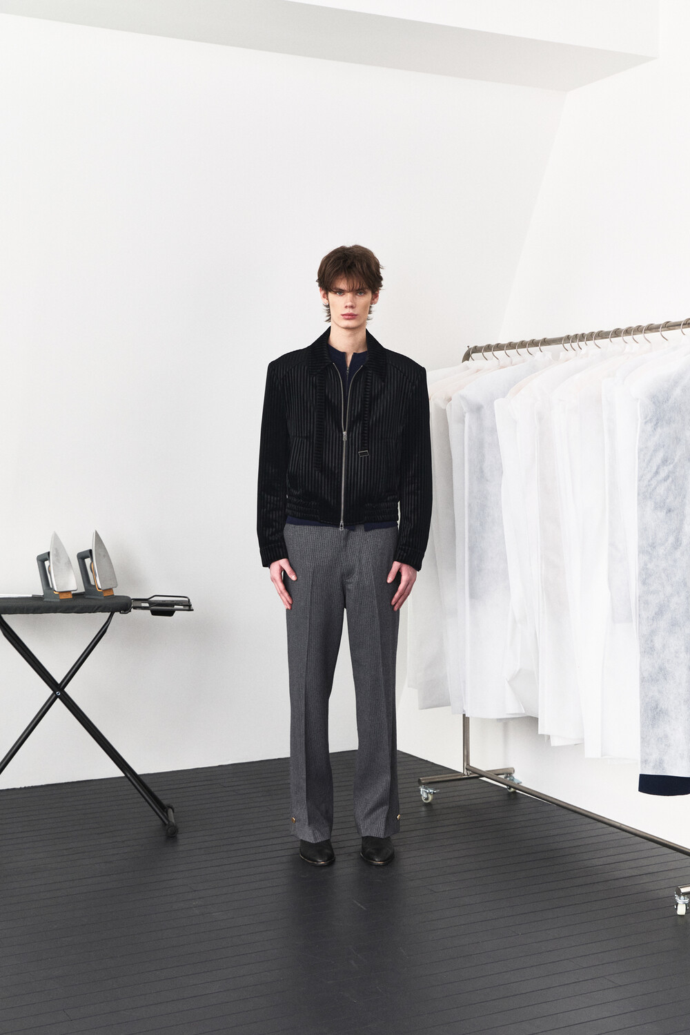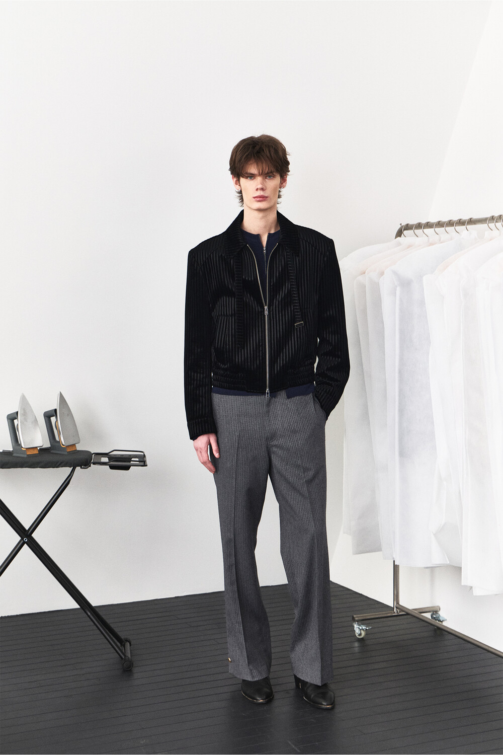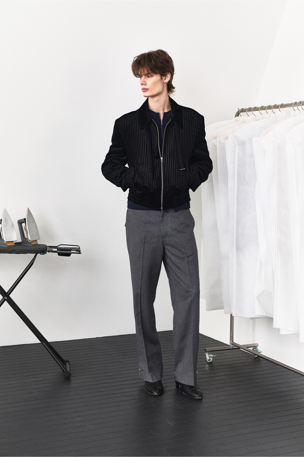 Belt Loop Velvet Jacket - Black Stripe