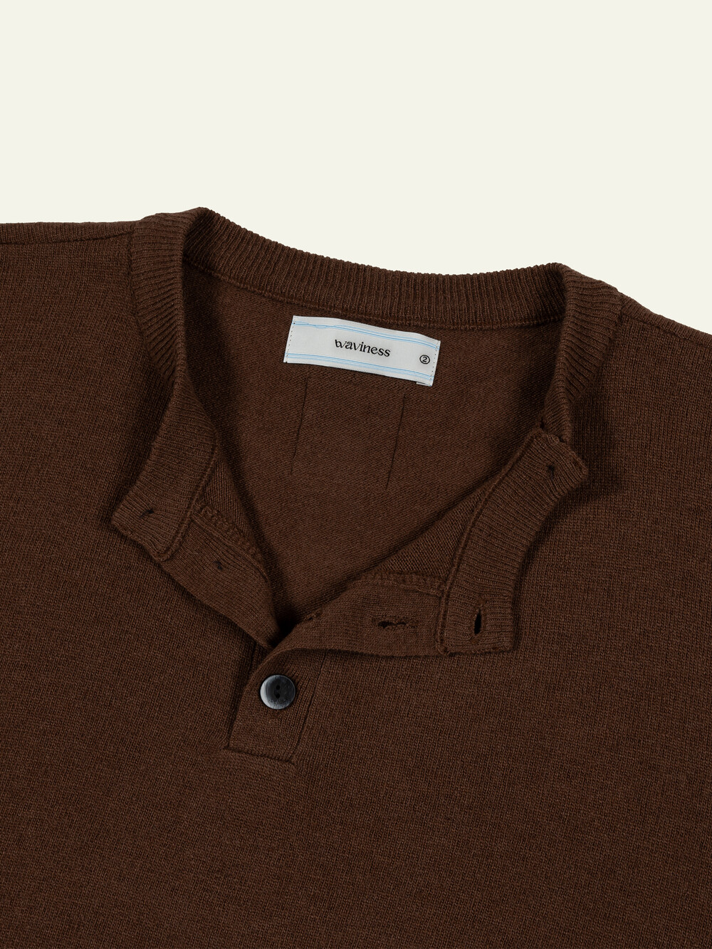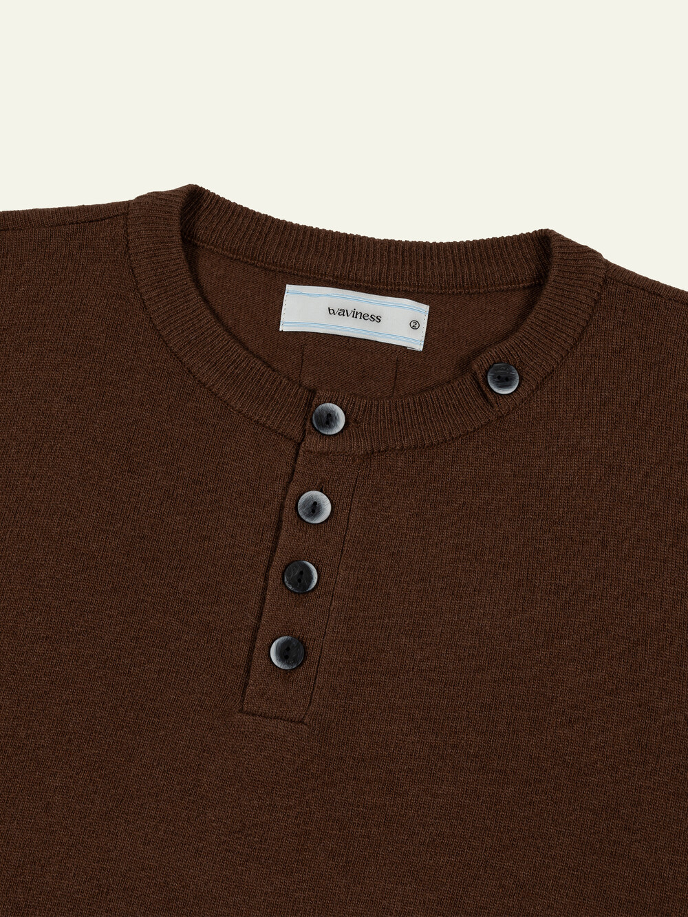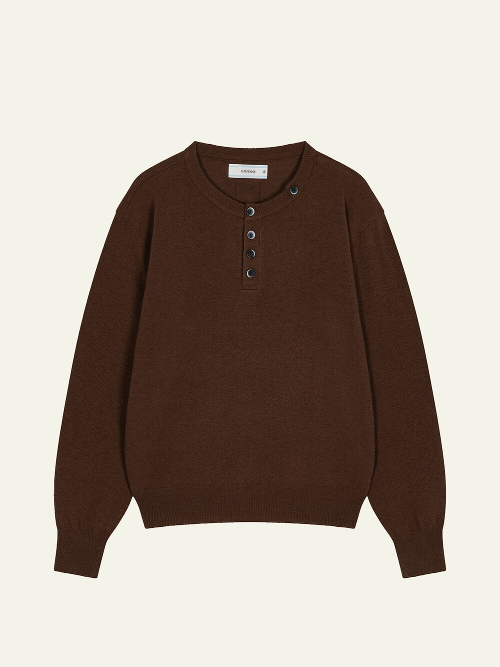 [Flagship Exclusive] Button Pullover Henley-neck Knit - Brown
