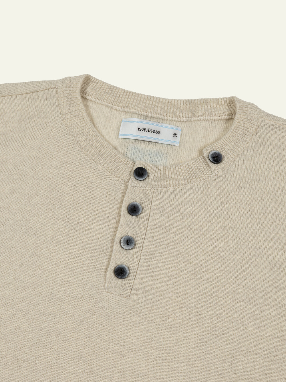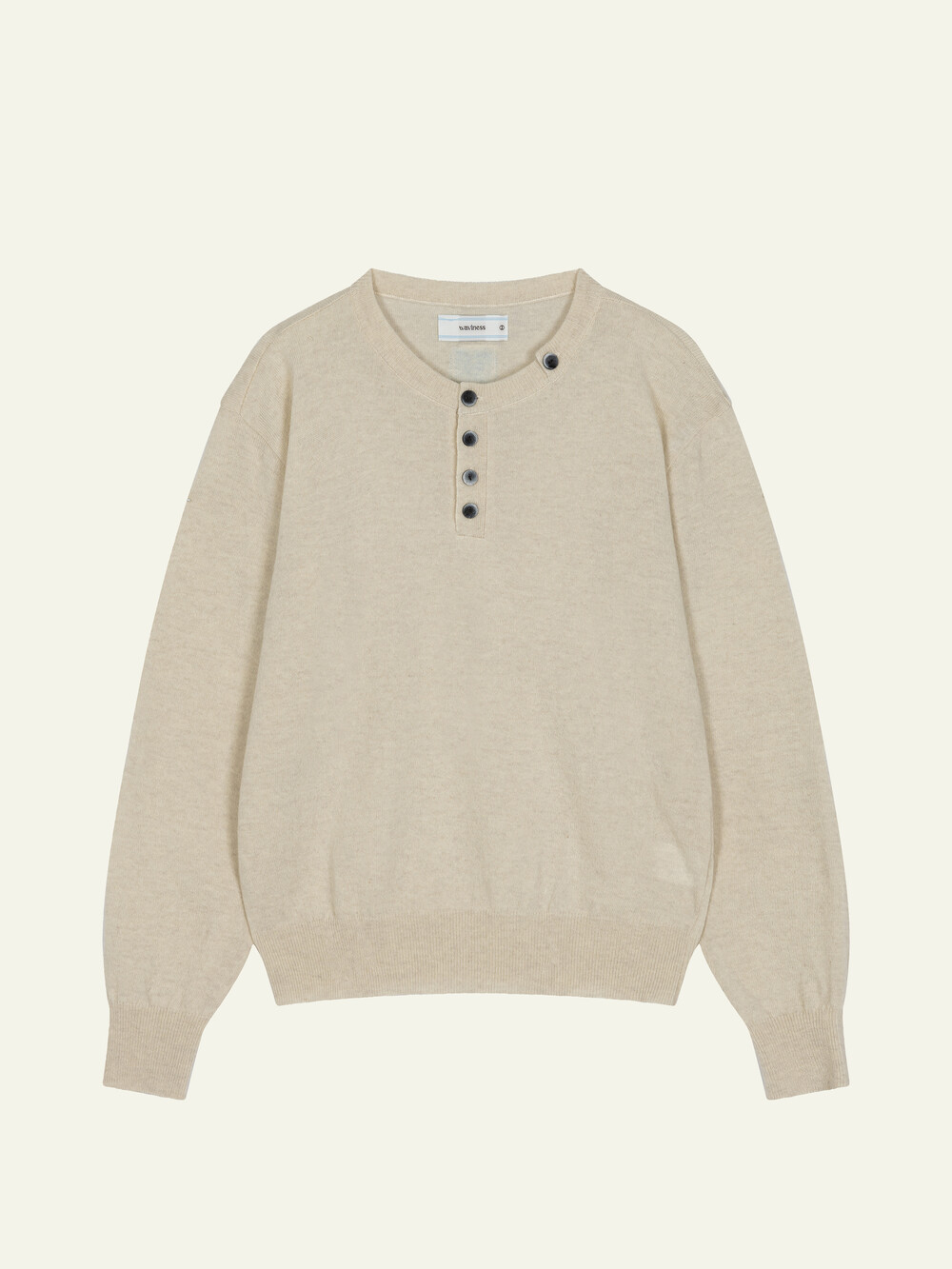[Flagship Exclusive] Button Pullover Henley-neck Knit - Ivory