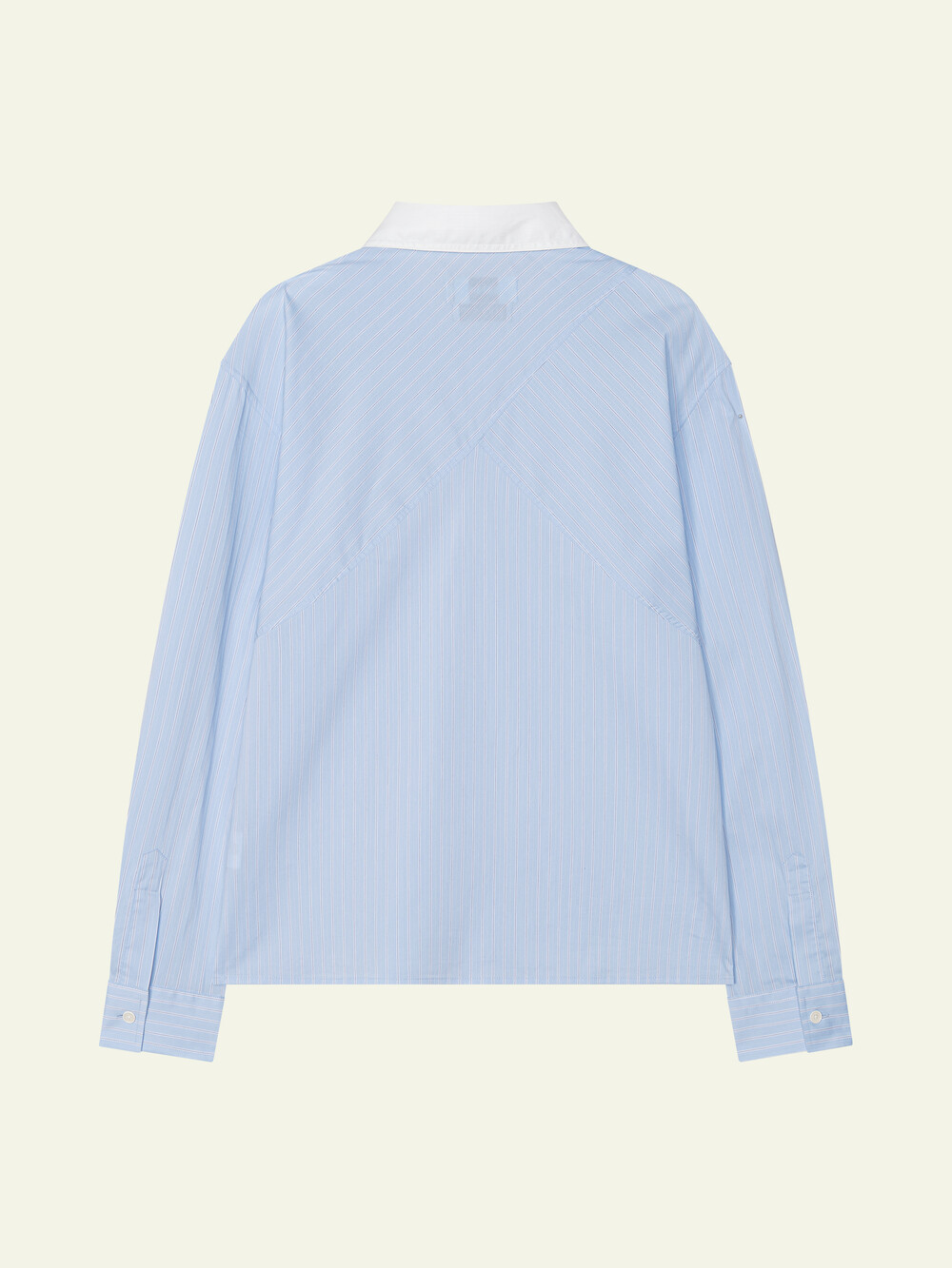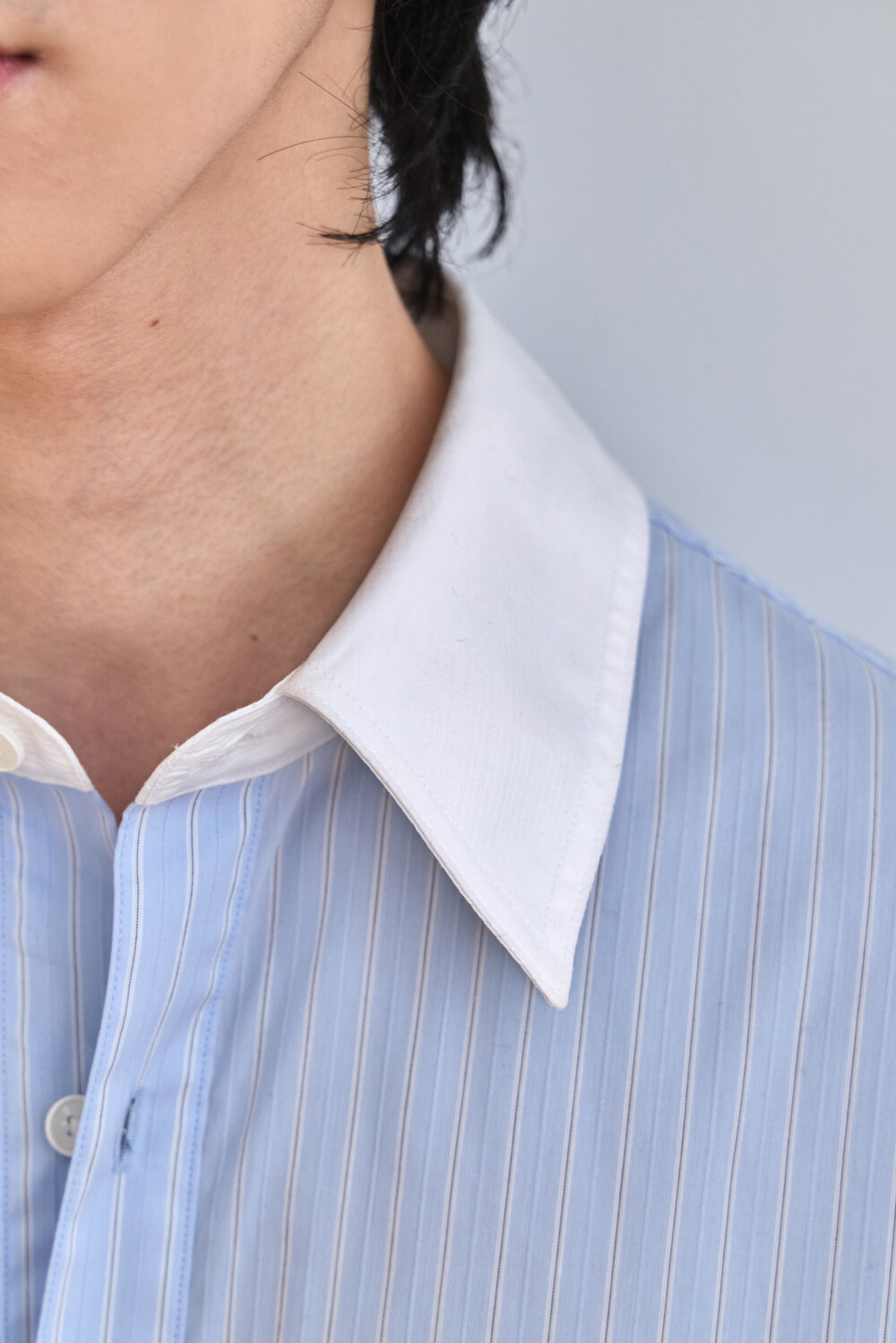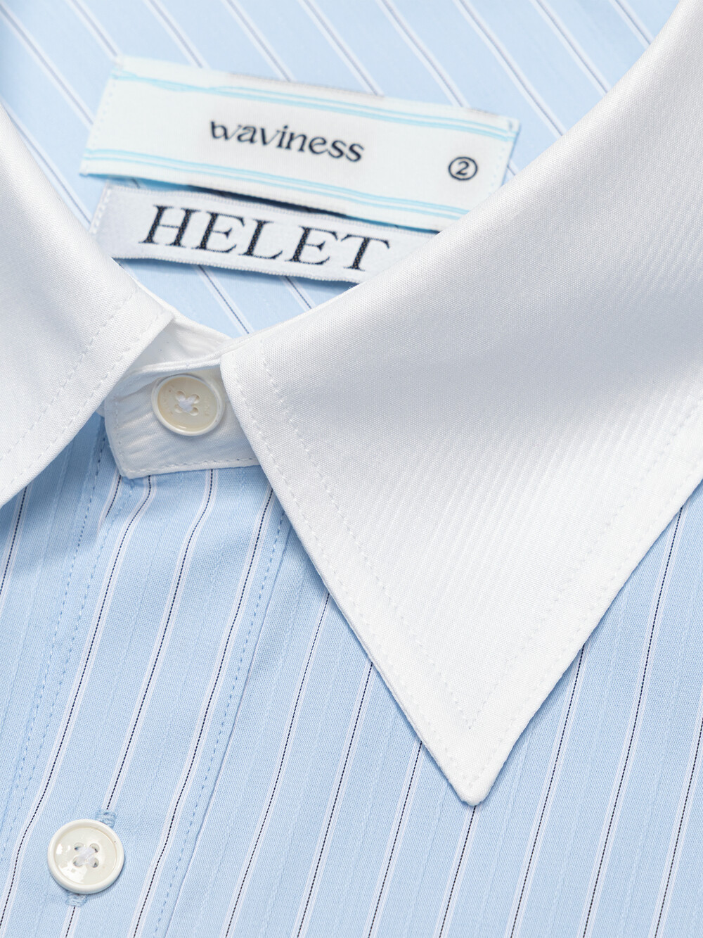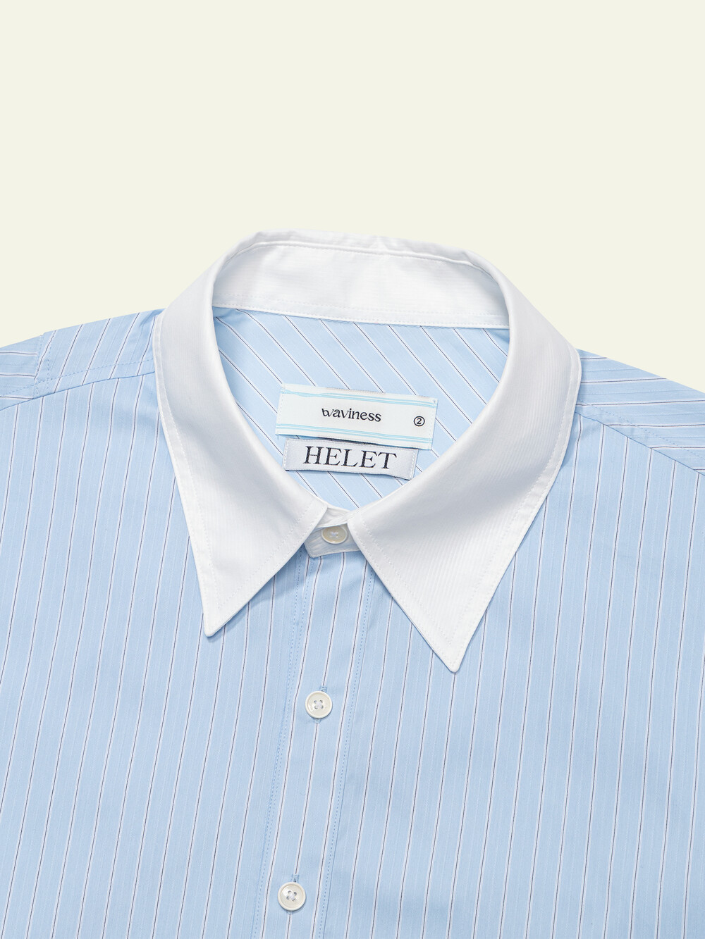 [ x HELET] Cleric Collar Stripe Shirts - Pastel Blue