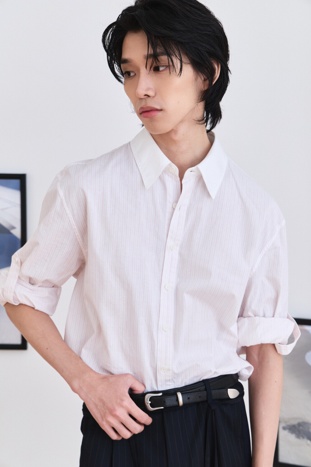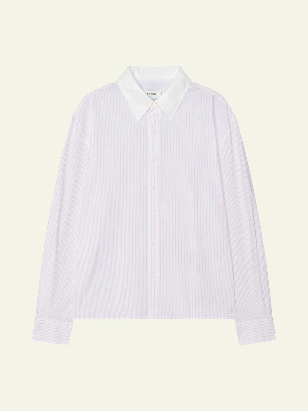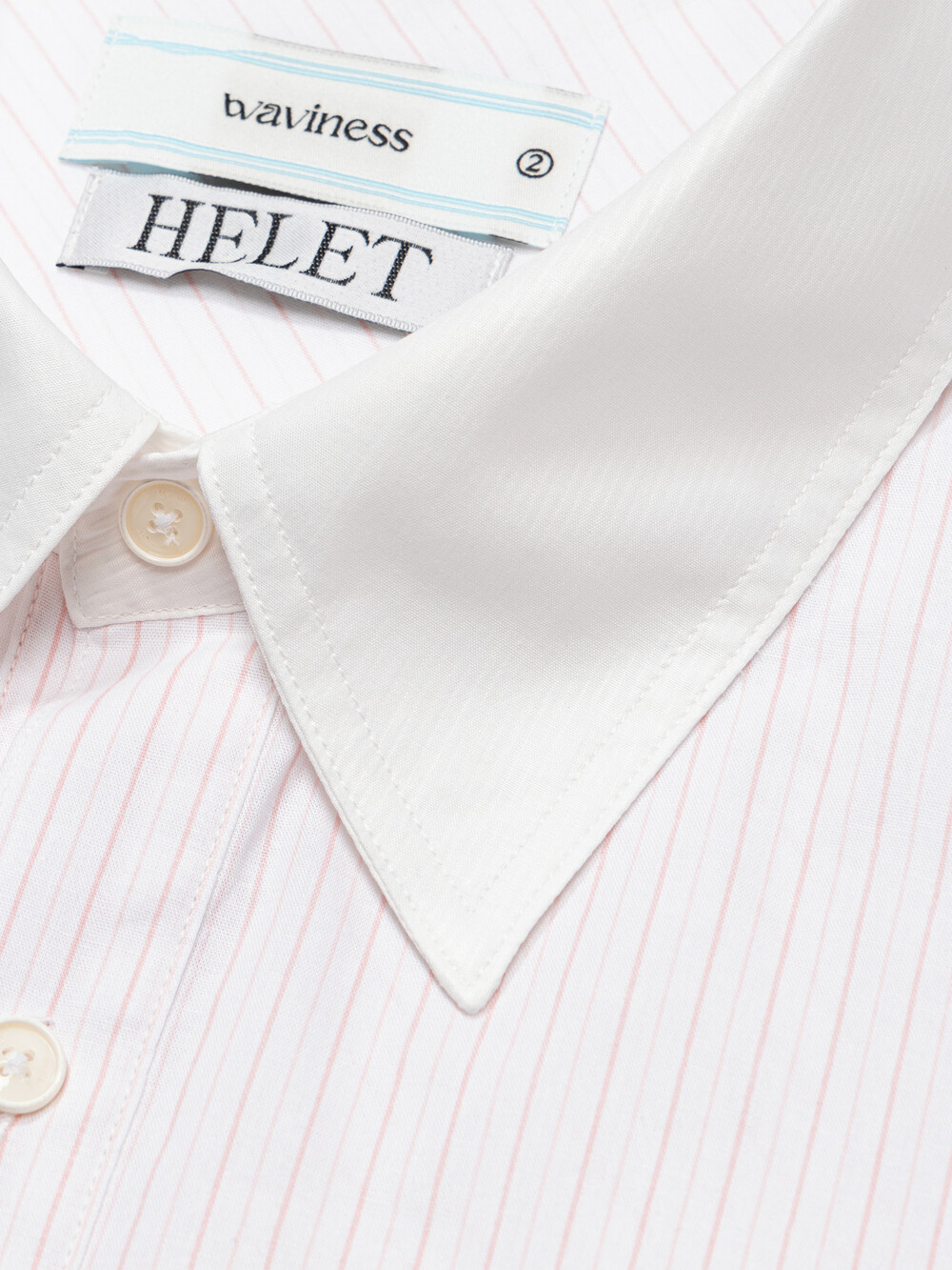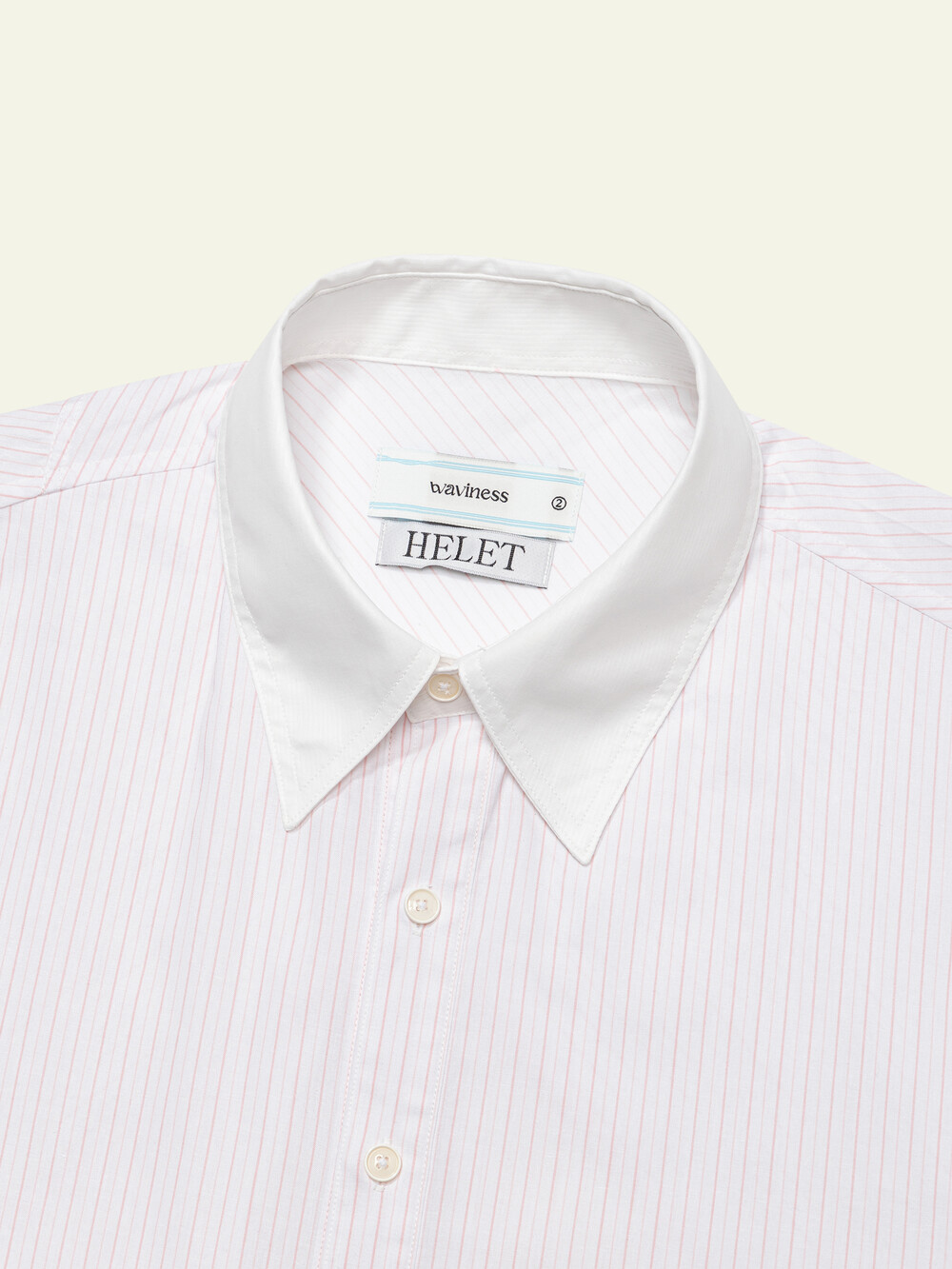 [ x HELET] Cleric Collar Stripe Shirts - Light Pink