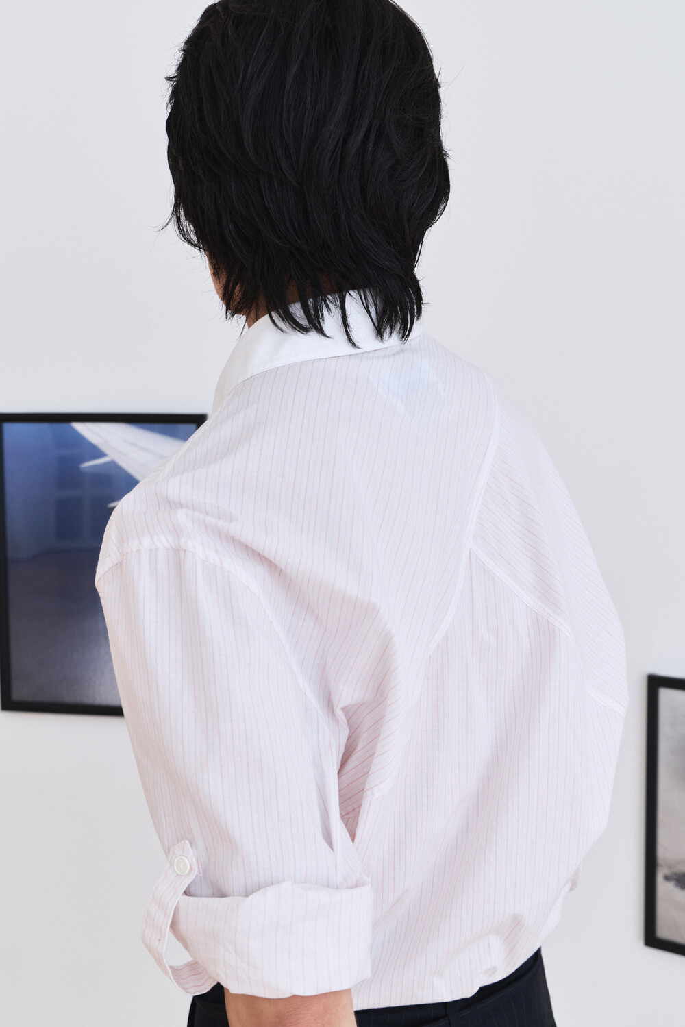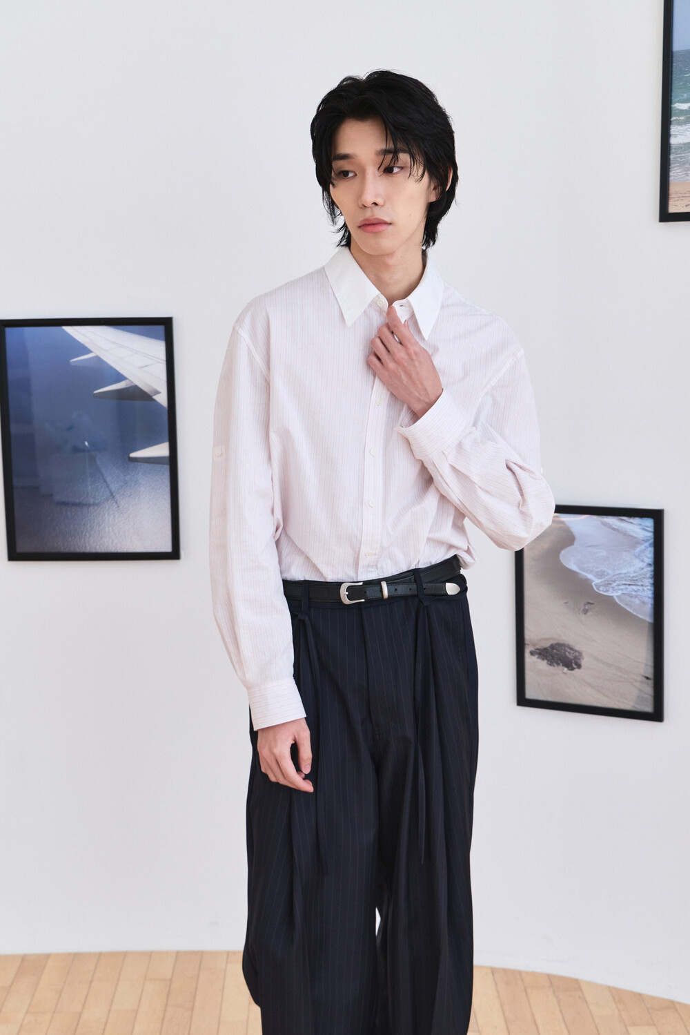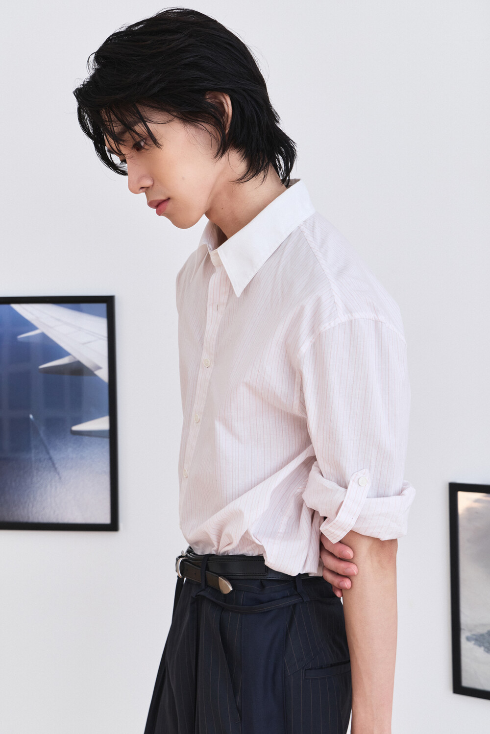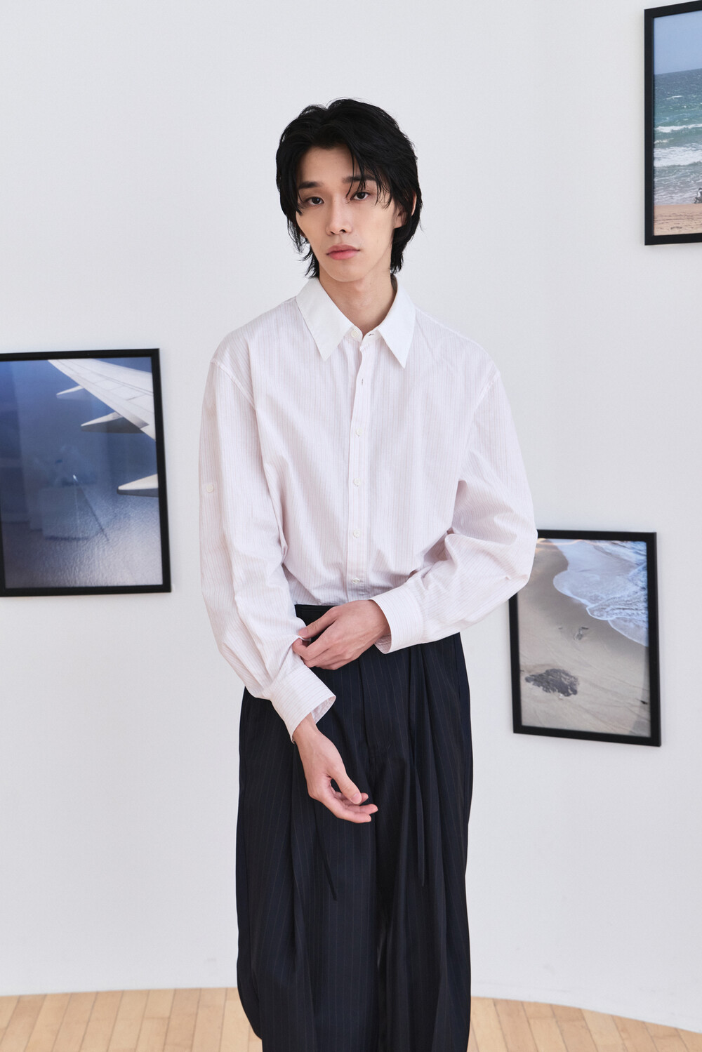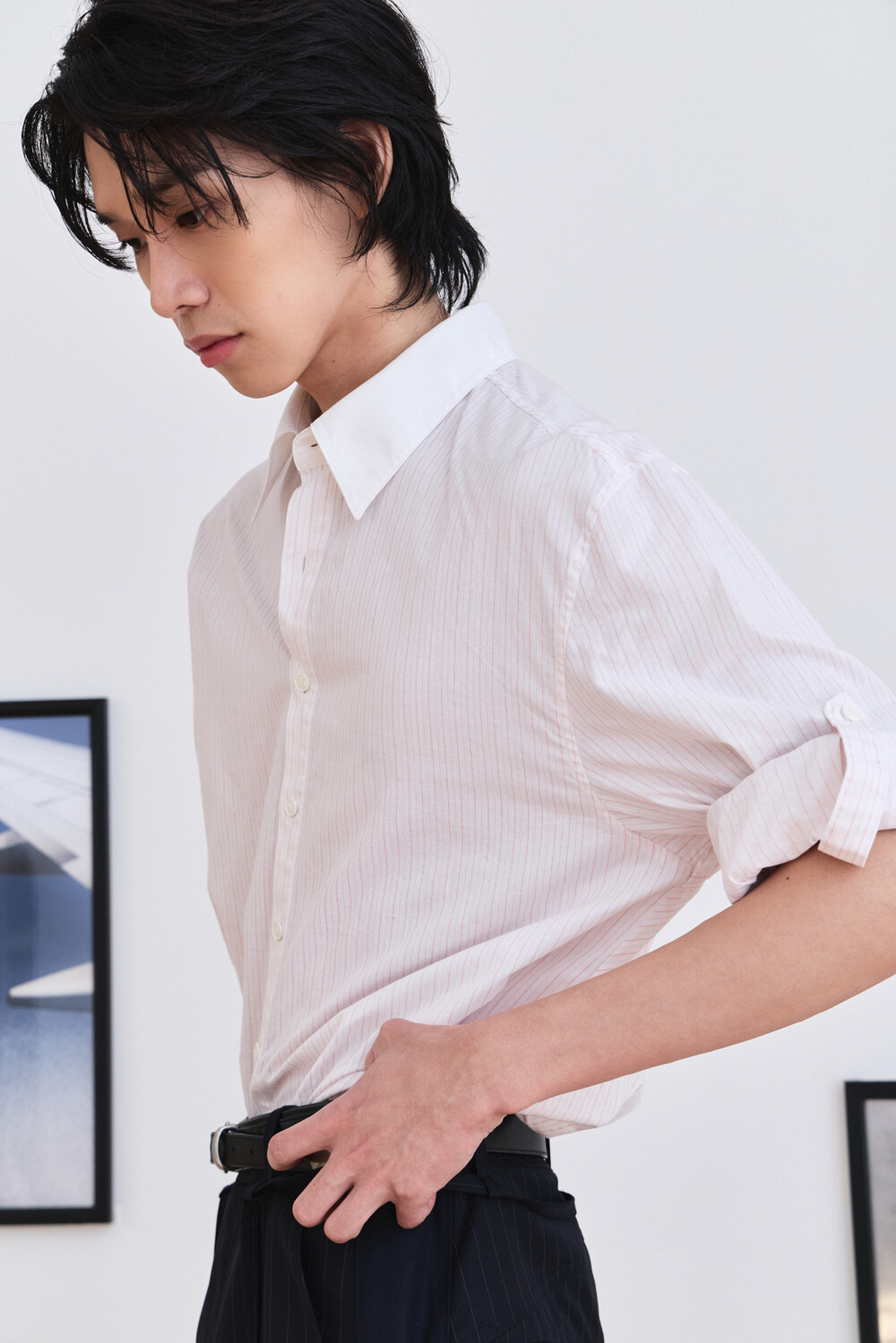 [ x HELET] Cleric Collar Stripe Shirts - Light Pink