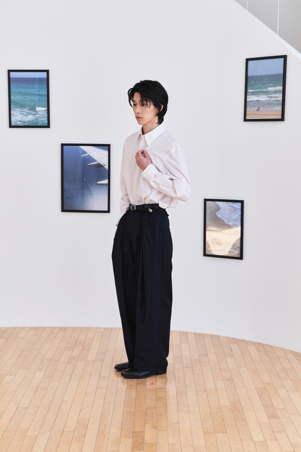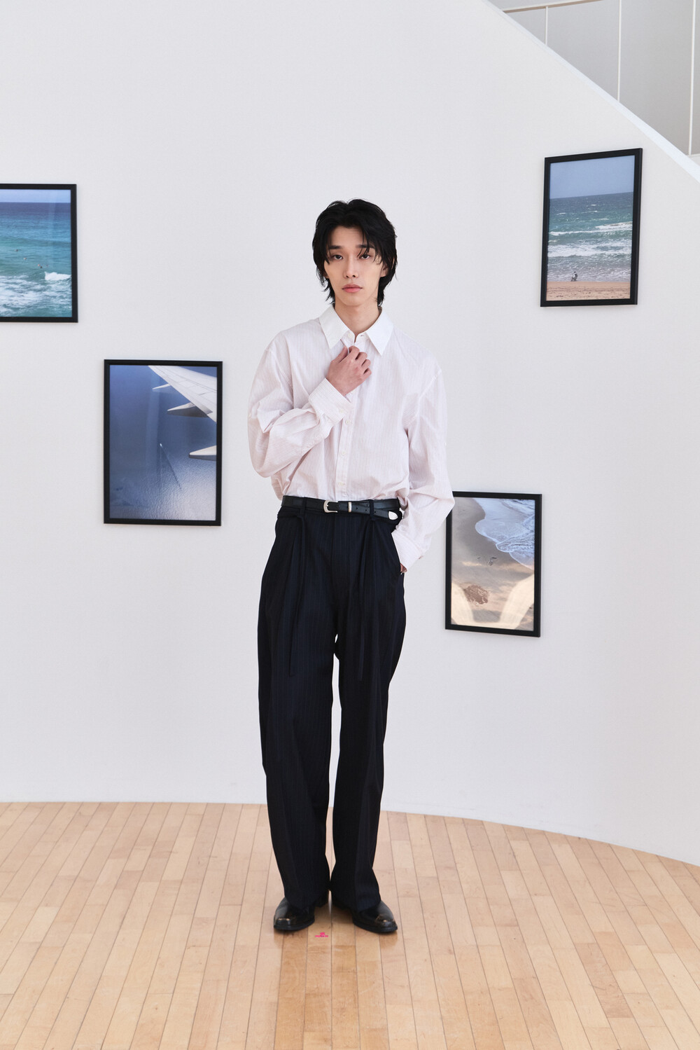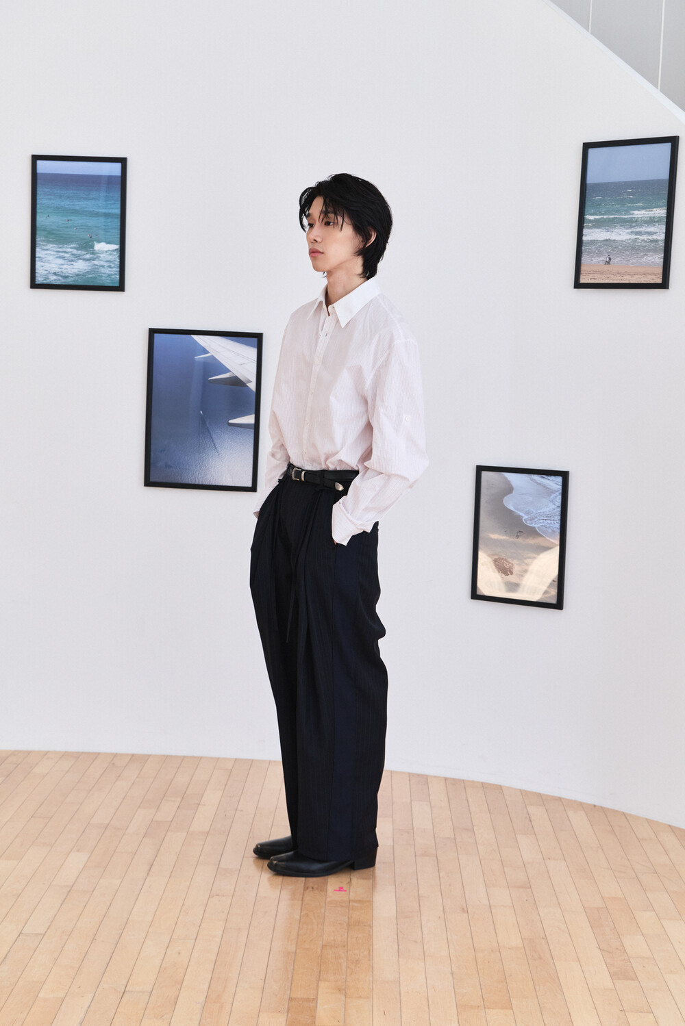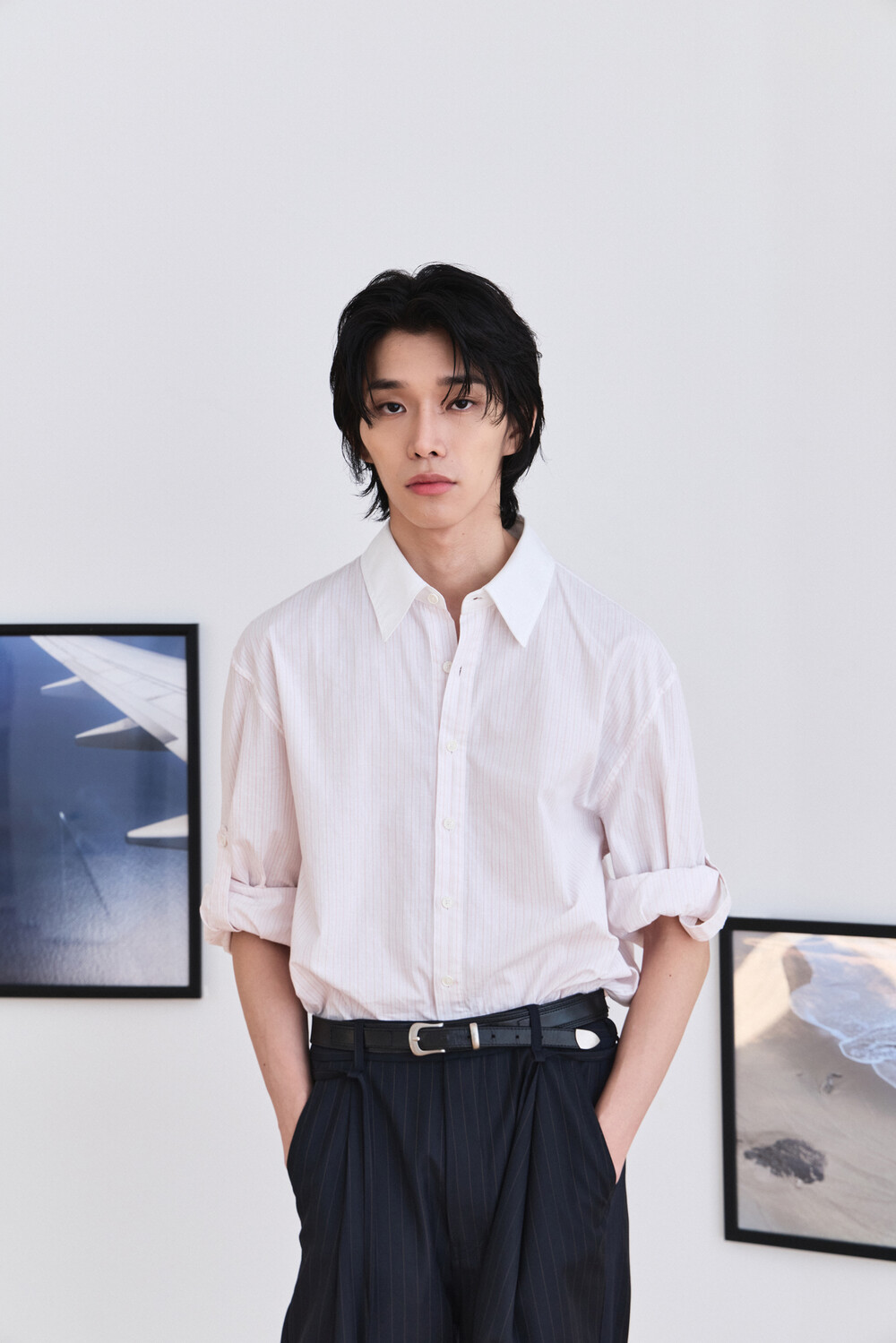 [ x HELET] Cleric Collar Stripe Shirts - Light Pink