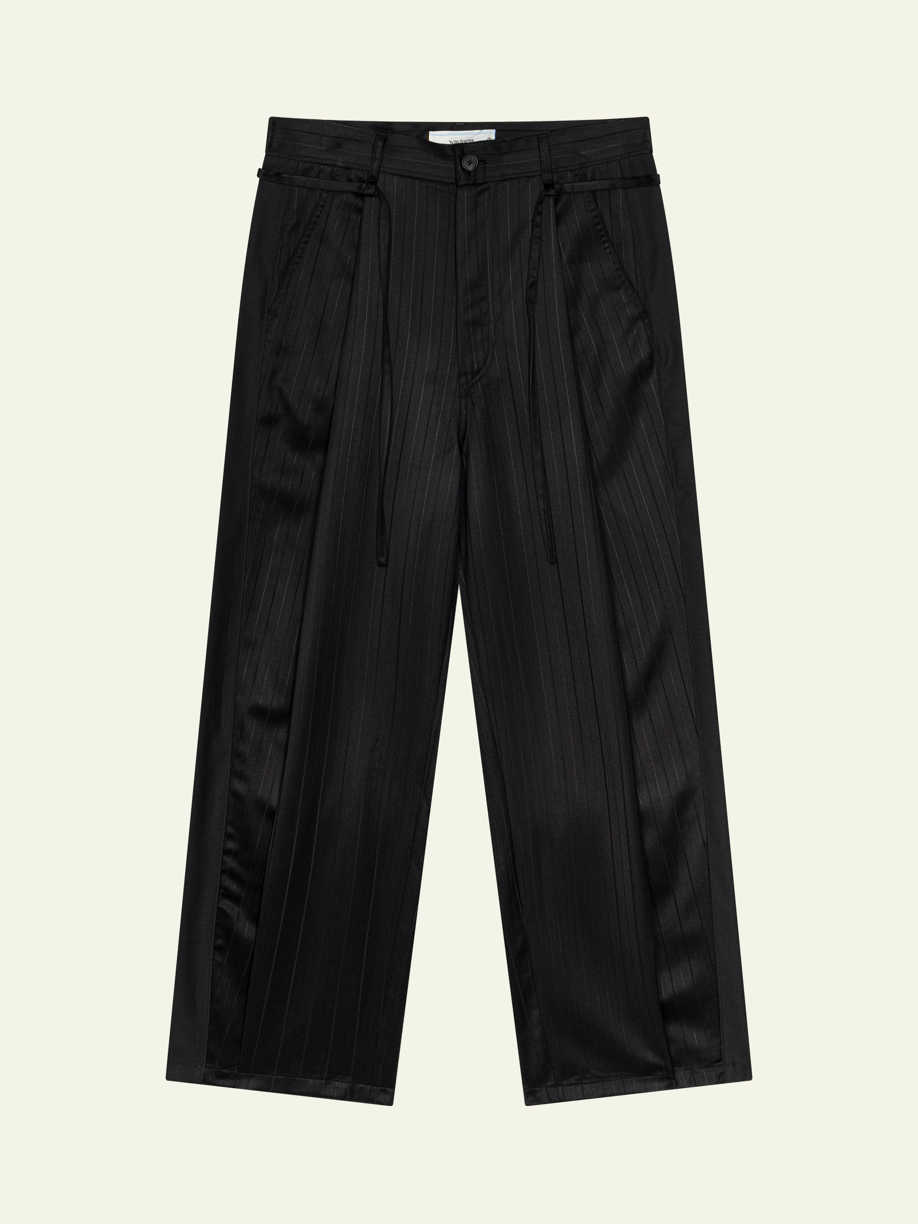 Deep One Tuck Side Line Wool Trousers - Black Stripe