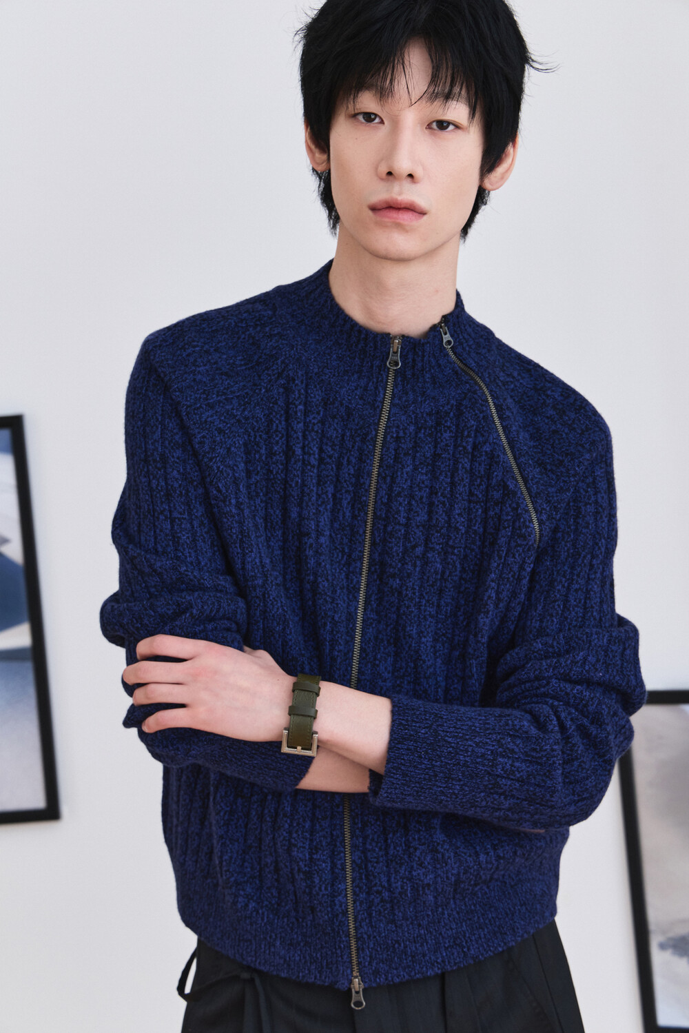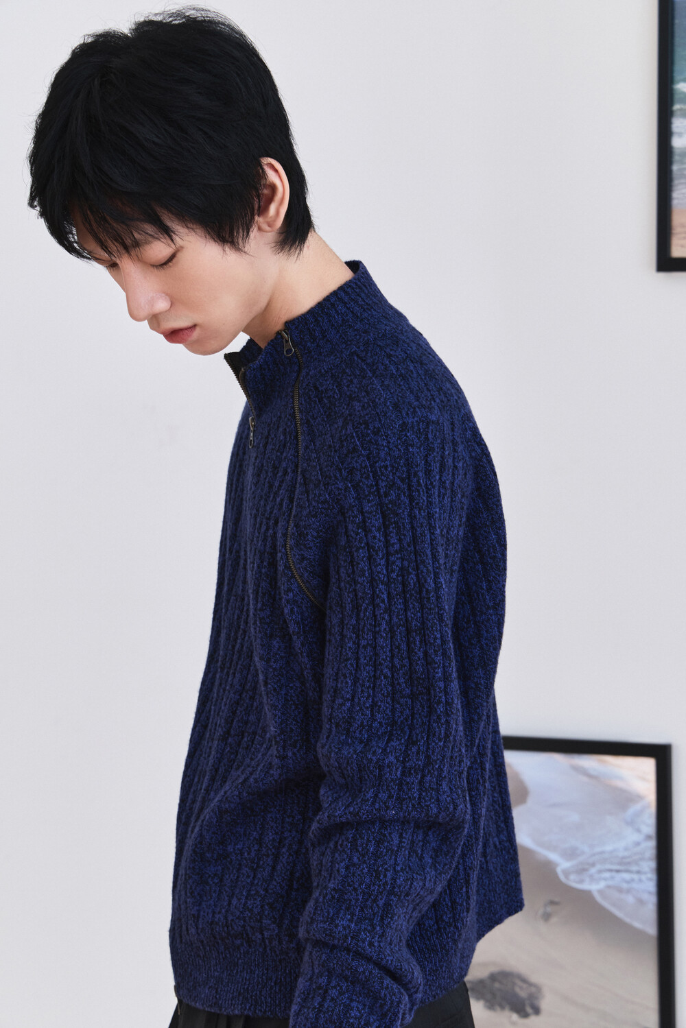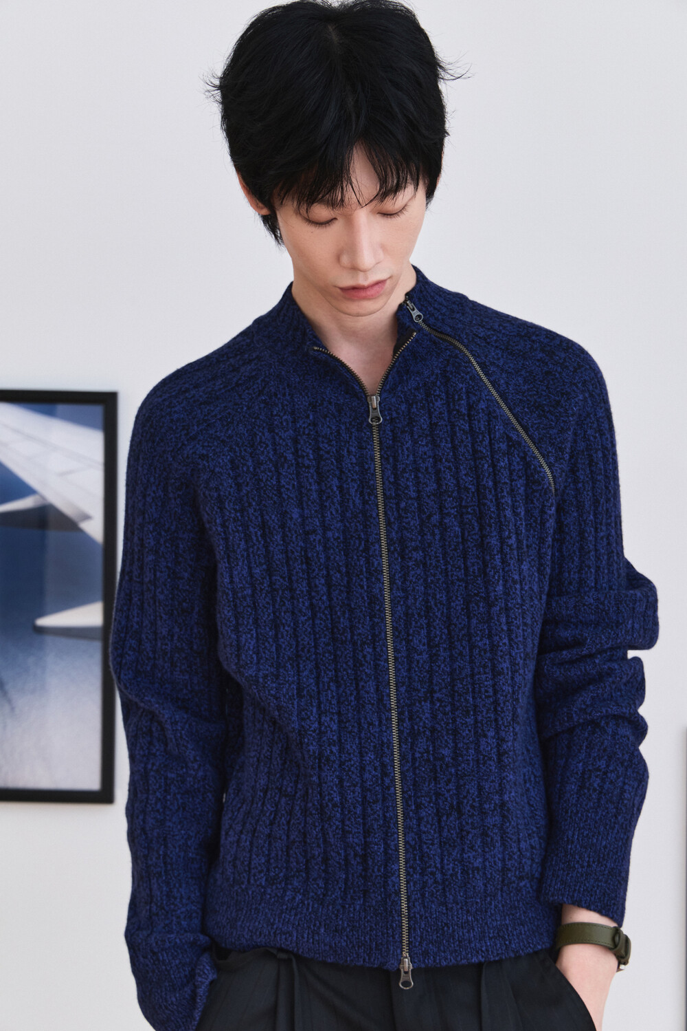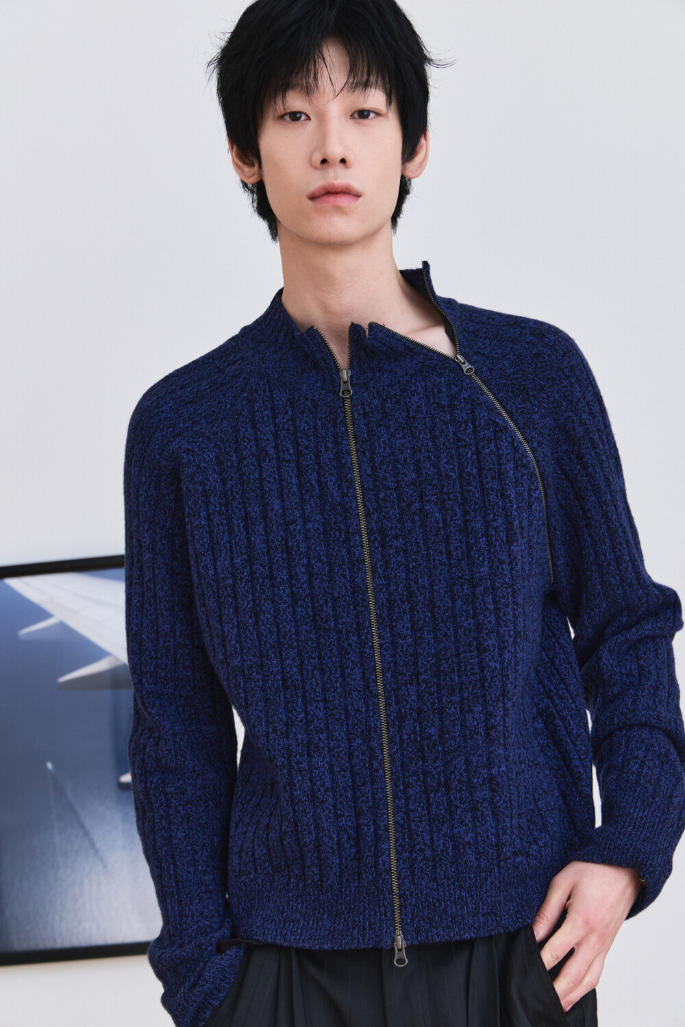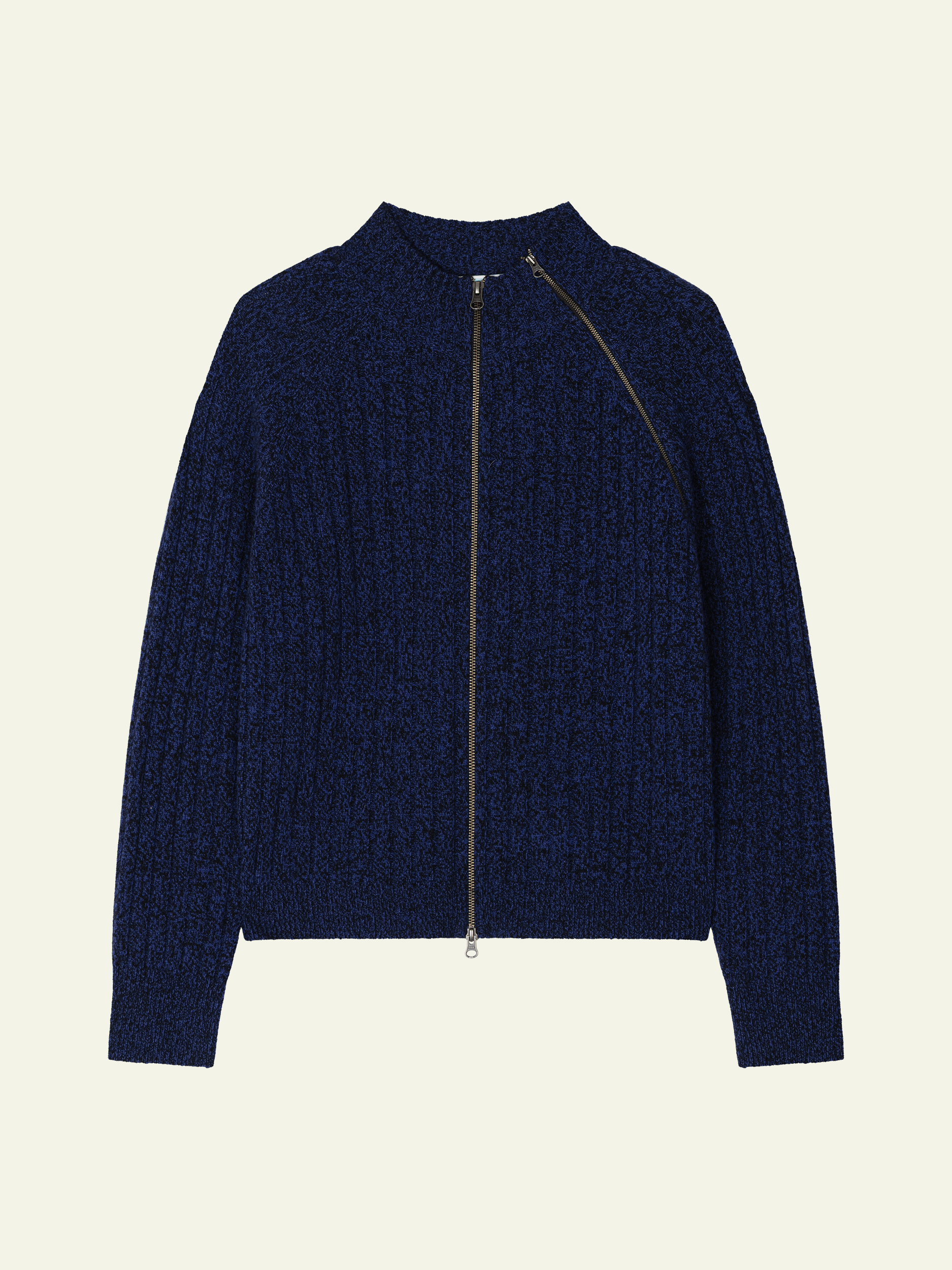Diagonal Full Zip Up Knitwear - Midnight Blue