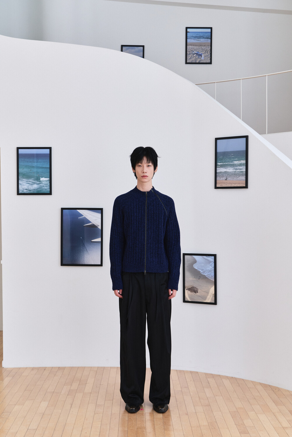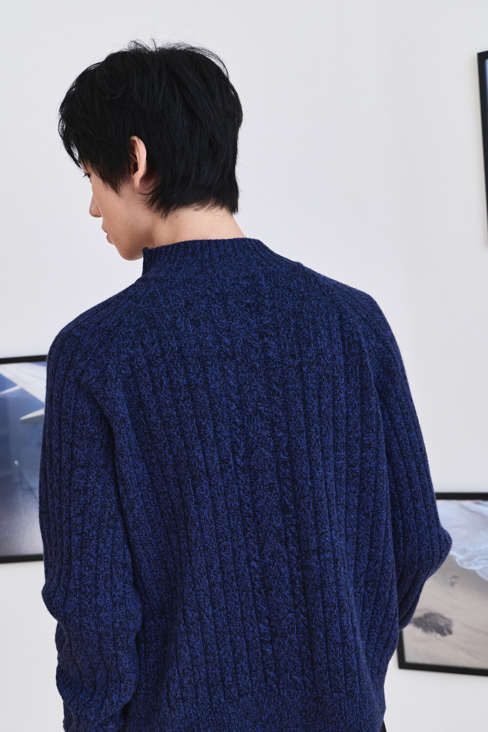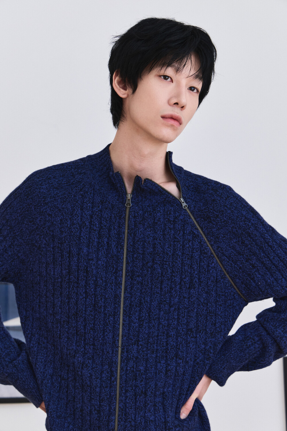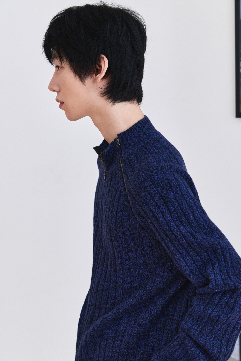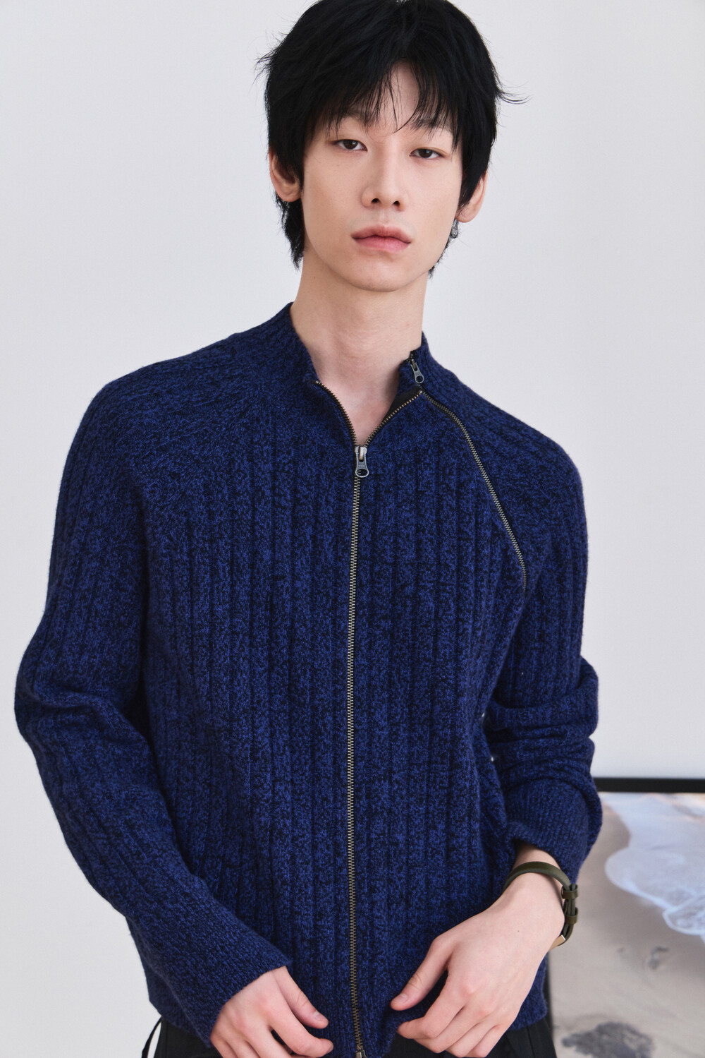 Diagonal Full Zip Up Knitwear - Midnight Blue
