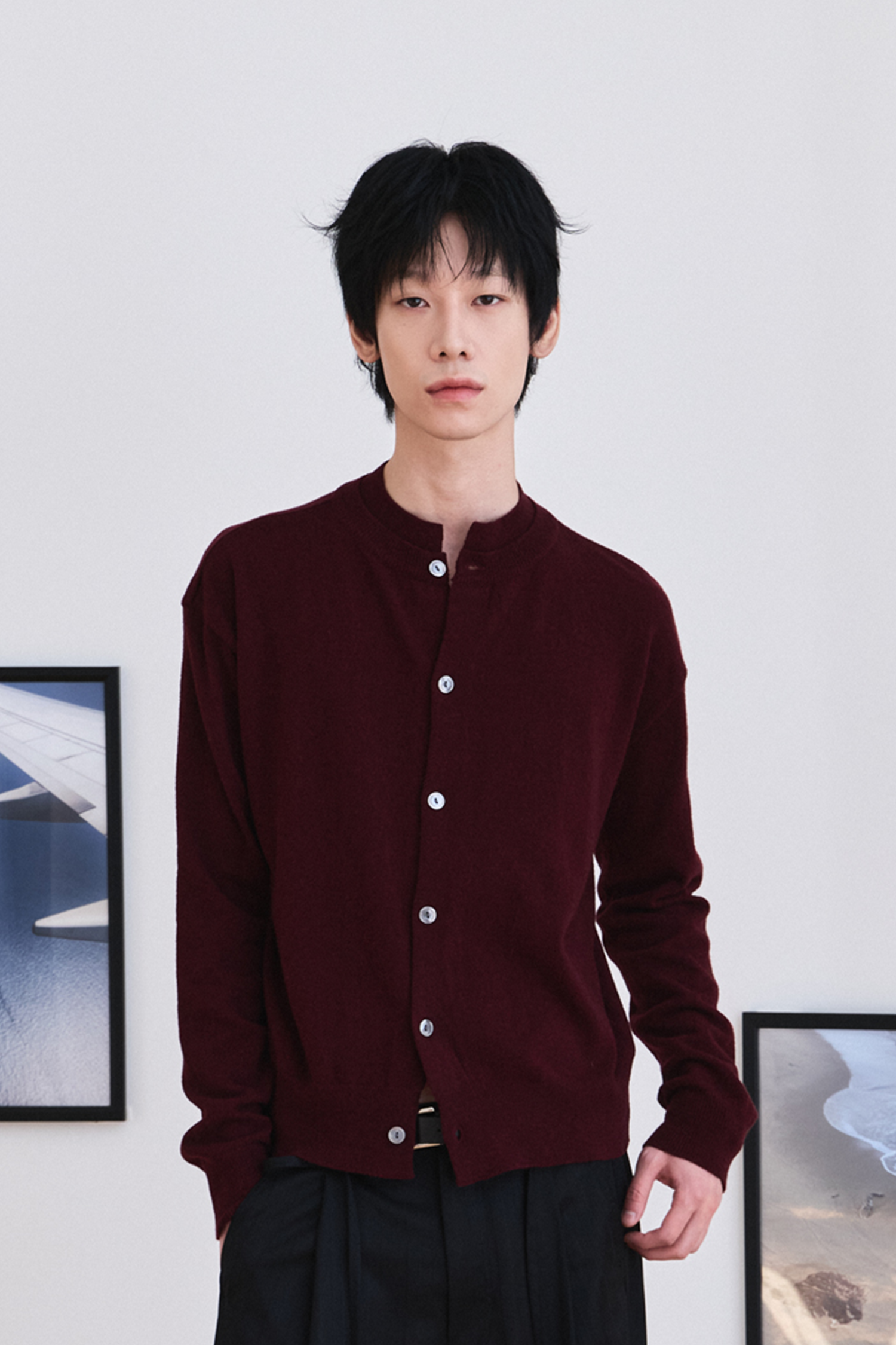 [Restock] Double Frame Round Neck Cardigan - Burgundy