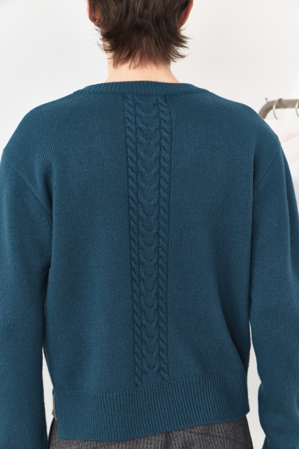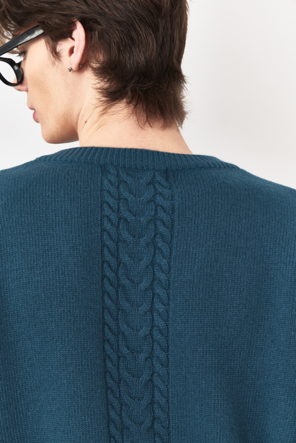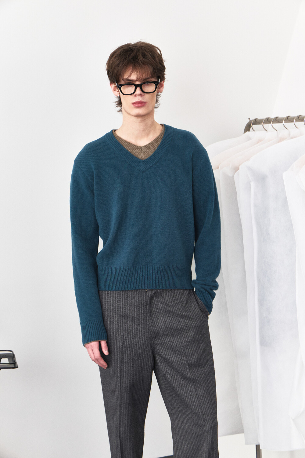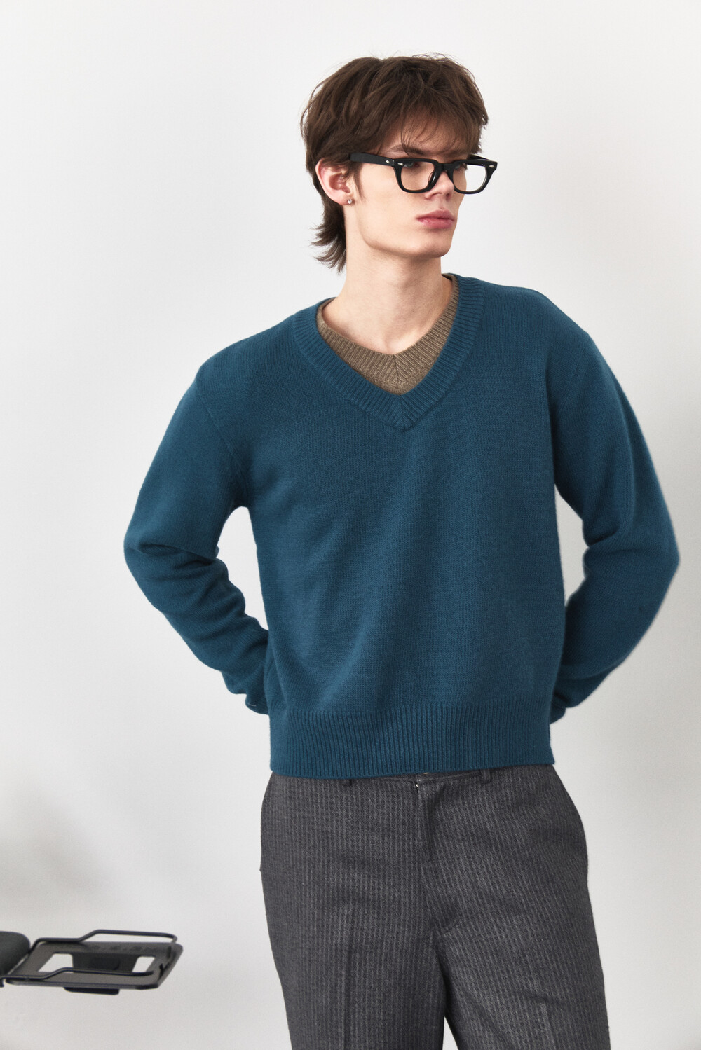 Double Layered V-Neck Knit - Turquoise Brown
