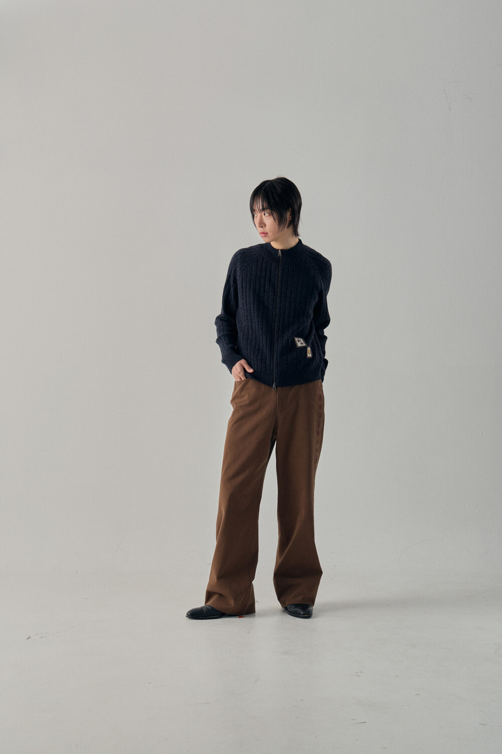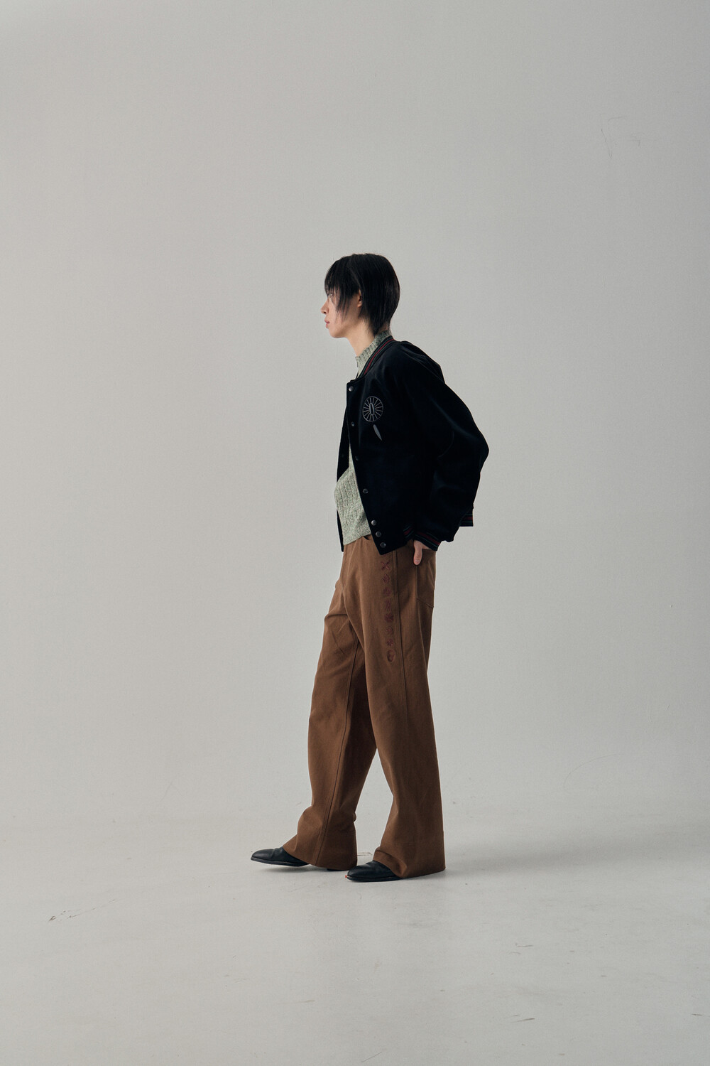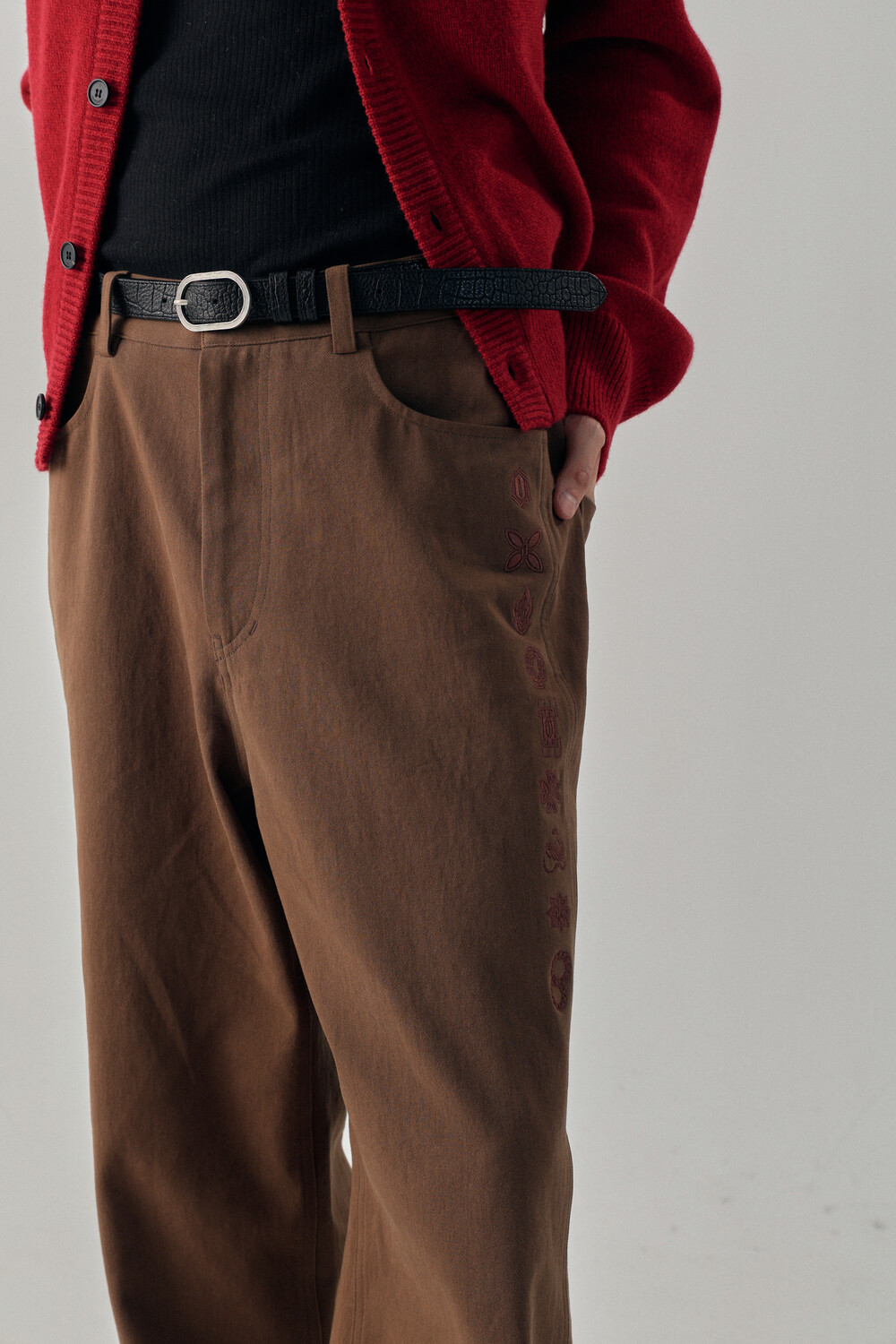 Hashira Tsuba Embroidery Cotton Pants - Brown
