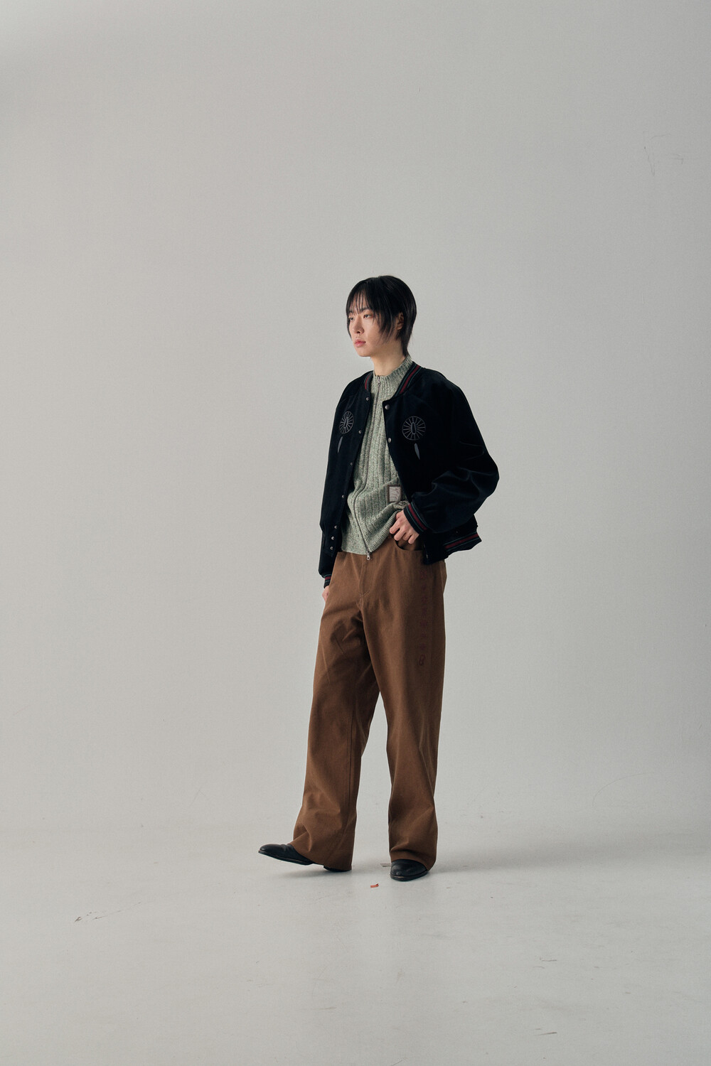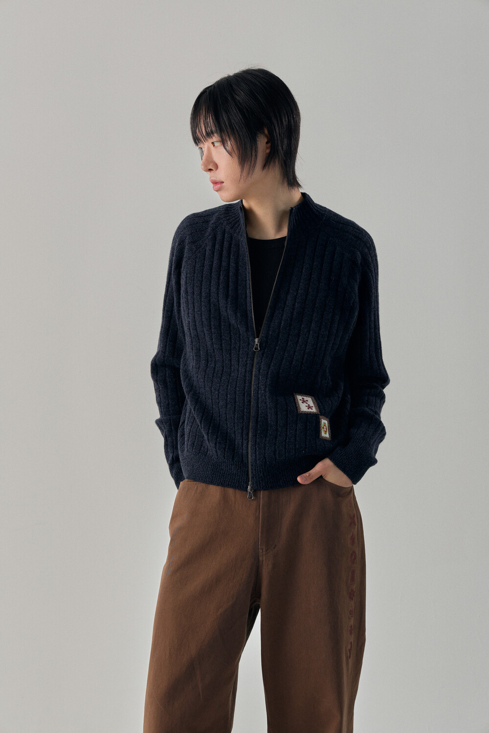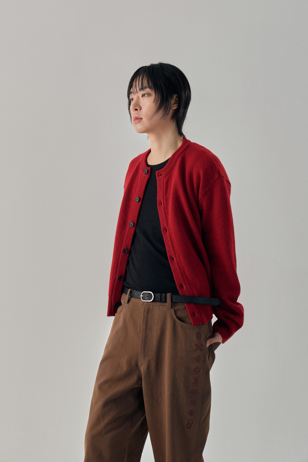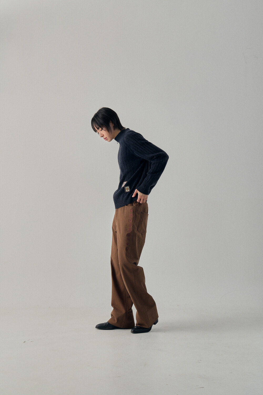 Hashira Tsuba Embroidery Cotton Pants - Brown