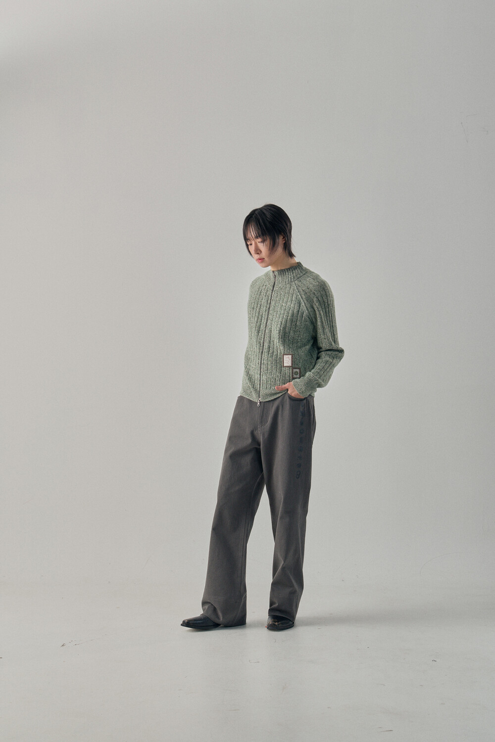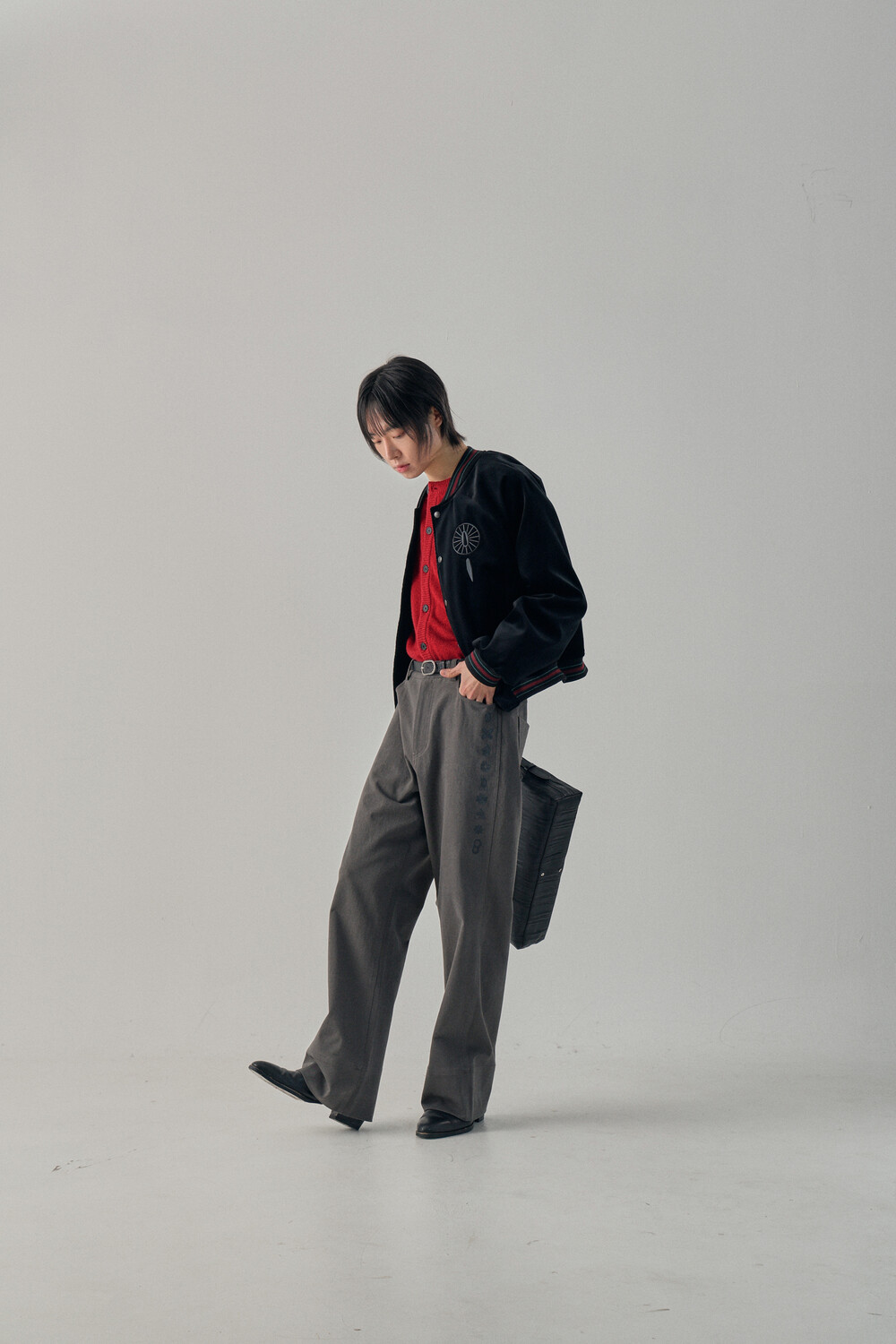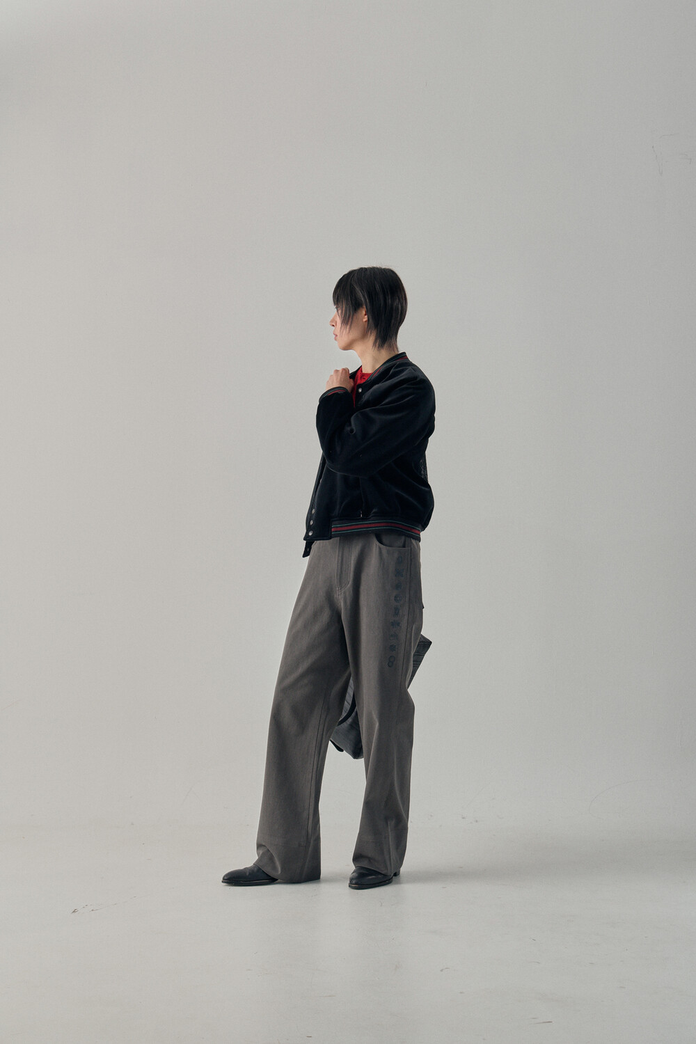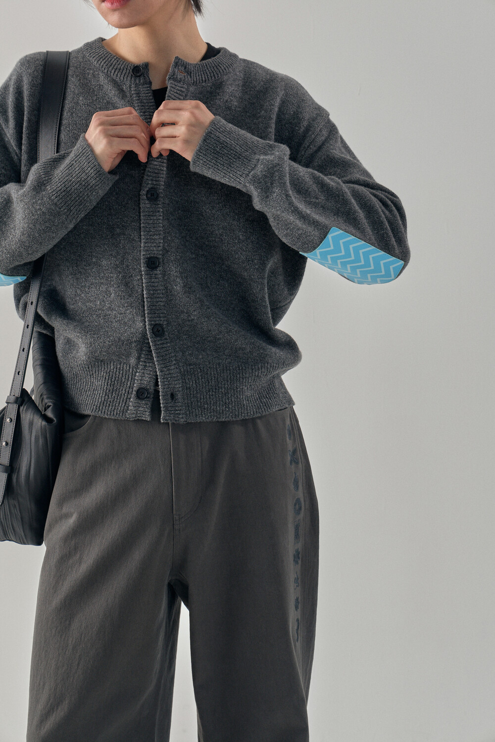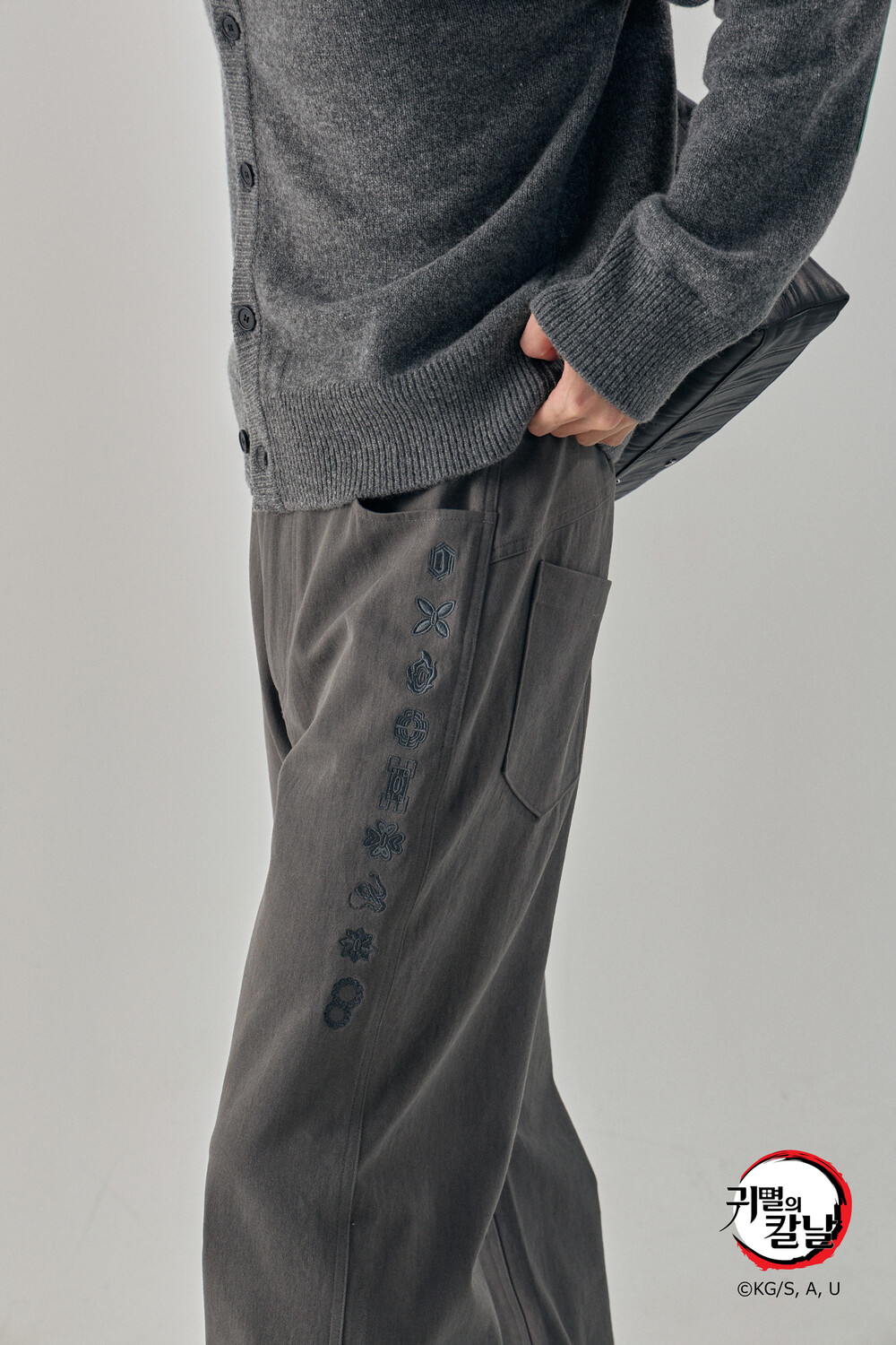 Hashira Tsuba Embroidery Cotton Pants - Charcoal