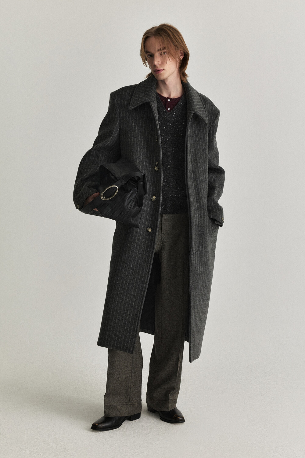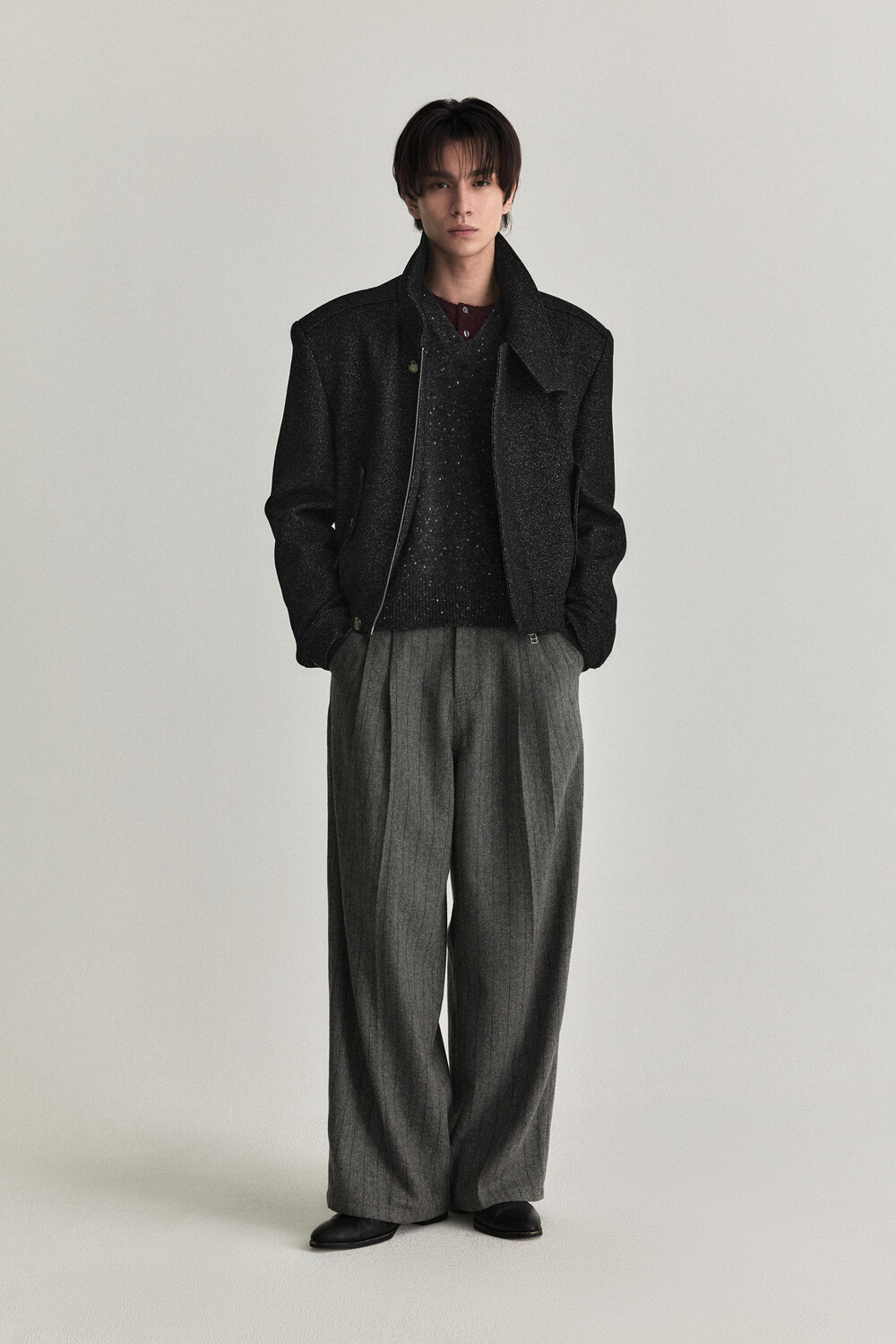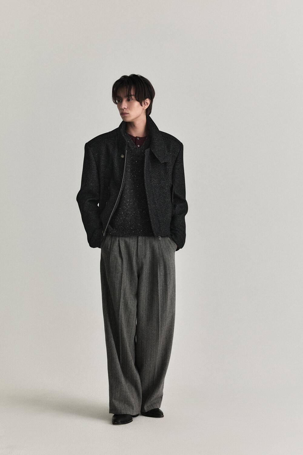 - 헨리넥과 브이넥을 레이어드해 입은 디자인