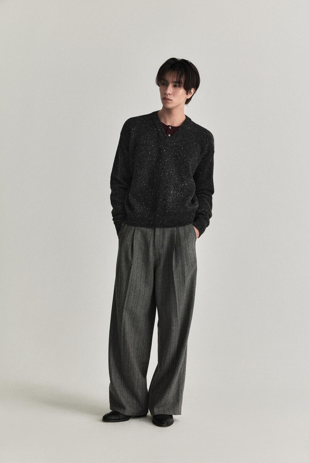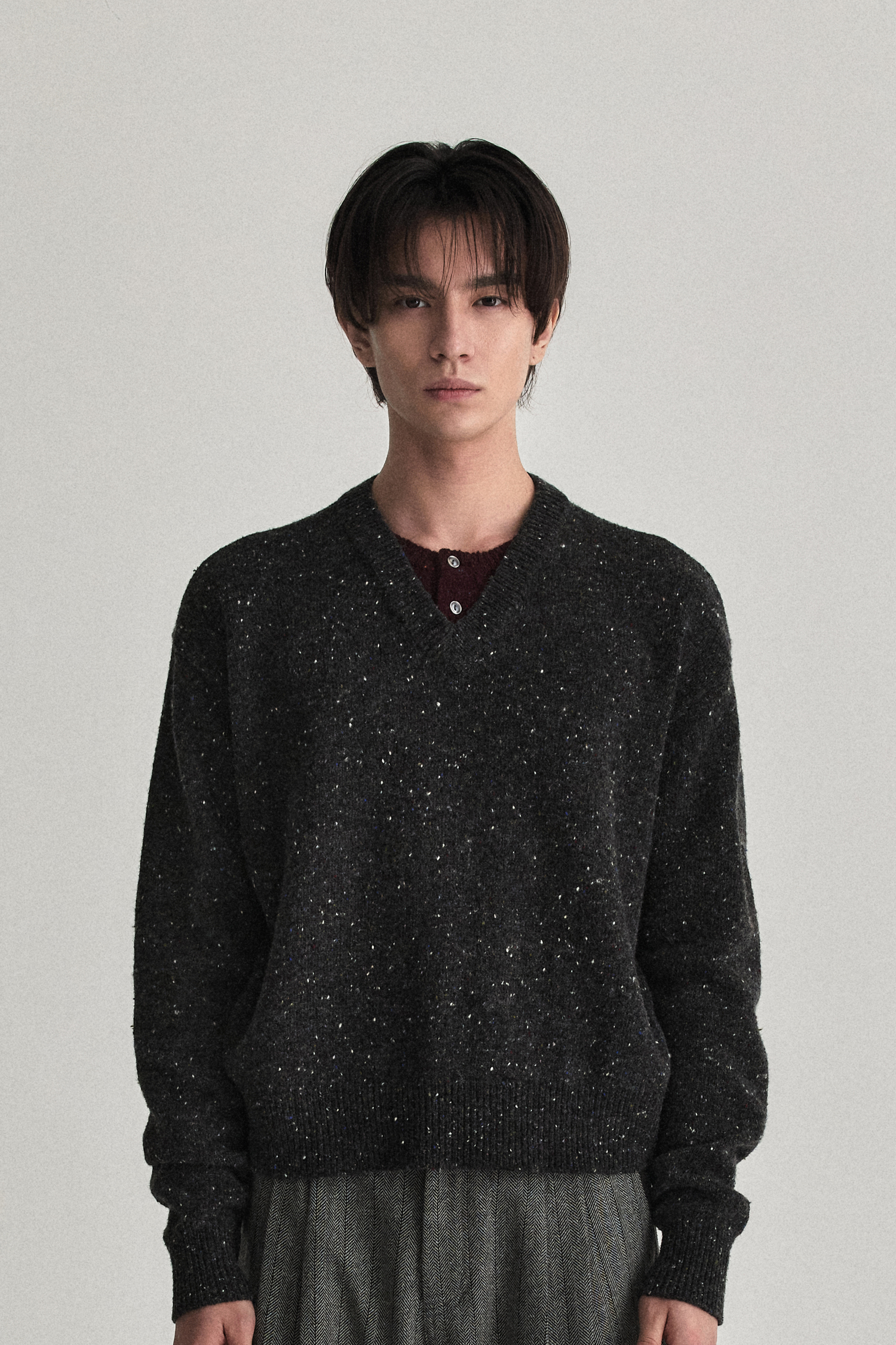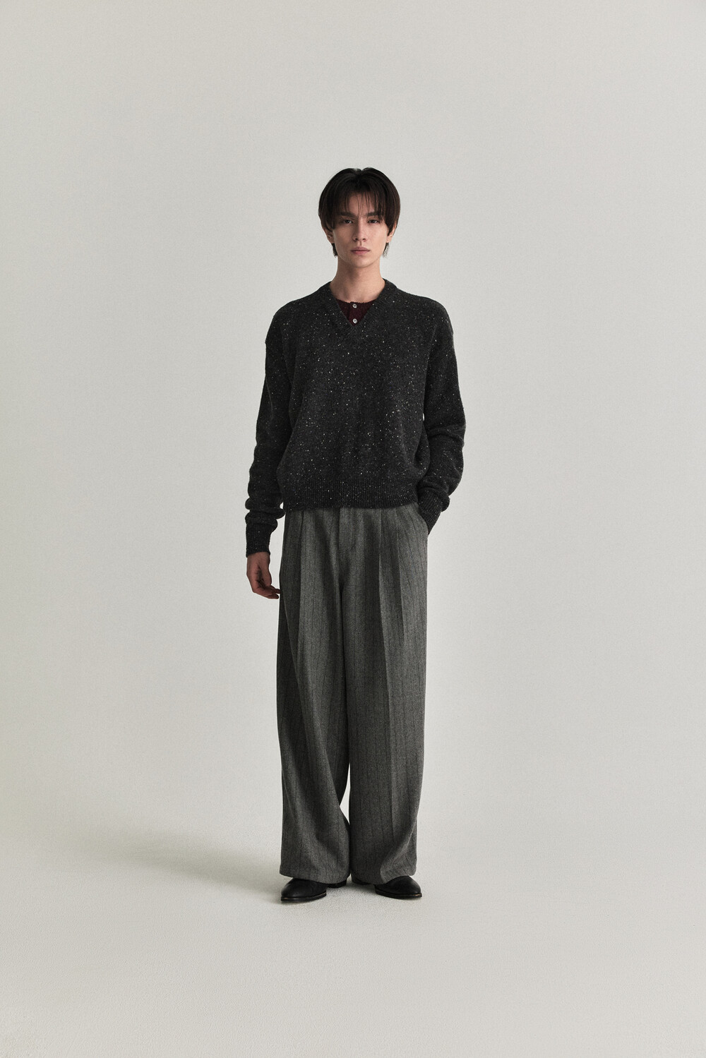 - 울 혼용 니트 패브릭으로 제작된 헨리넥 레이어드 브이넥 디자인