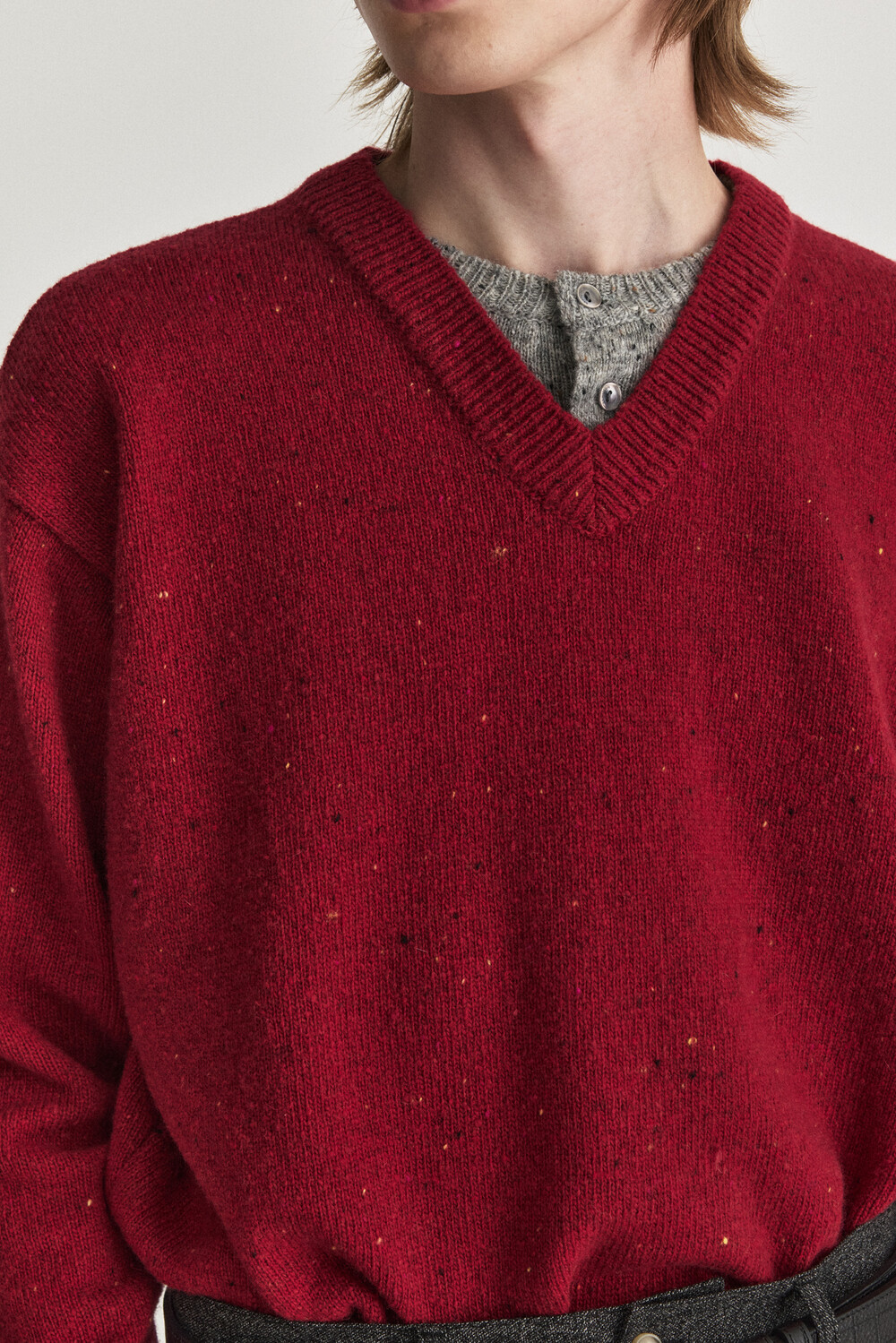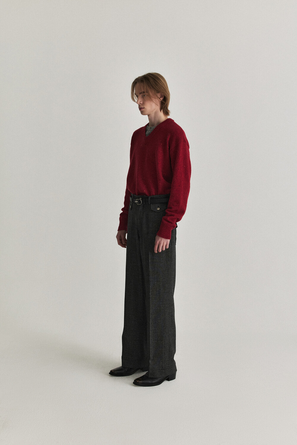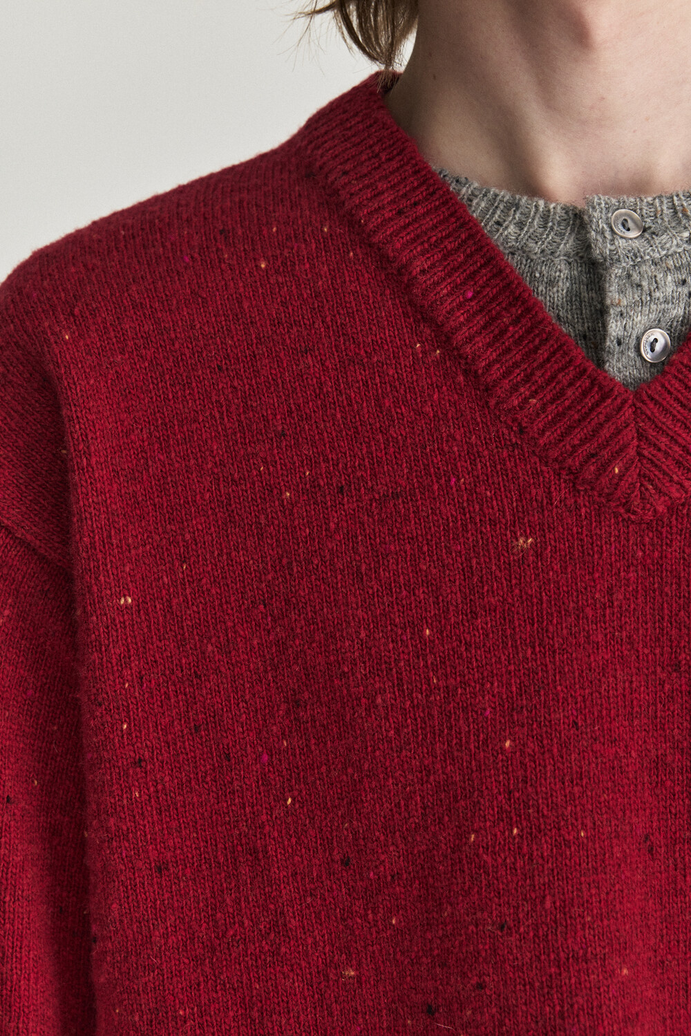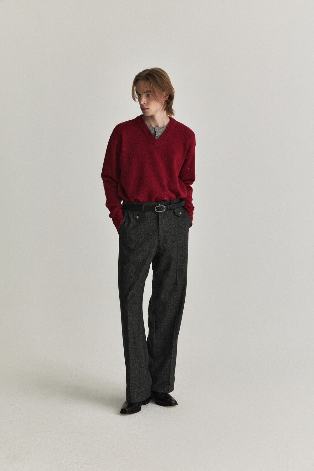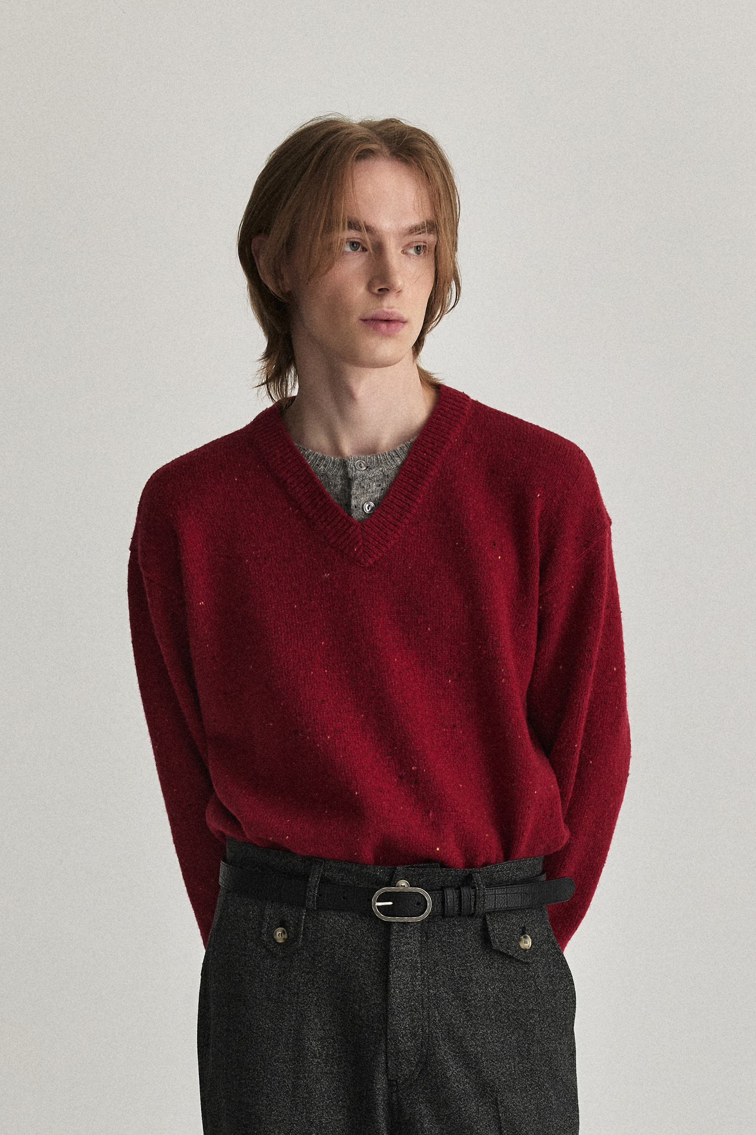 - 울 혼용 니트 패브릭으로 제작된 헨리넥 레이어드 브이넥 디자인