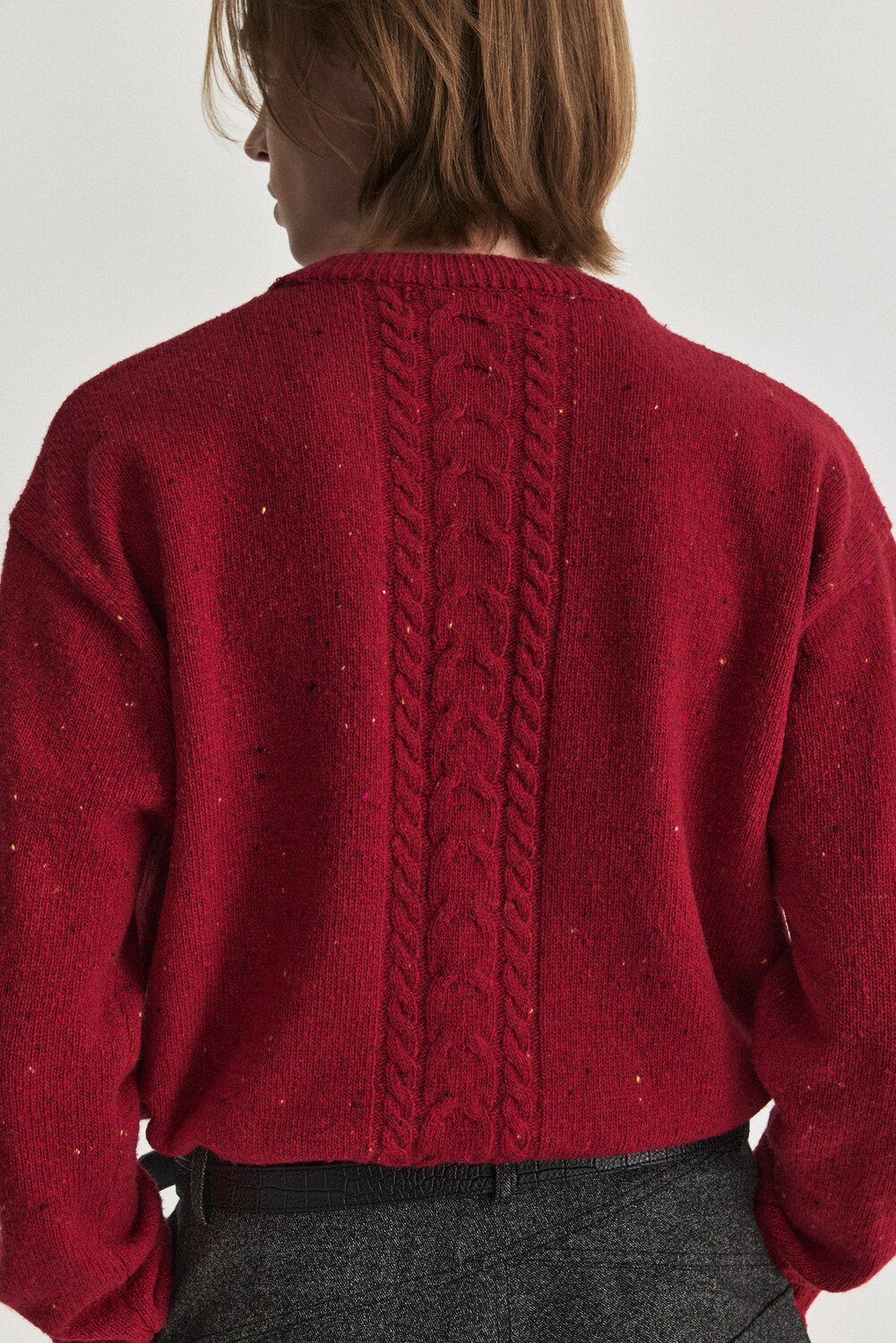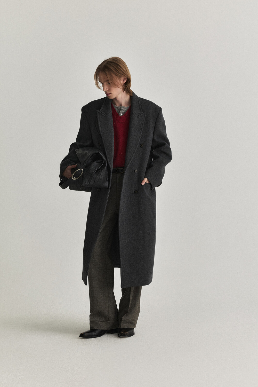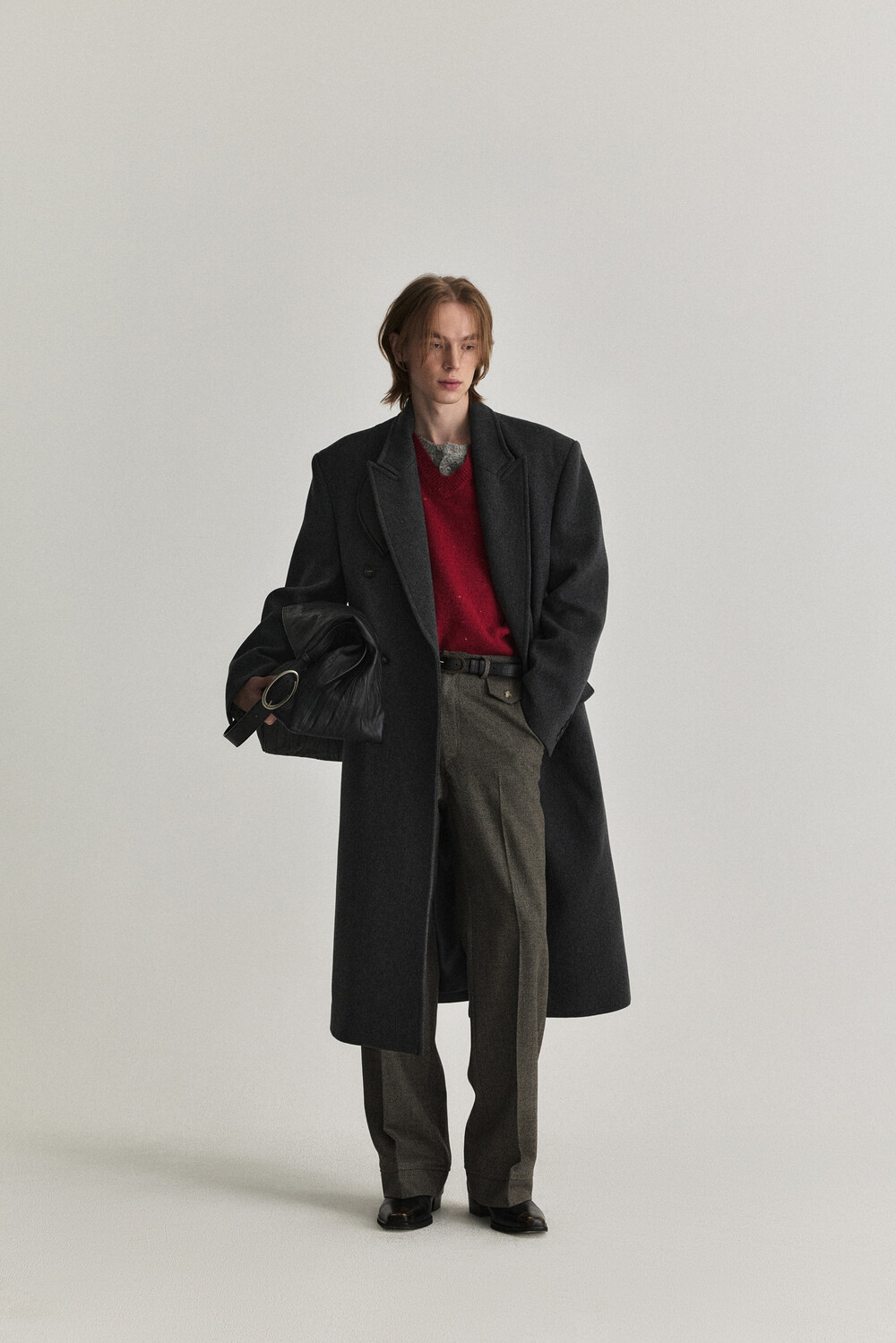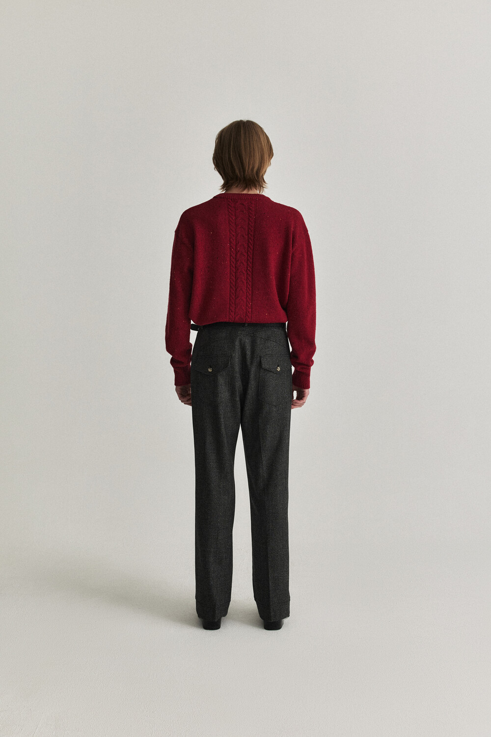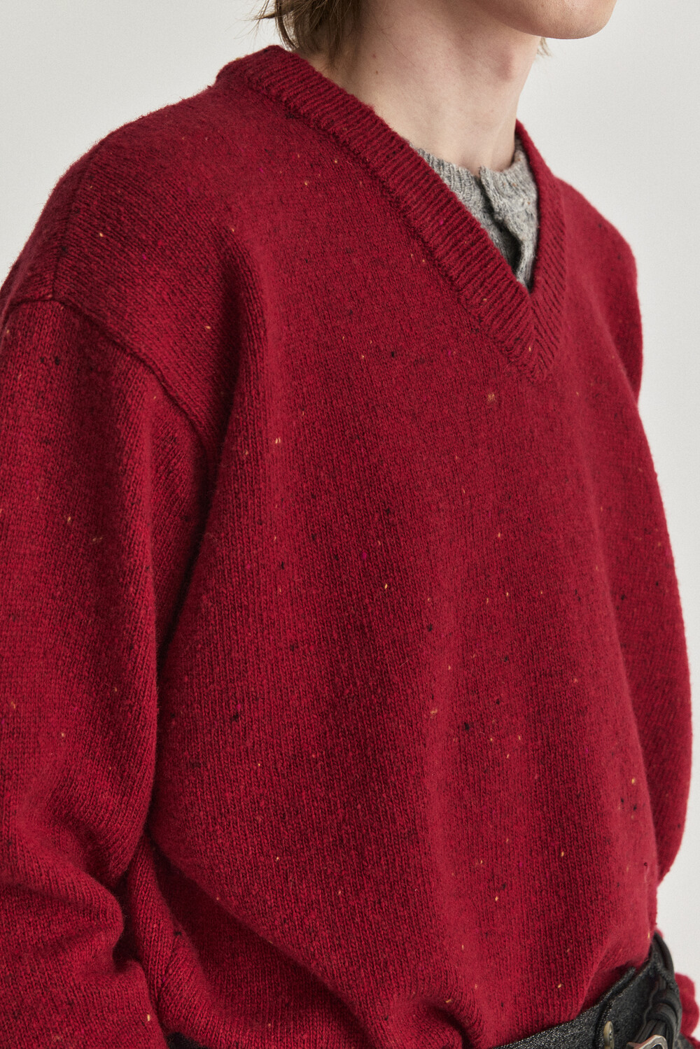 - 울 혼용 니트 패브릭으로 제작된 헨리넥 레이어드 브이넥 디자인