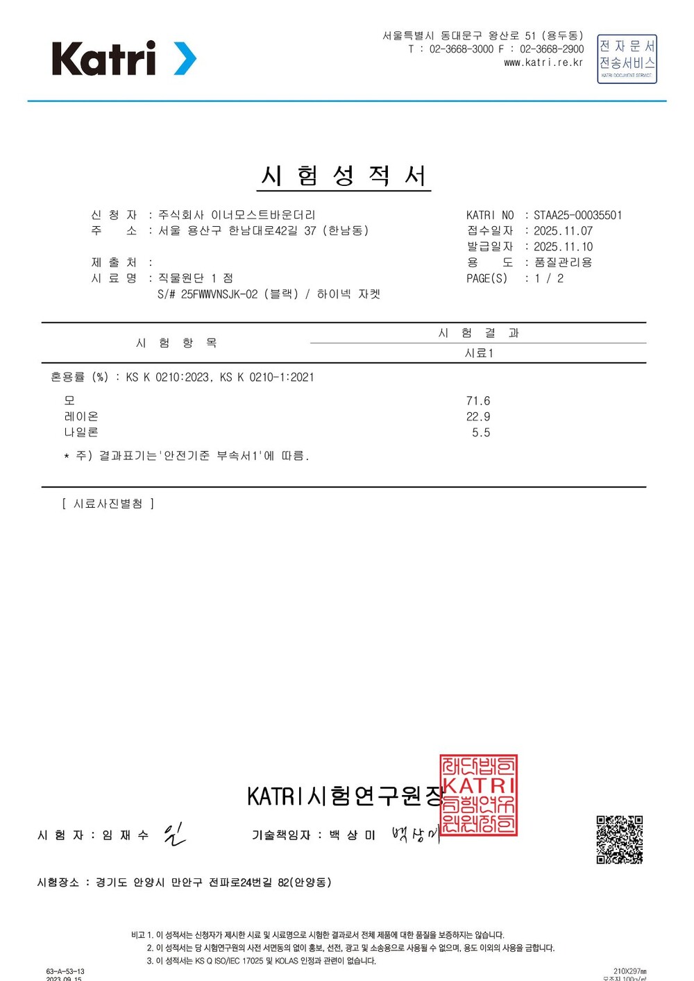 1 : 어깨 52 가슴 56 소매 64.5 총장 59