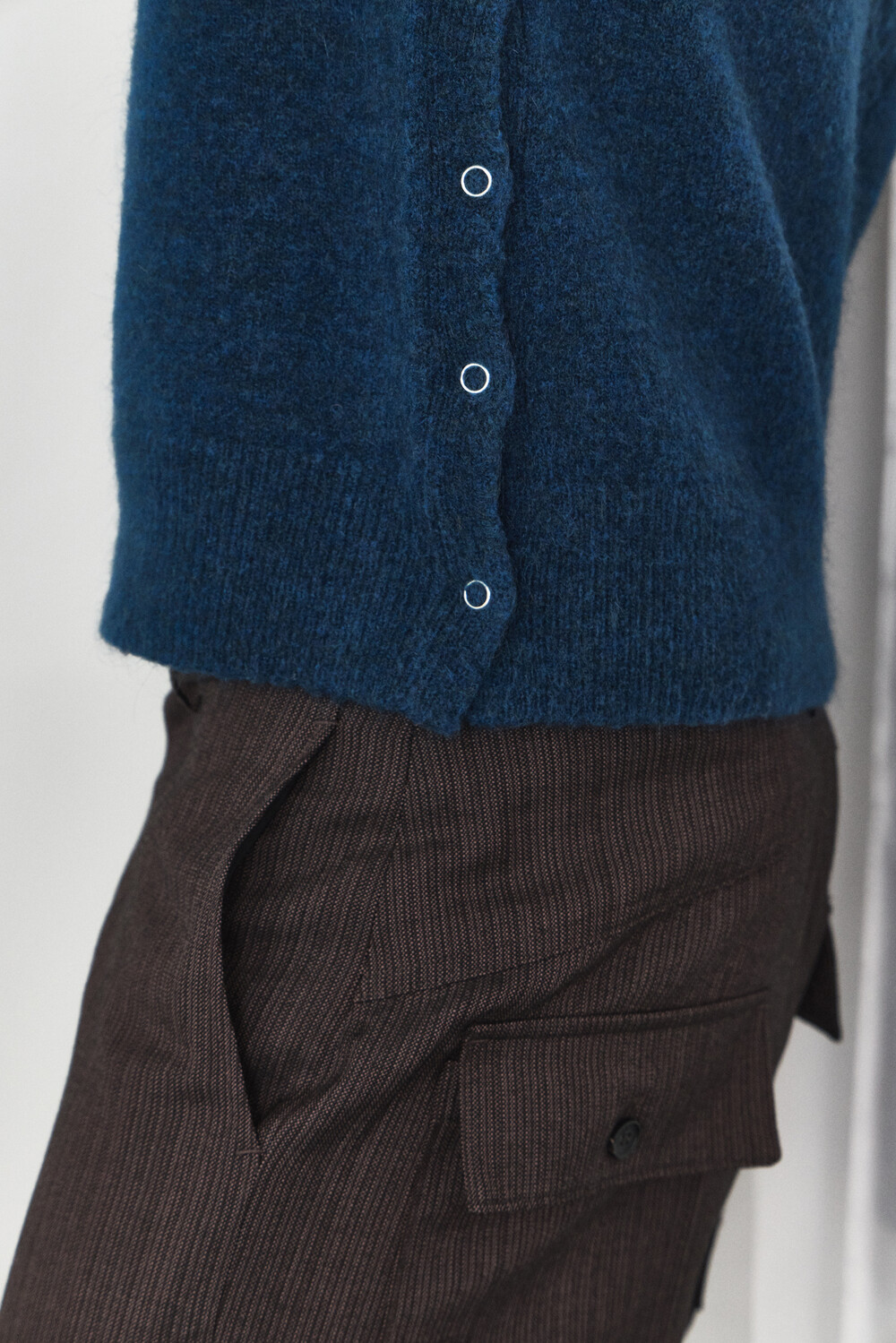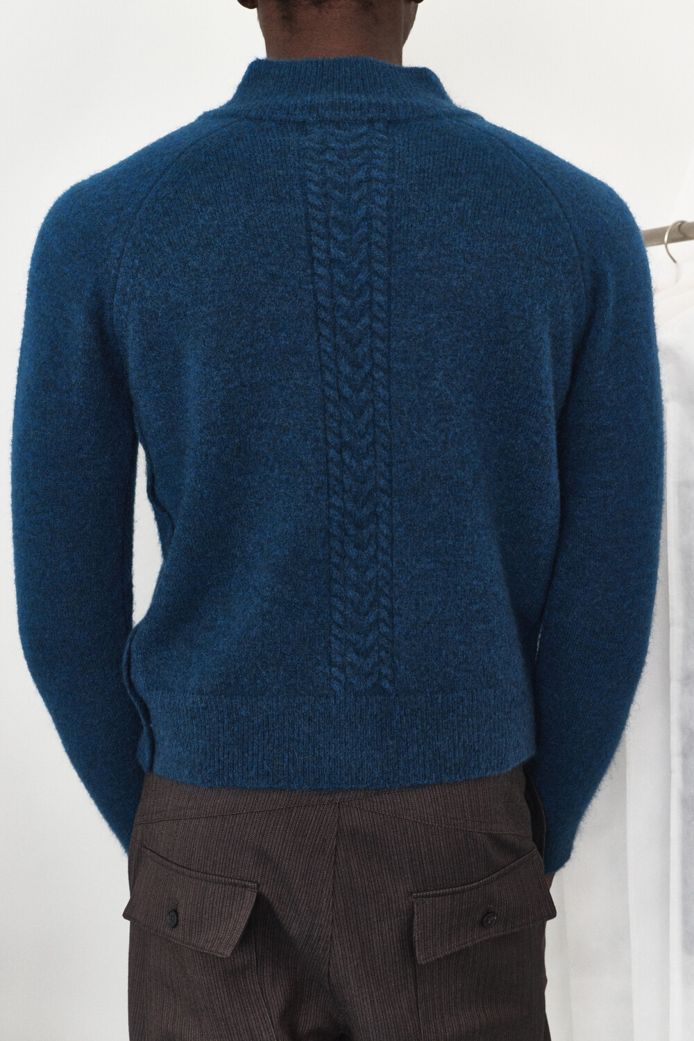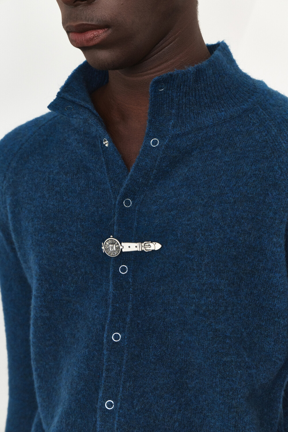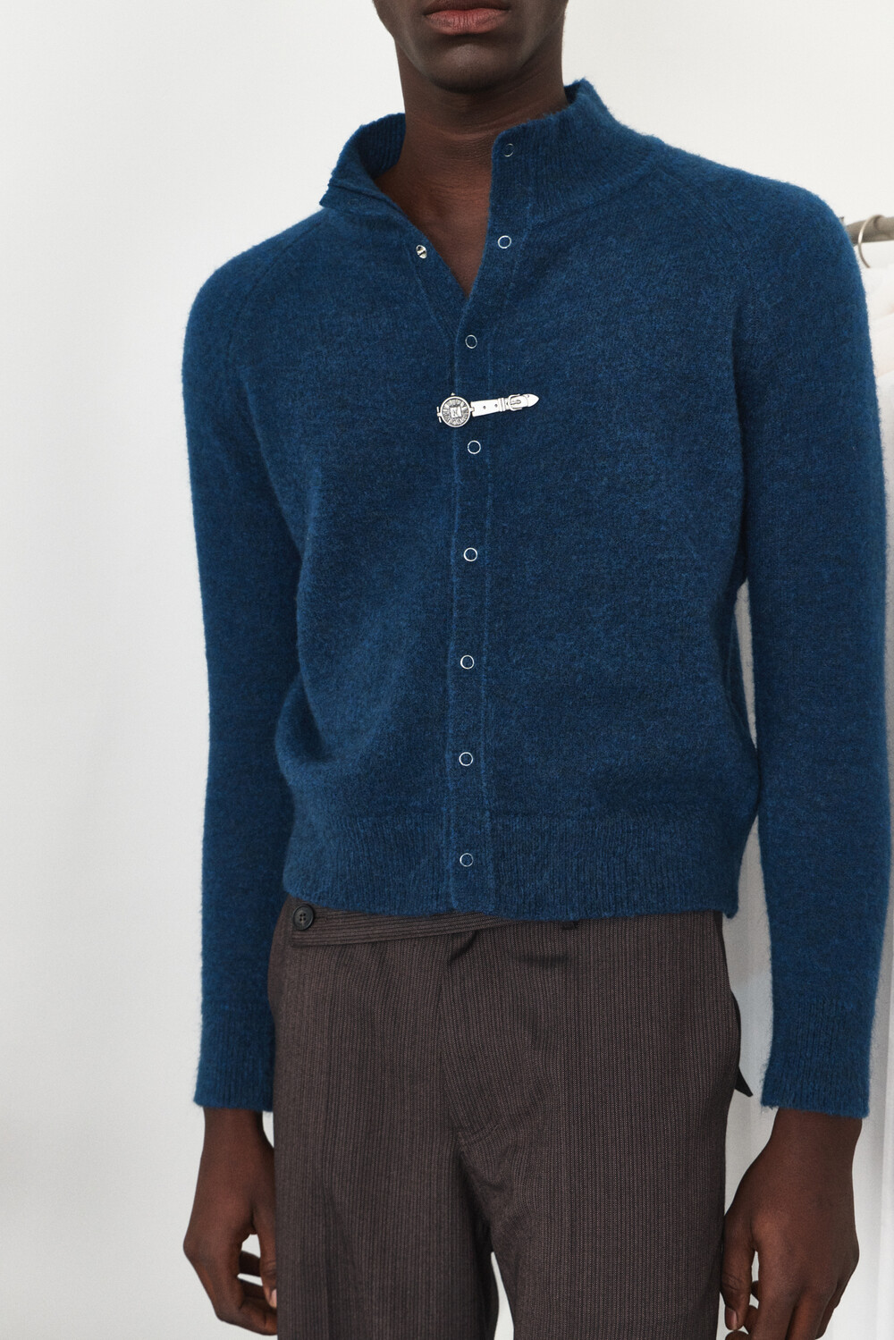 High-Neck Snap Mohair Cardigan - Blue