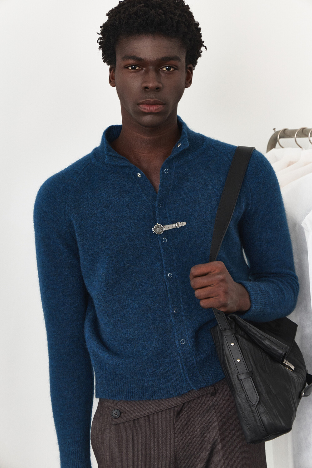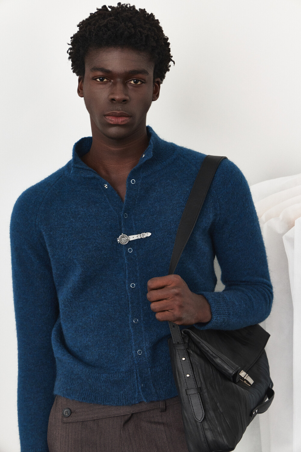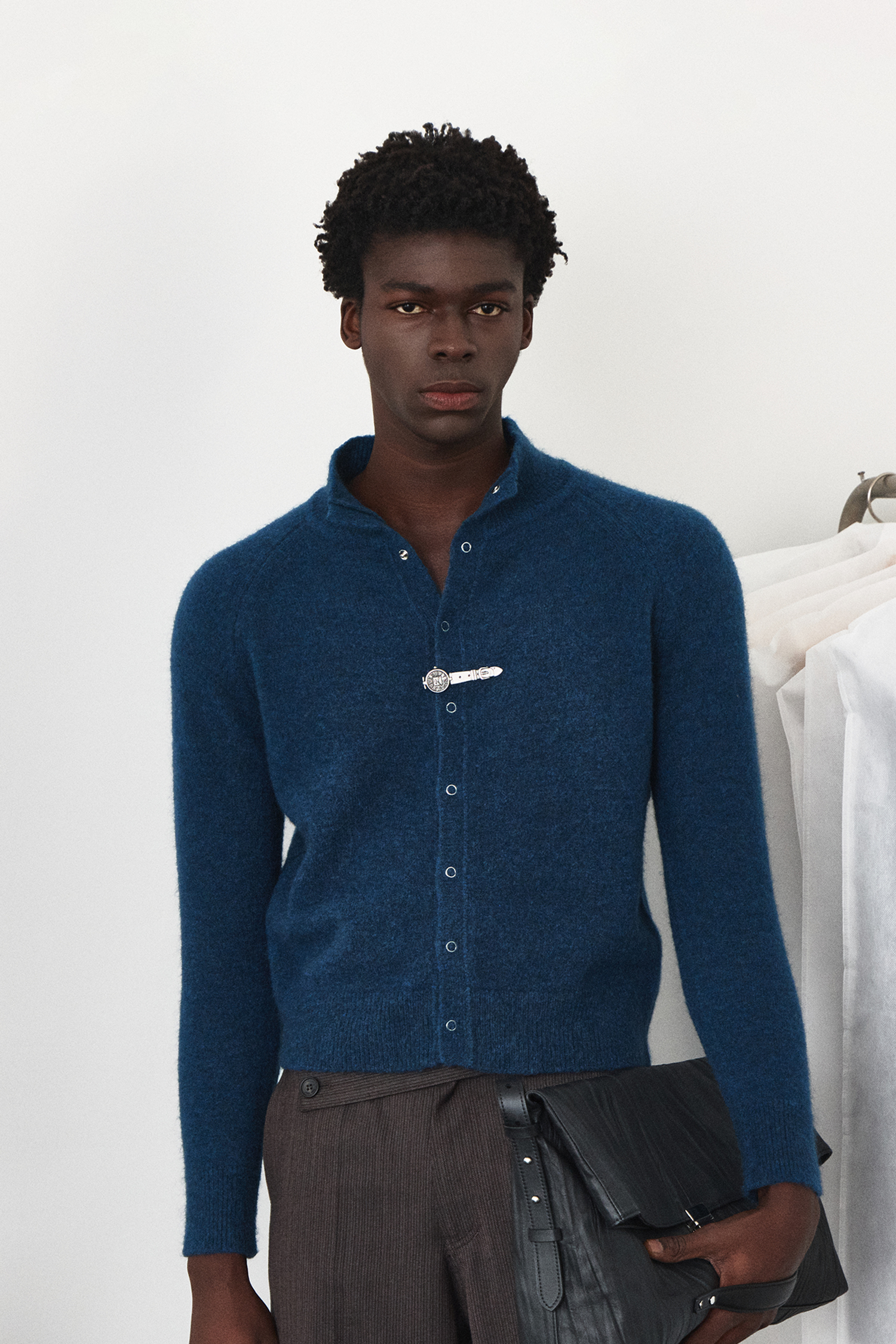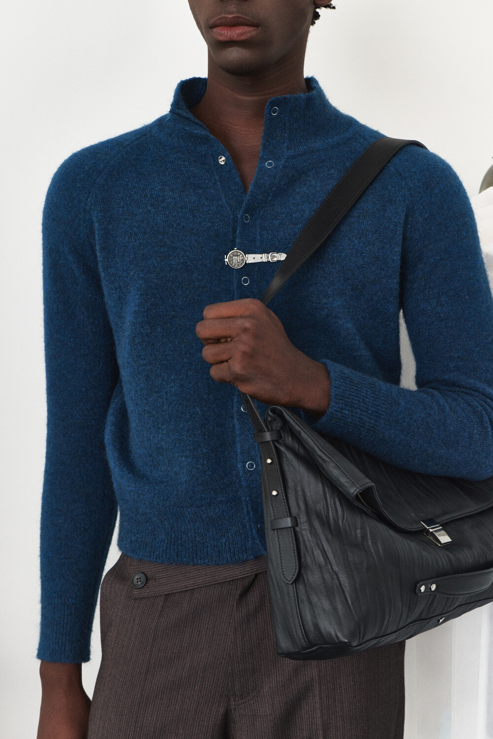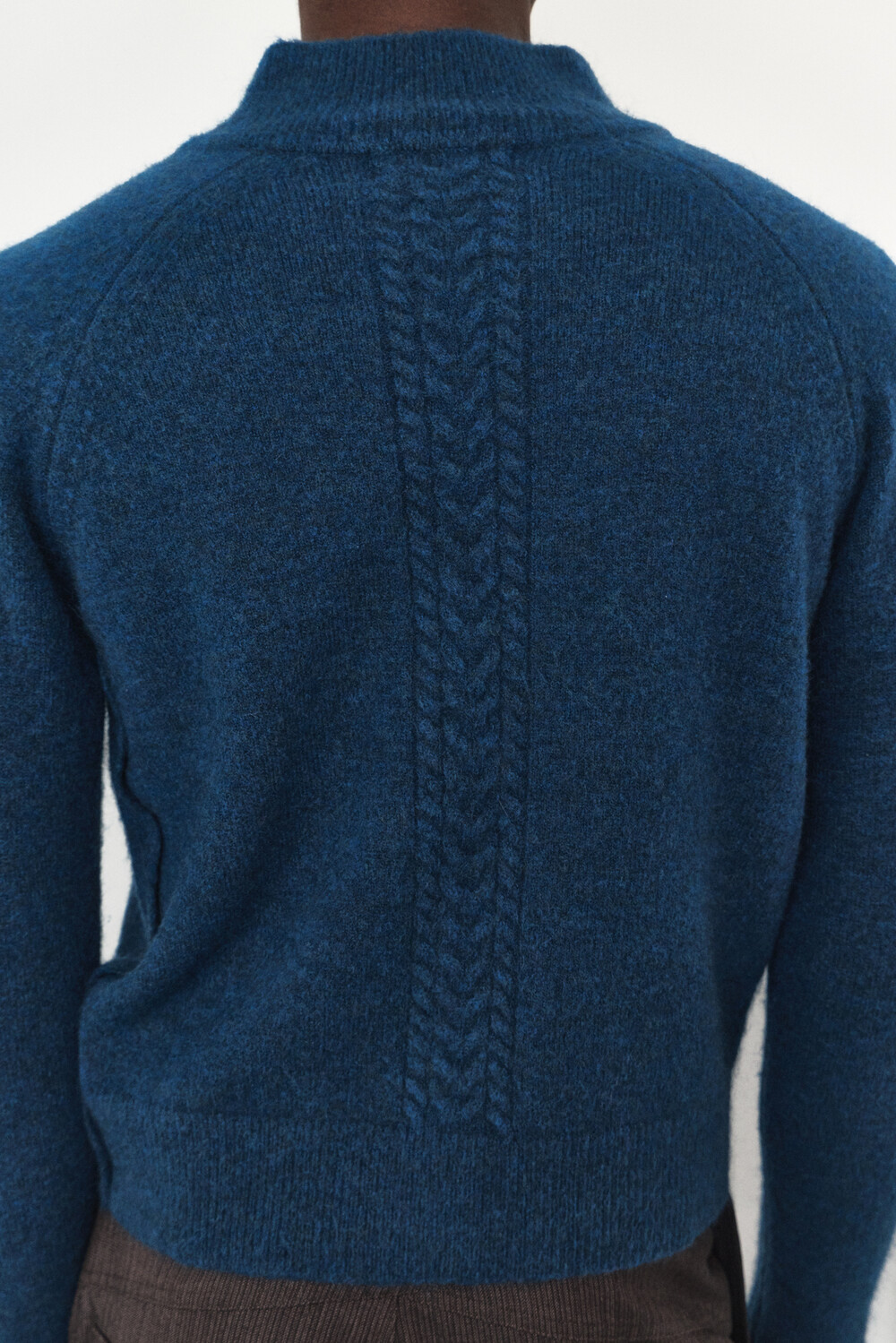 High-Neck Snap Mohair Cardigan - Blue