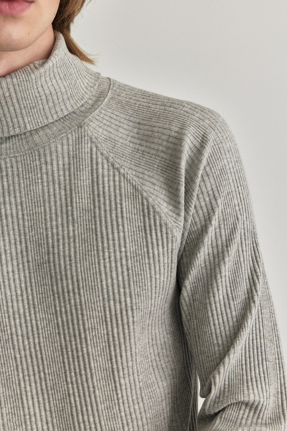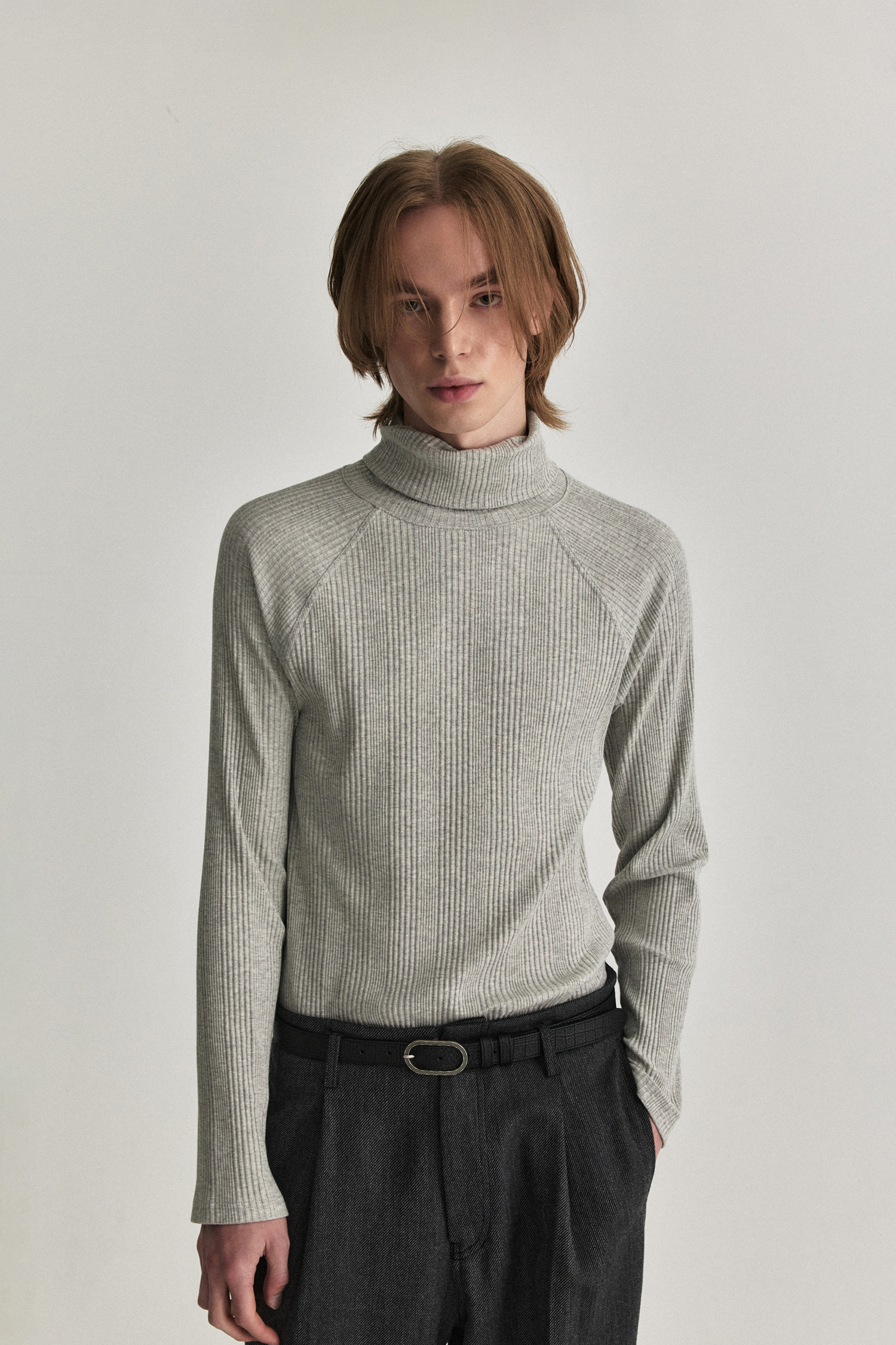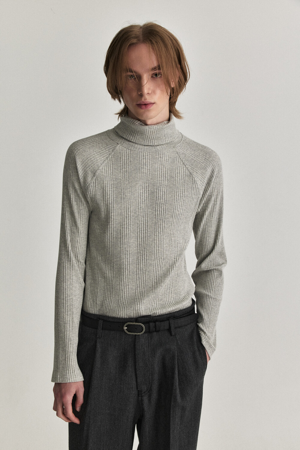 - 코튼 레이온 혼방의 골지 터틀넥 니트