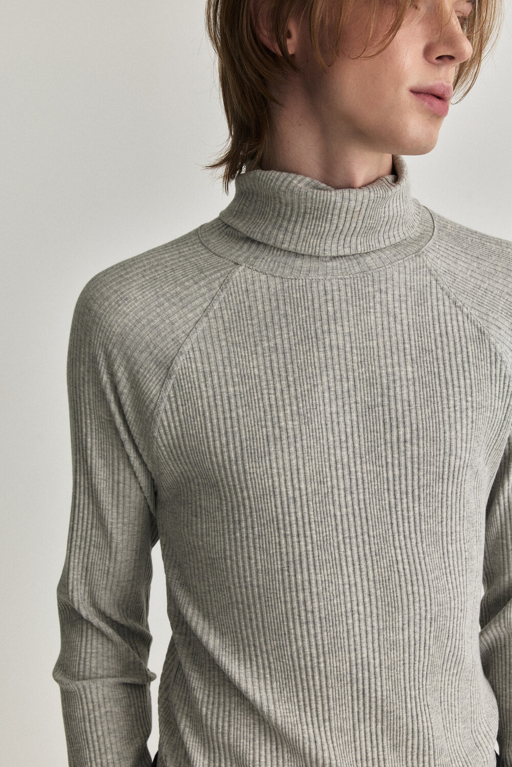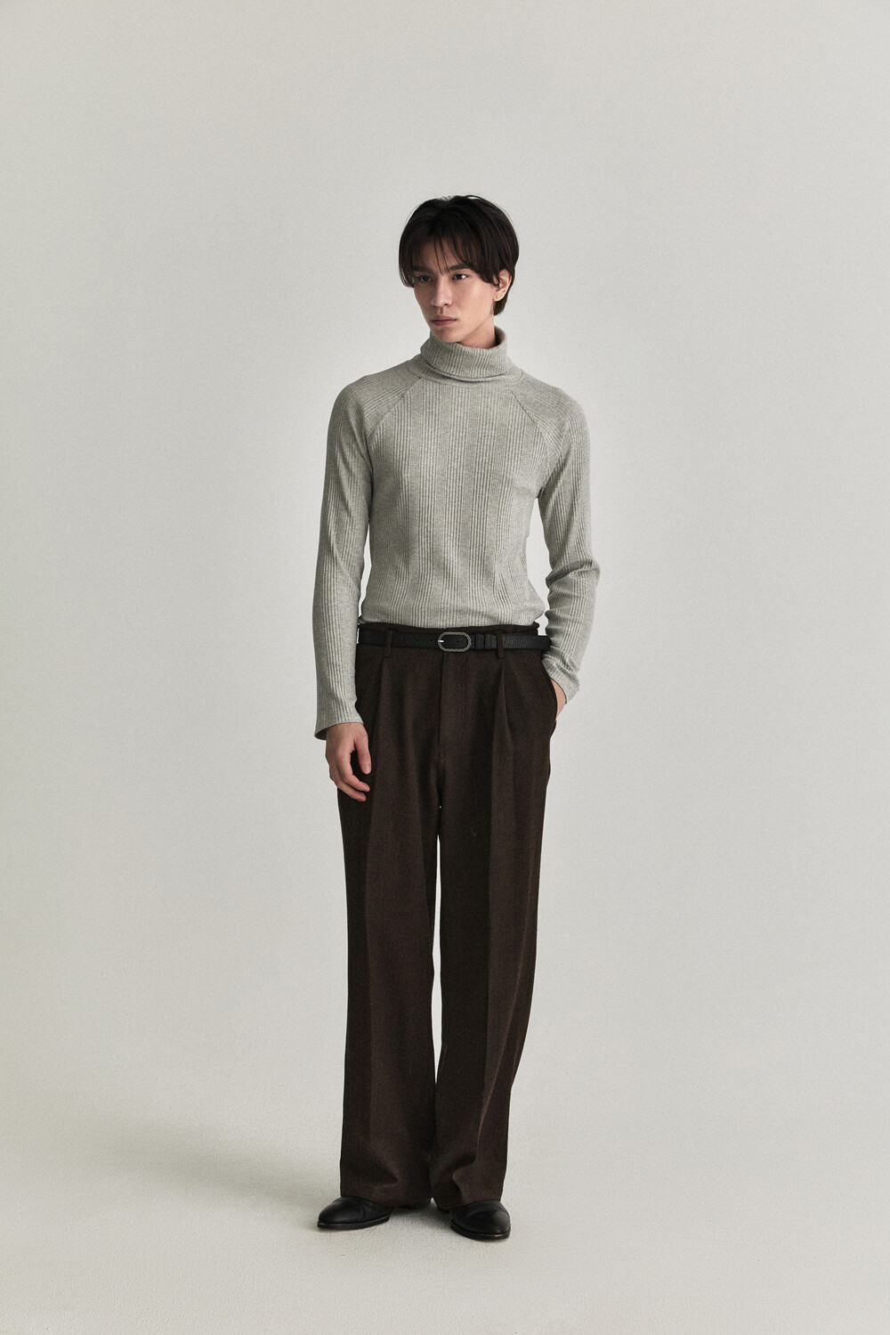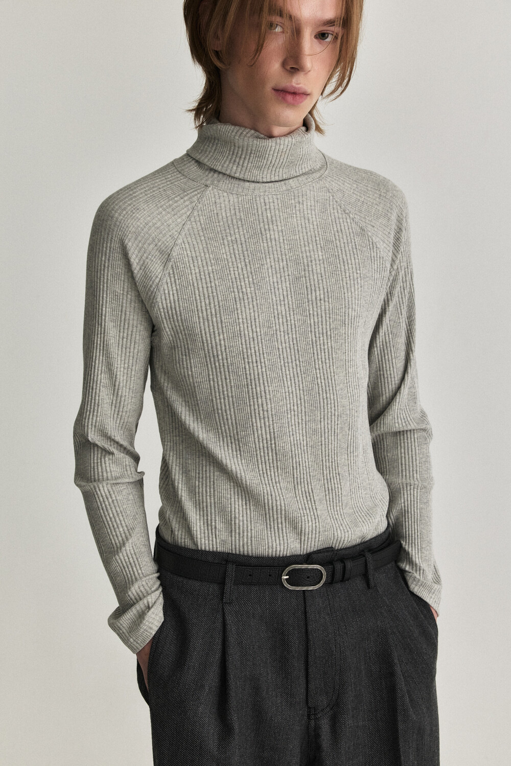 - 코튼 레이온 혼방의 골지 터틀넥 니트