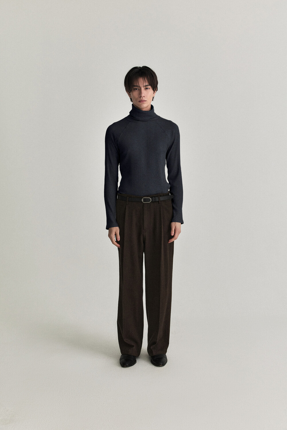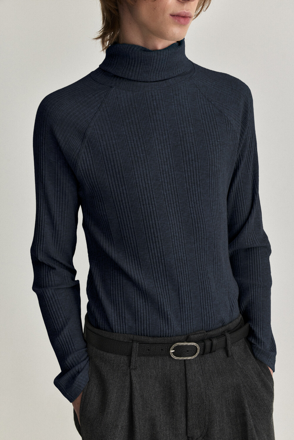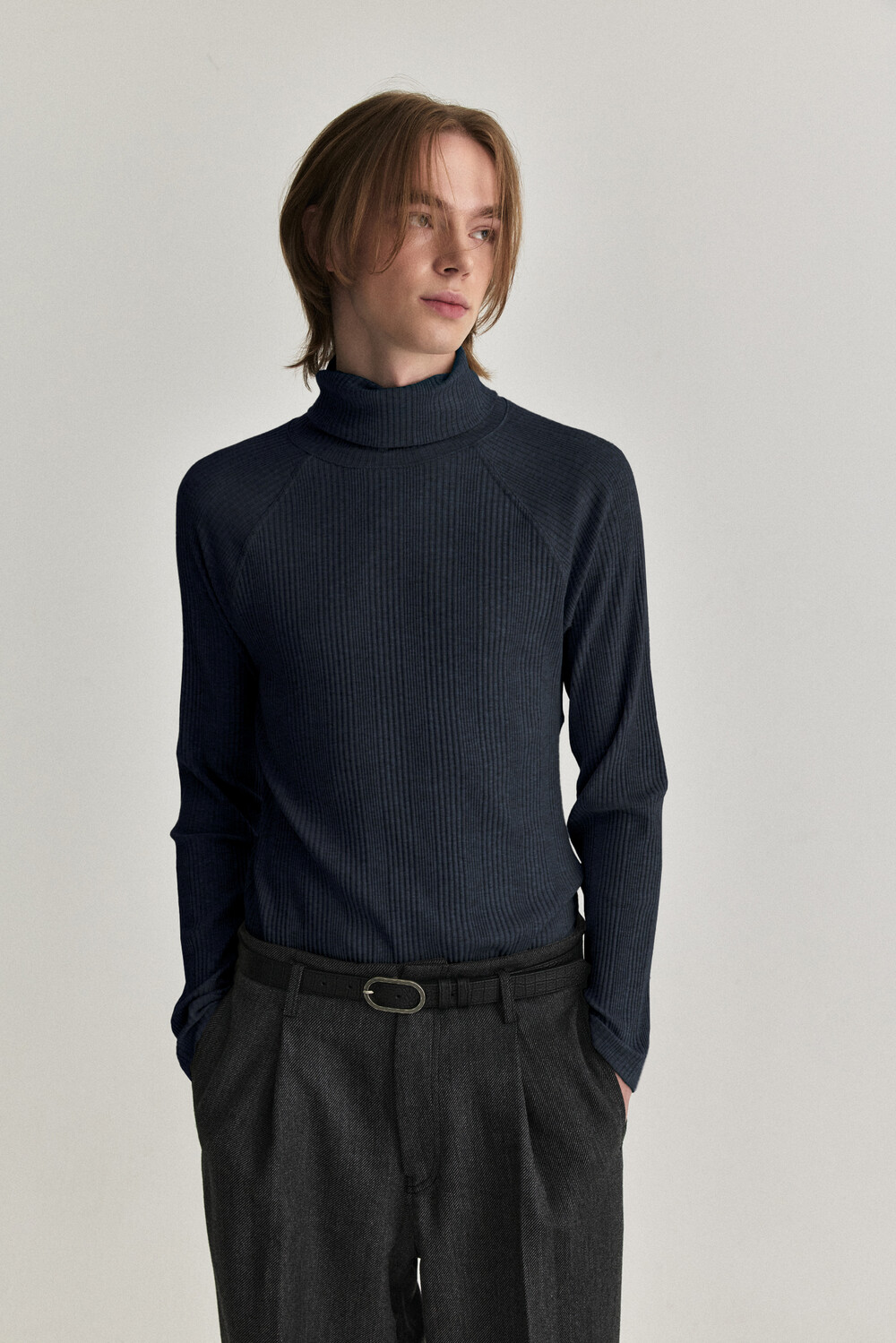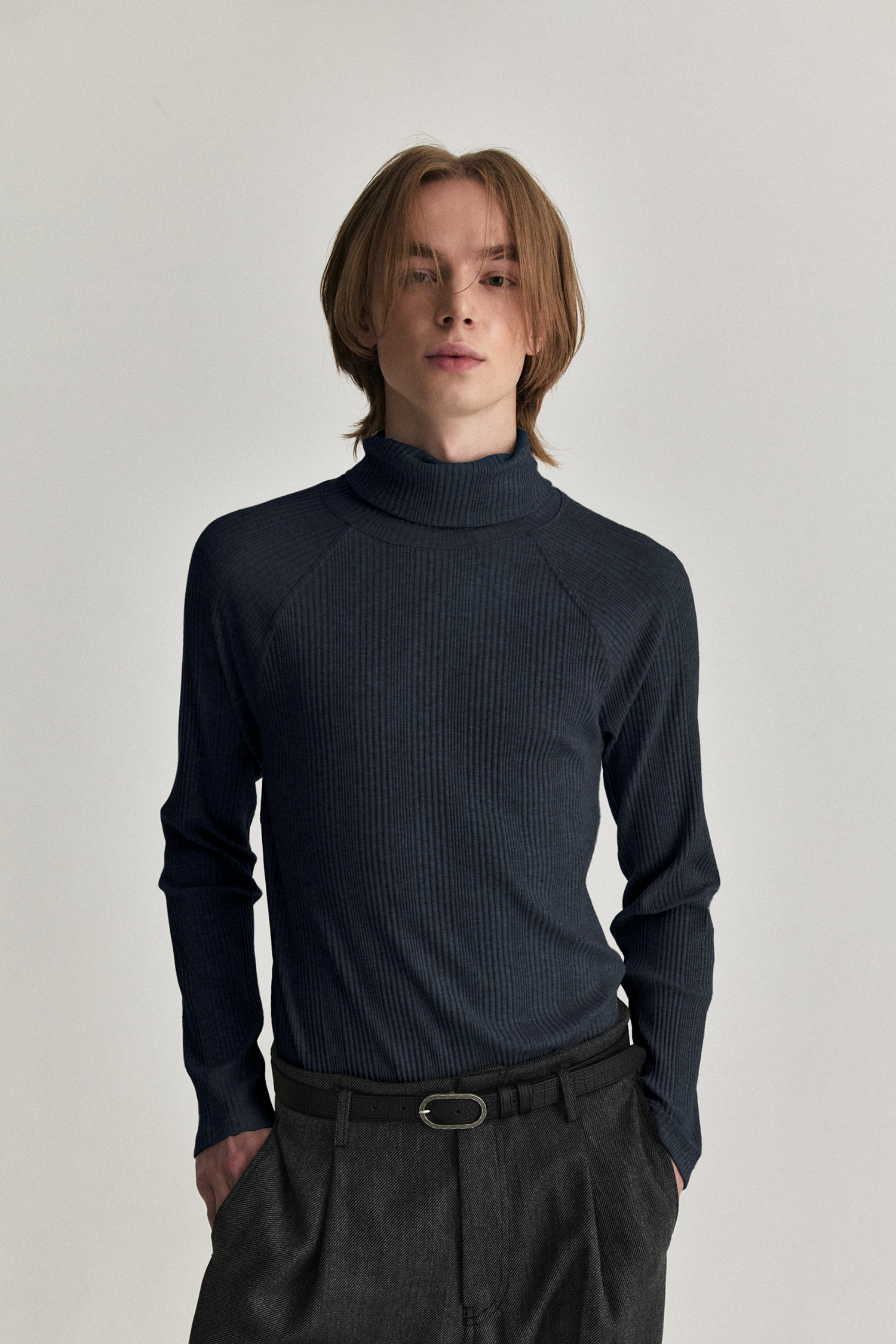 - 코튼 레이온 혼방의 골지 터틀넥 니트