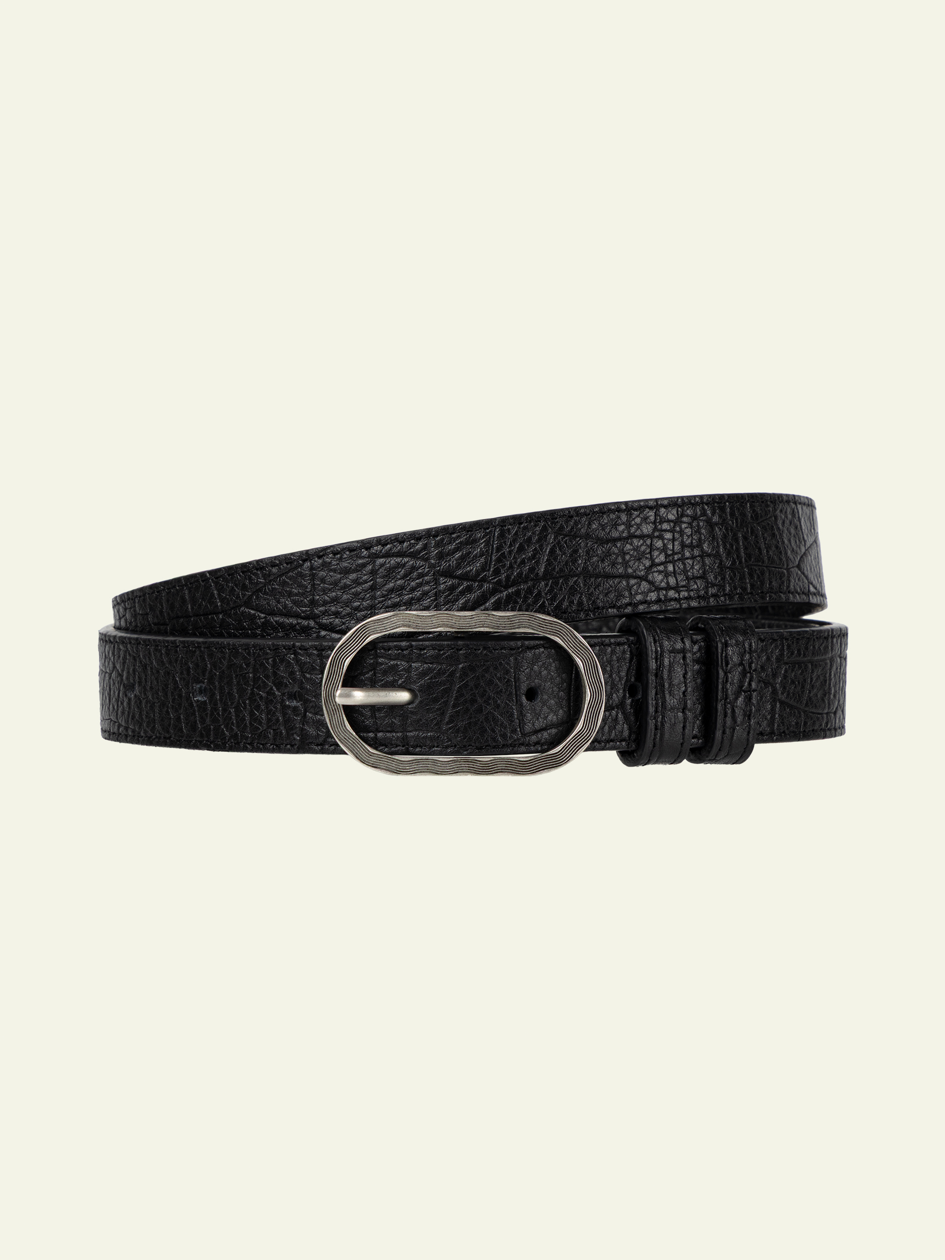 - 타원형의 버클 라인에 웨이브한 라인을 더해 디자인성을 더한 벨트 버클