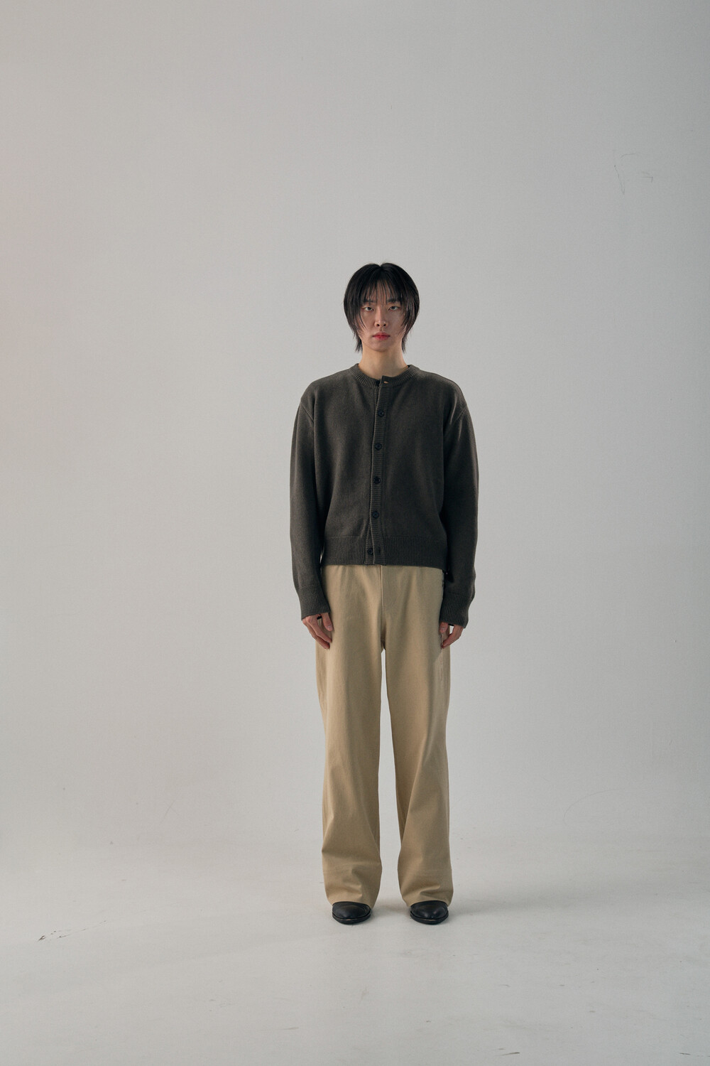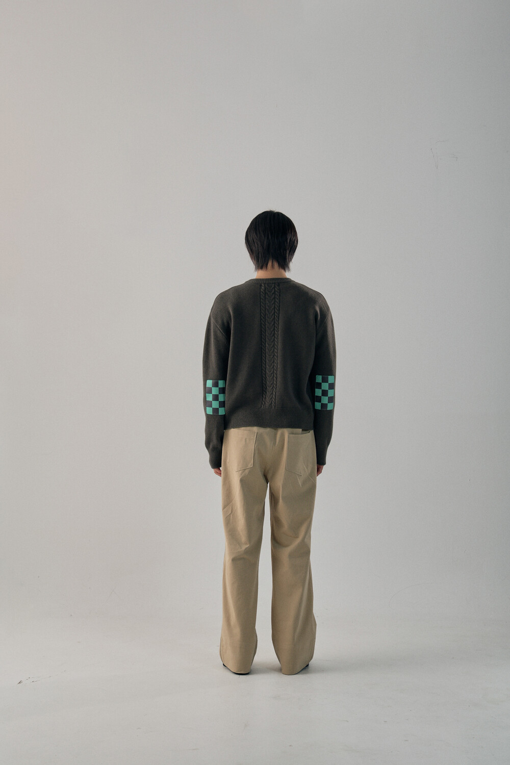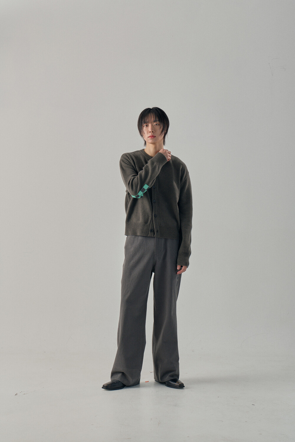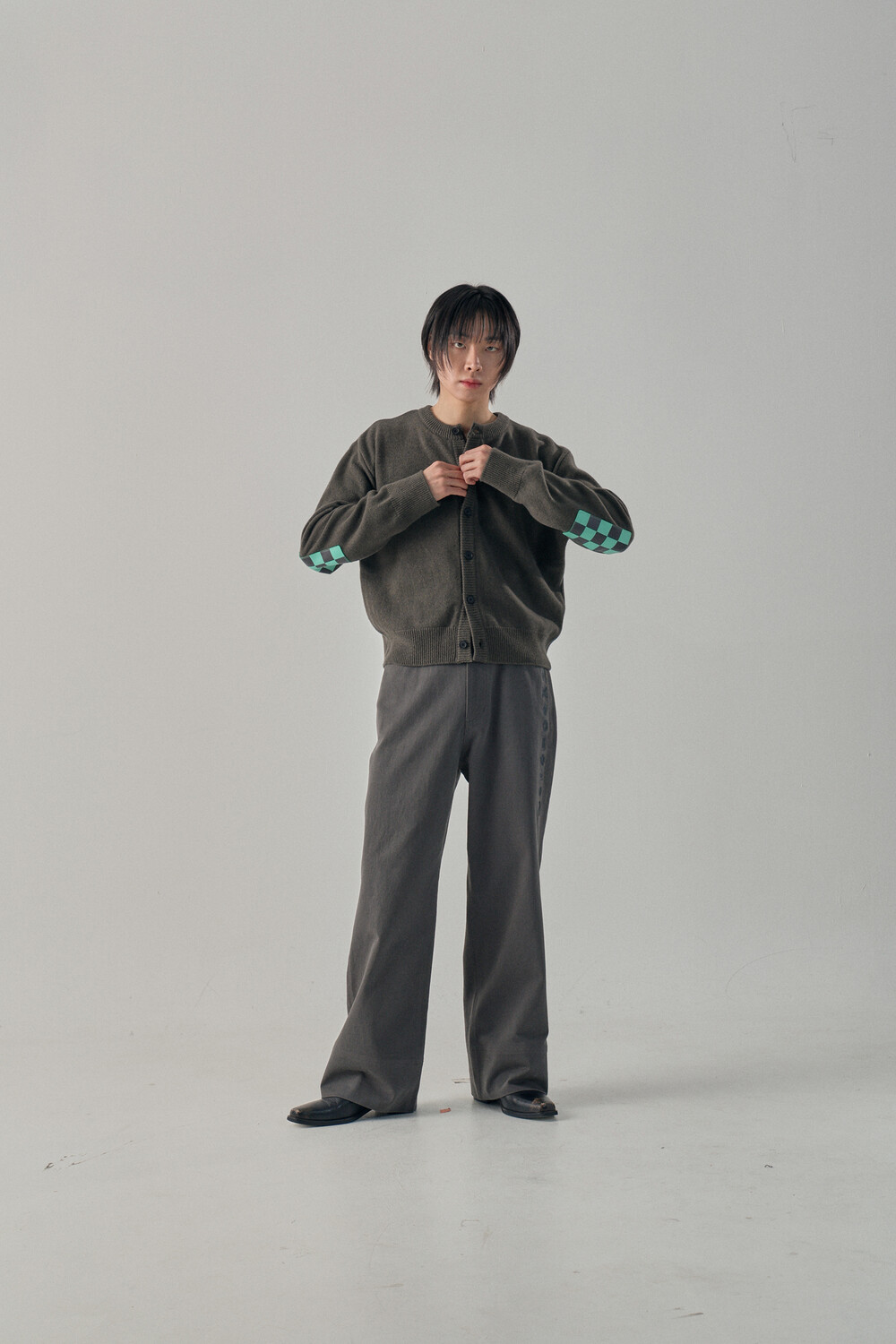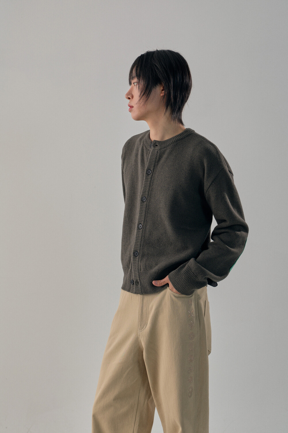 Round-Neck Elbow Leather Patch Cardigan - Tanjiro