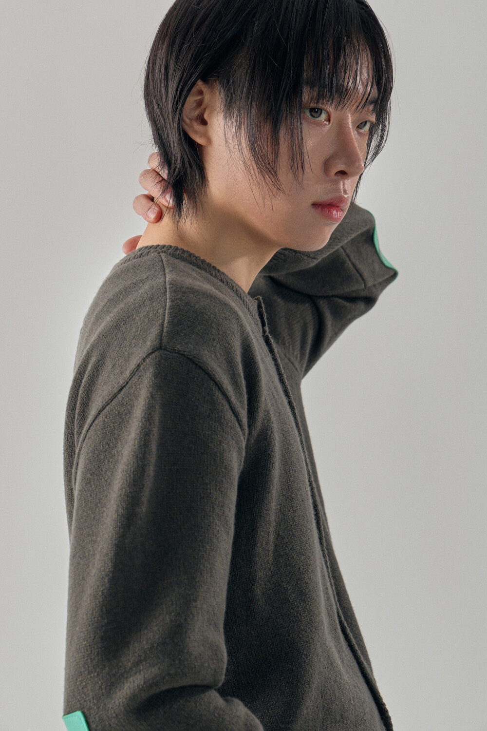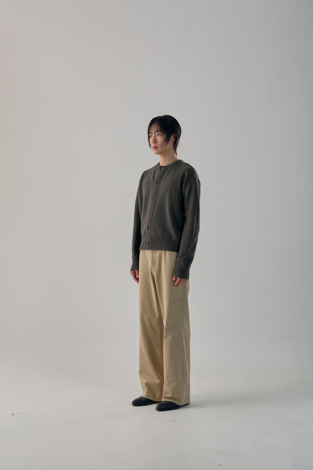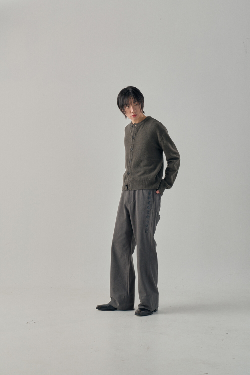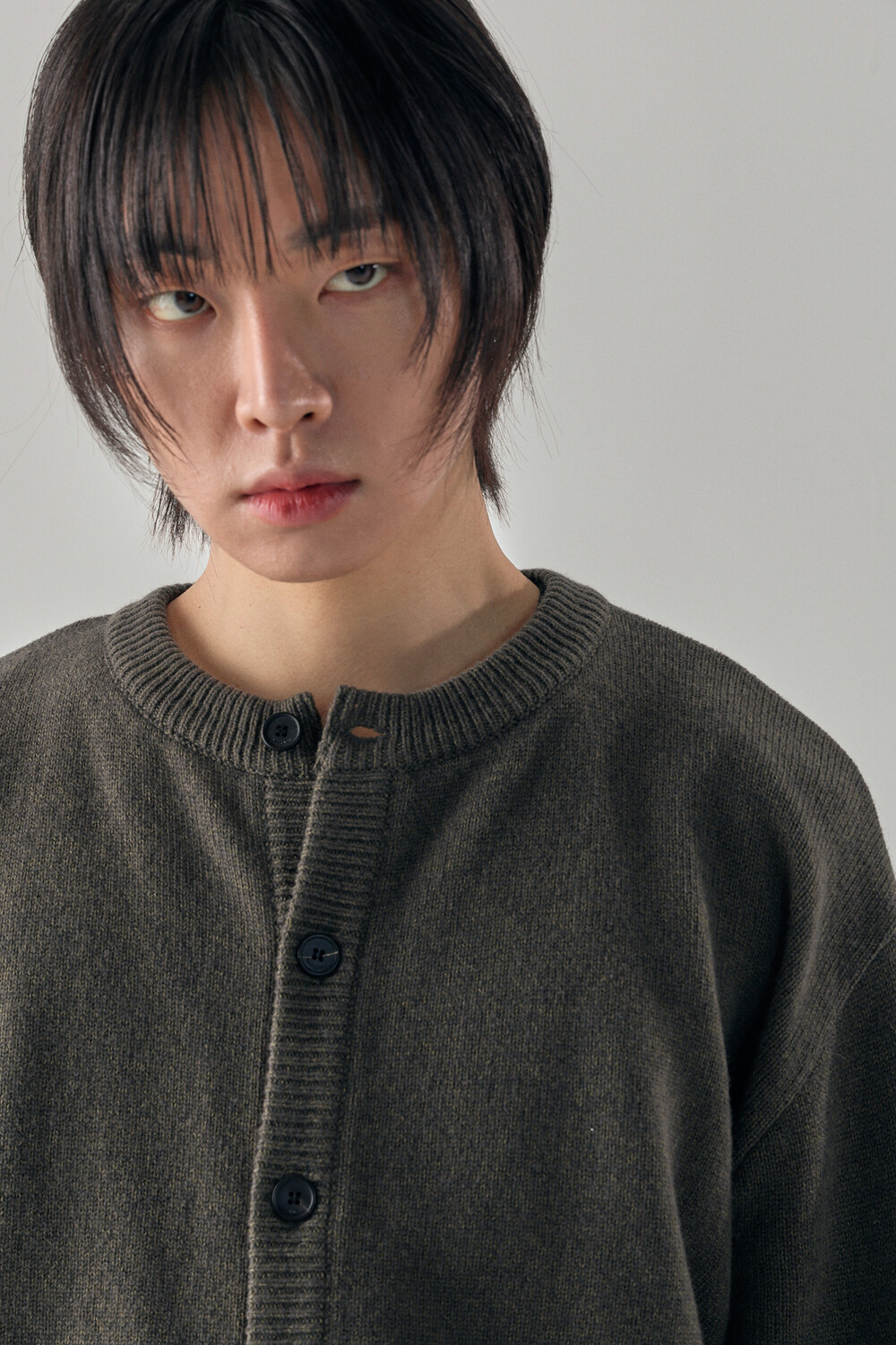 Round-Neck Elbow Leather Patch Cardigan - Tanjiro