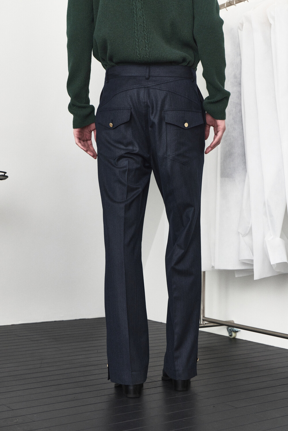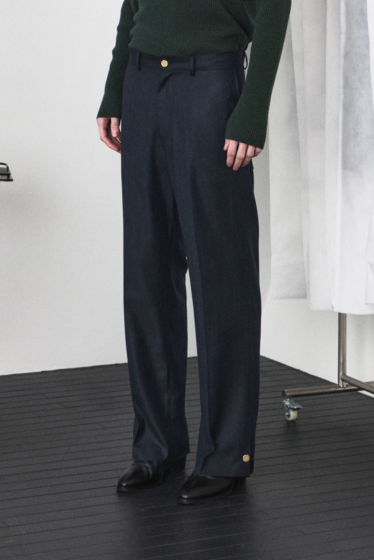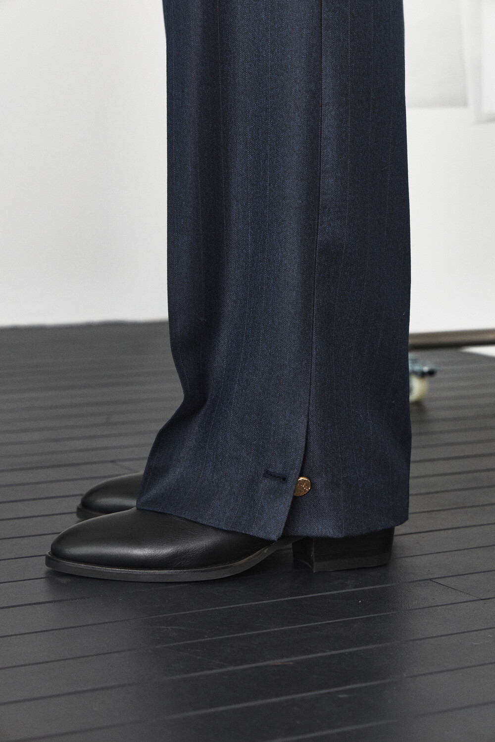 Slit Button Detail Trousers - Navy Stripe