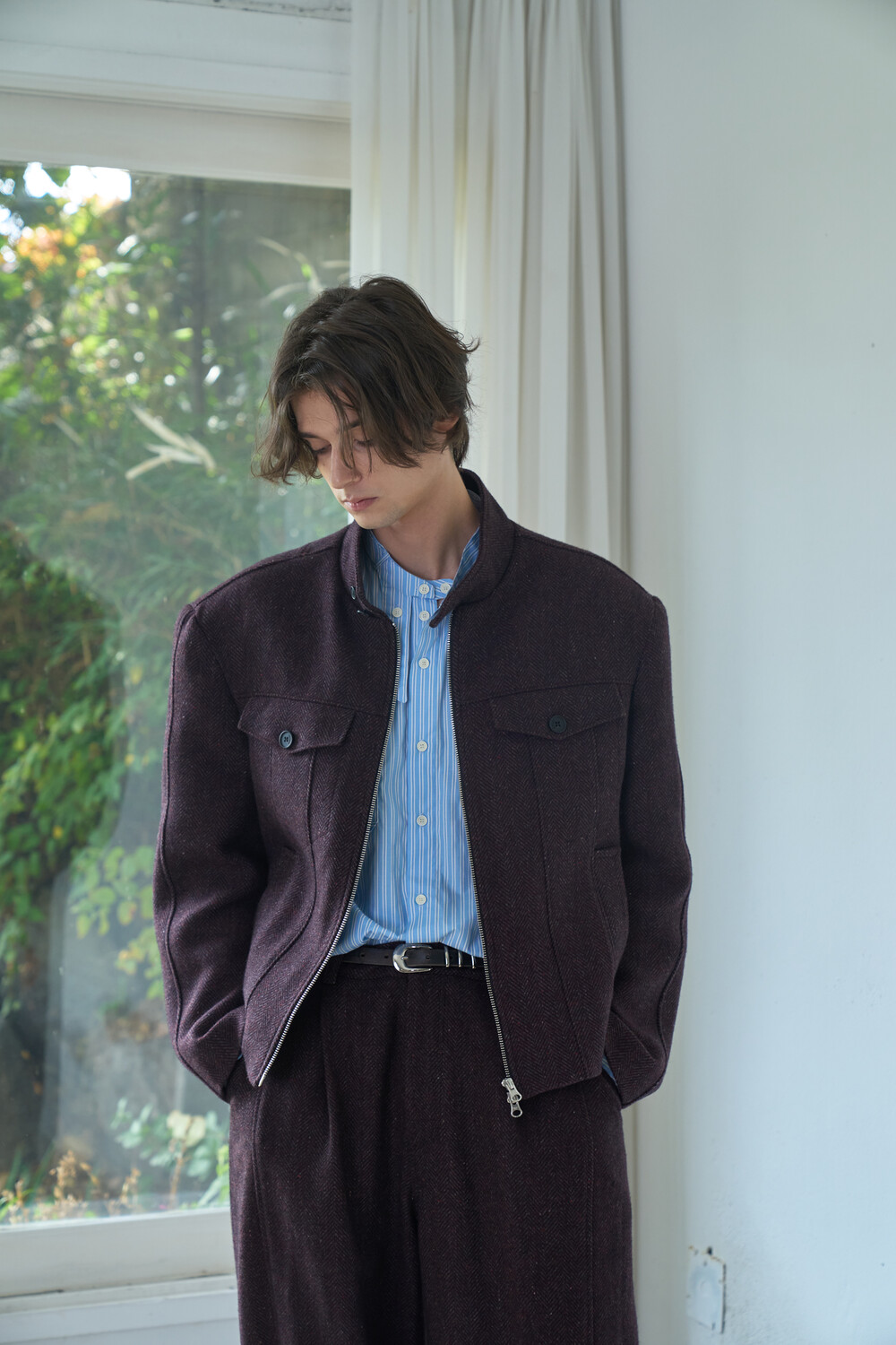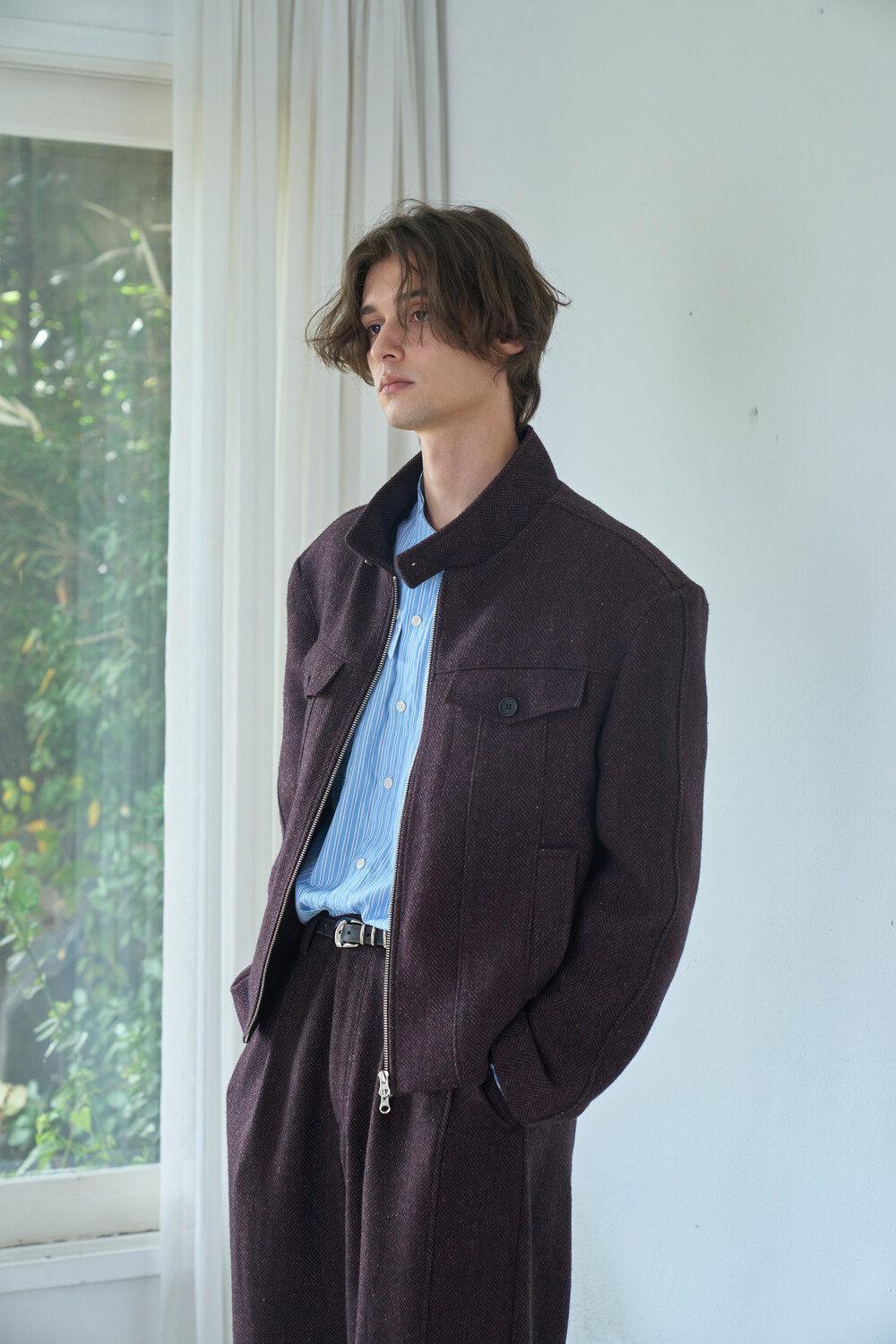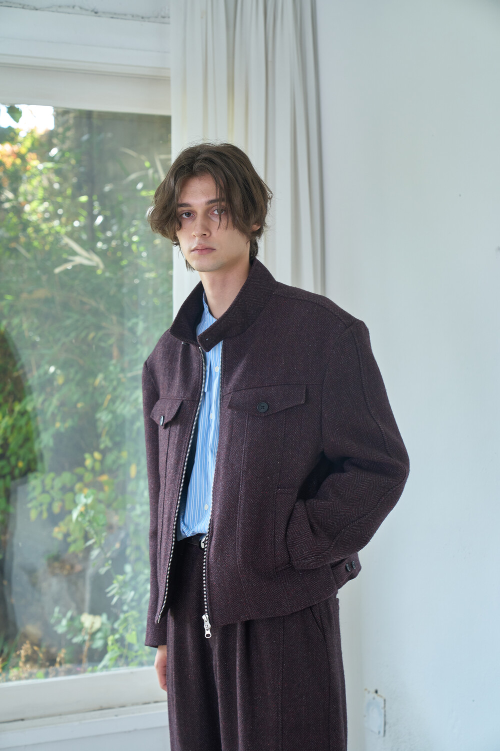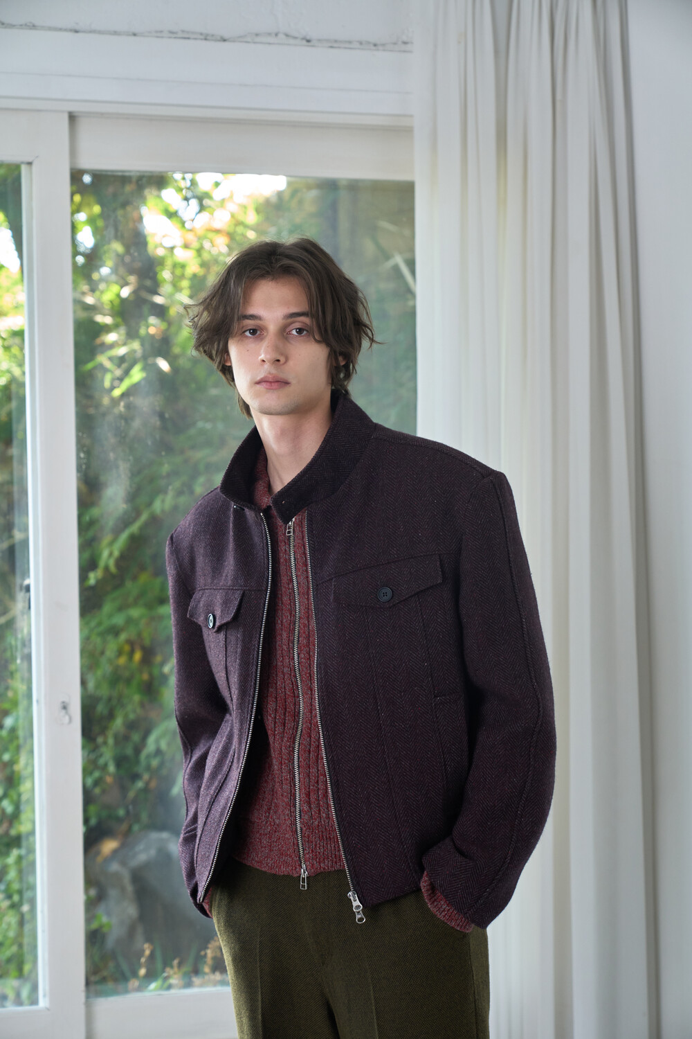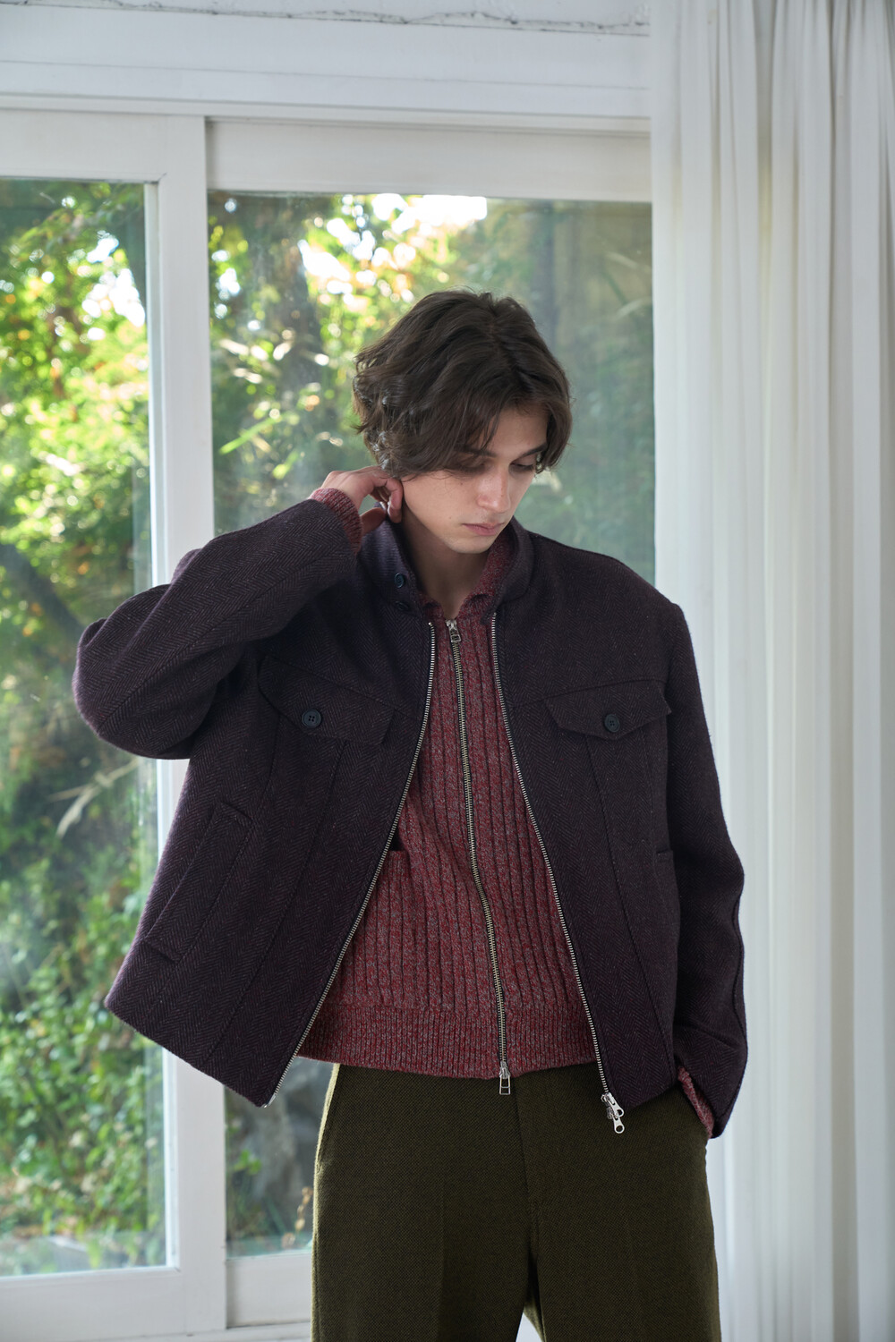 Square Harrington Jacket - Red Herringbone