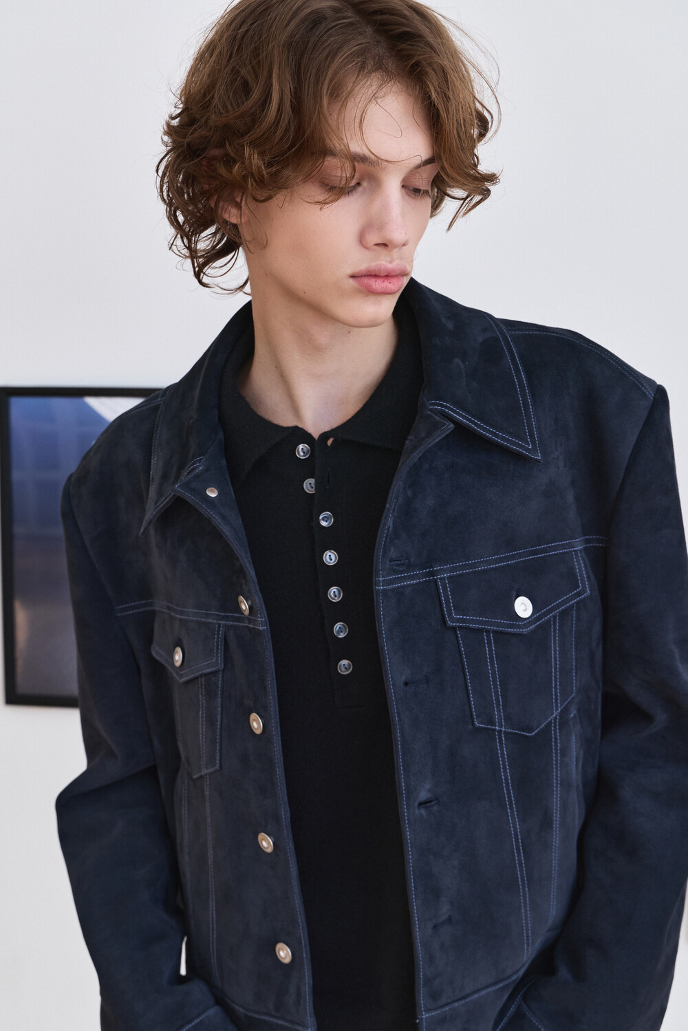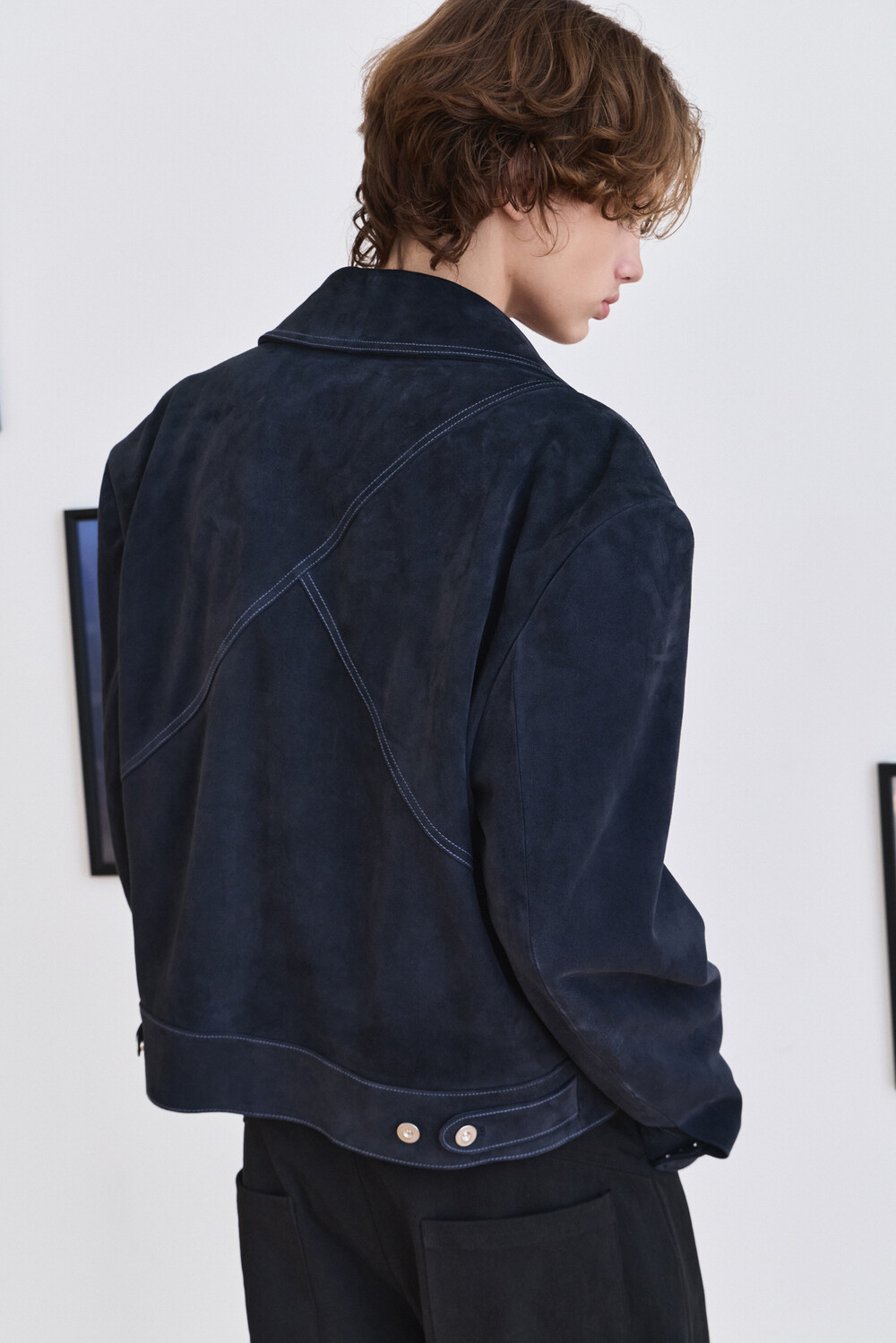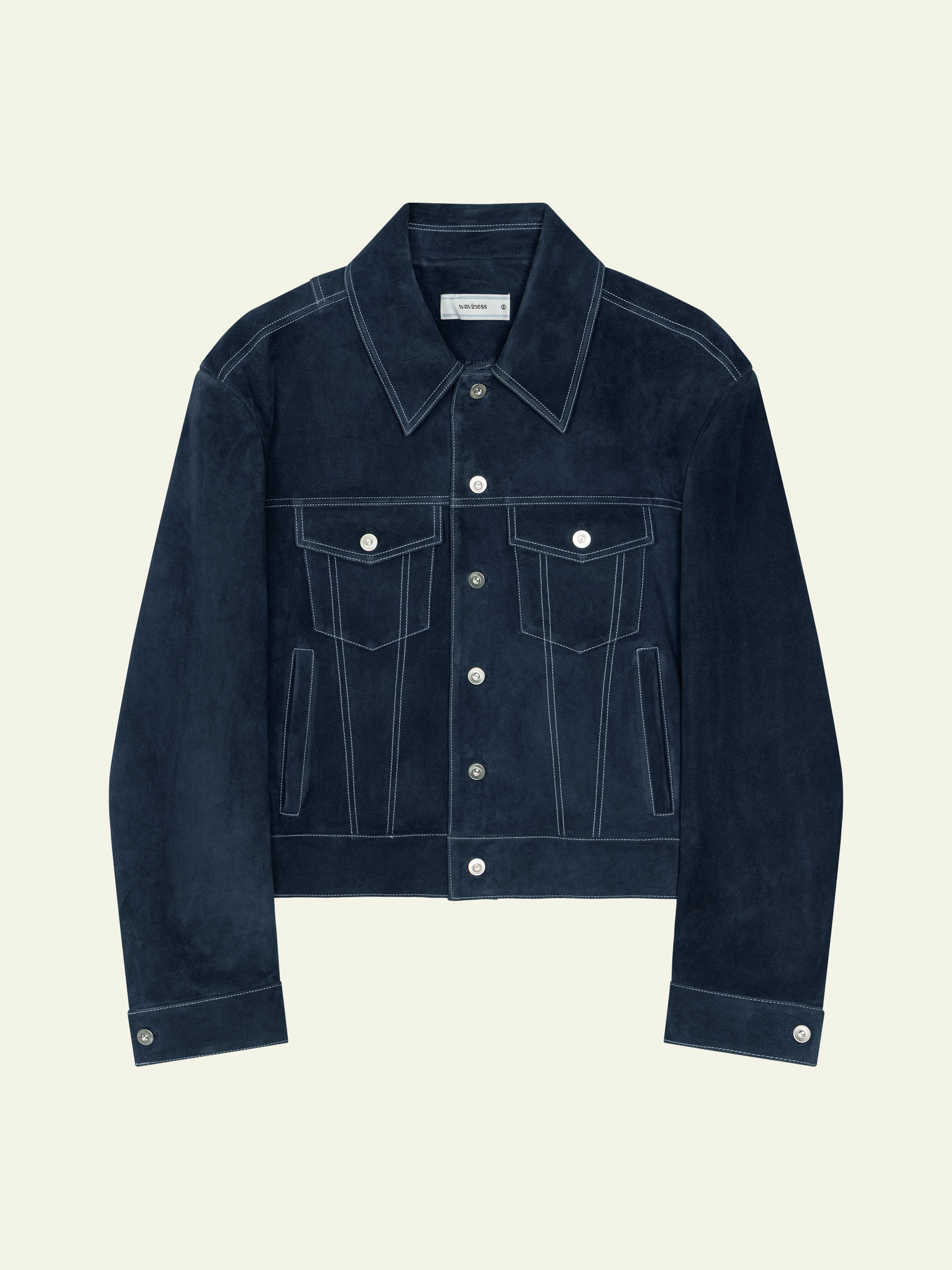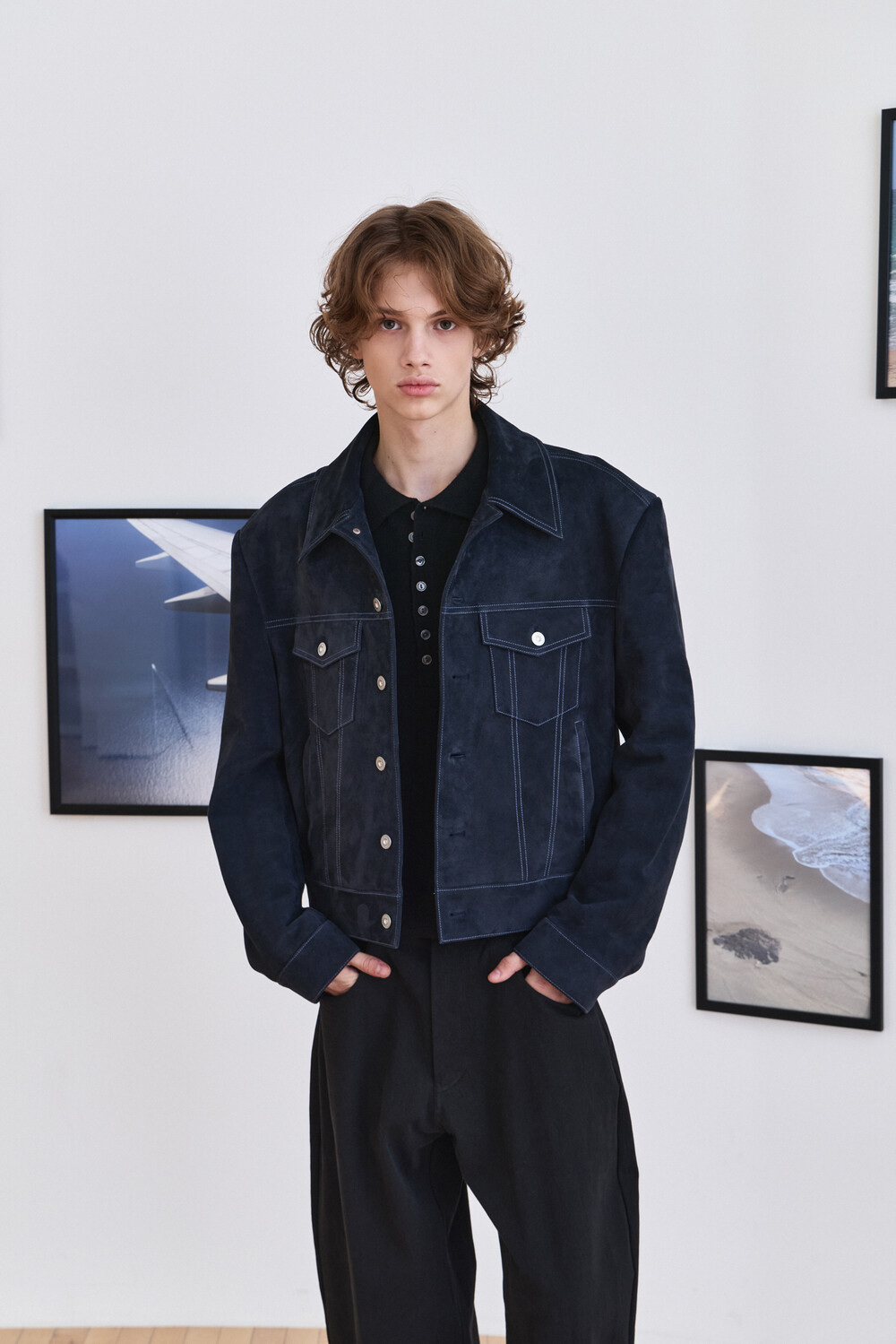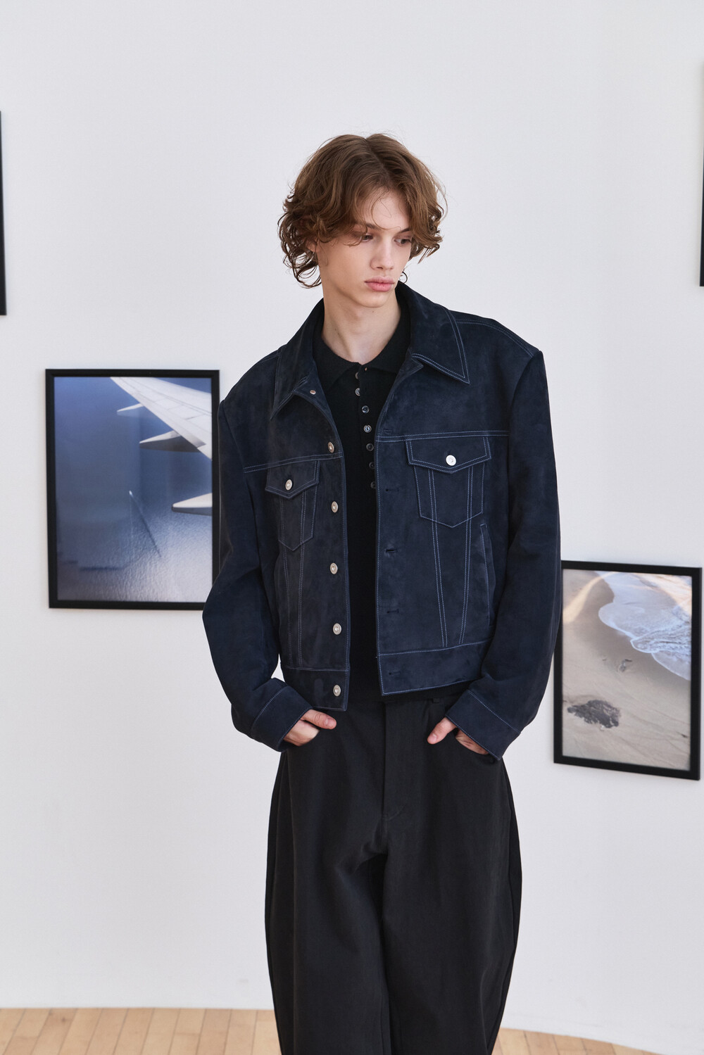 [Flagship Exclusive] Still Crop Suede Trucker Jacket - Graphite Navy