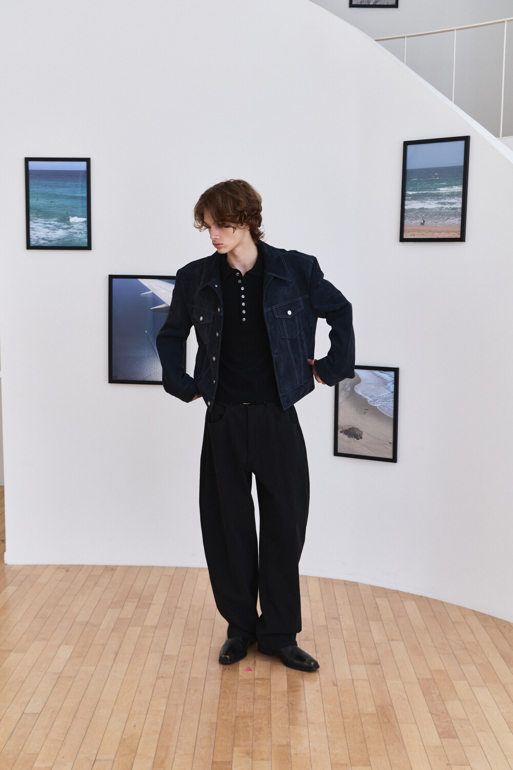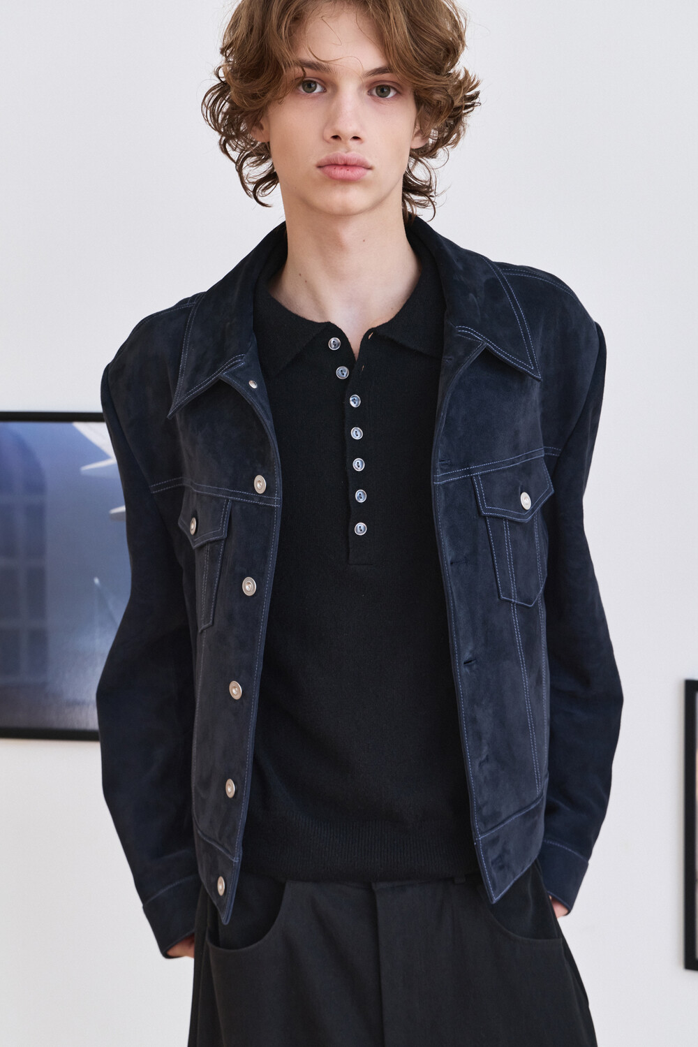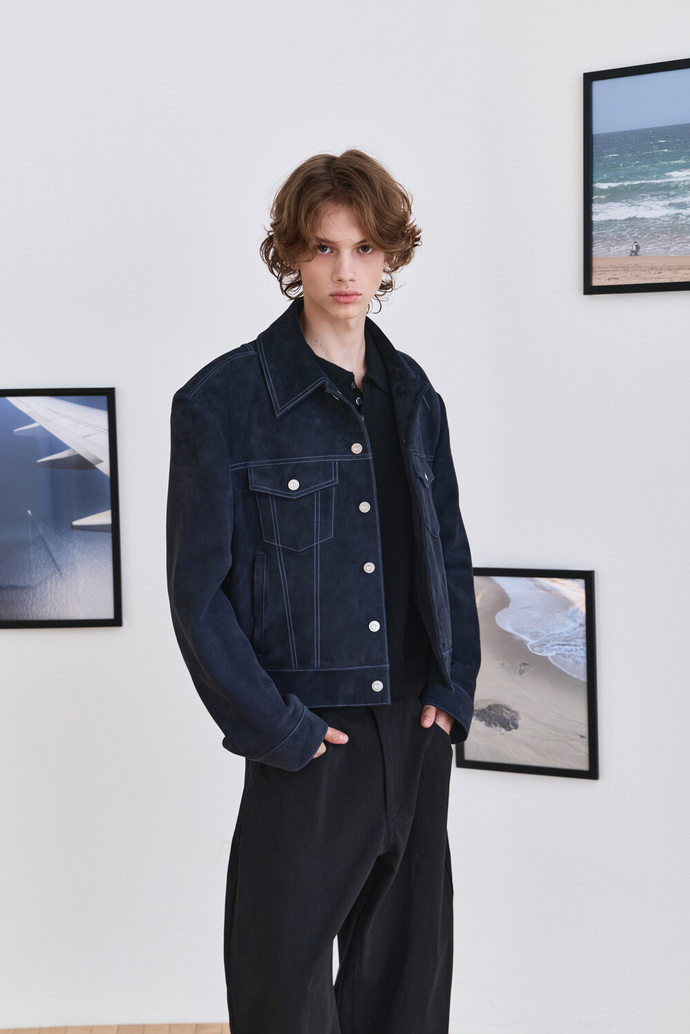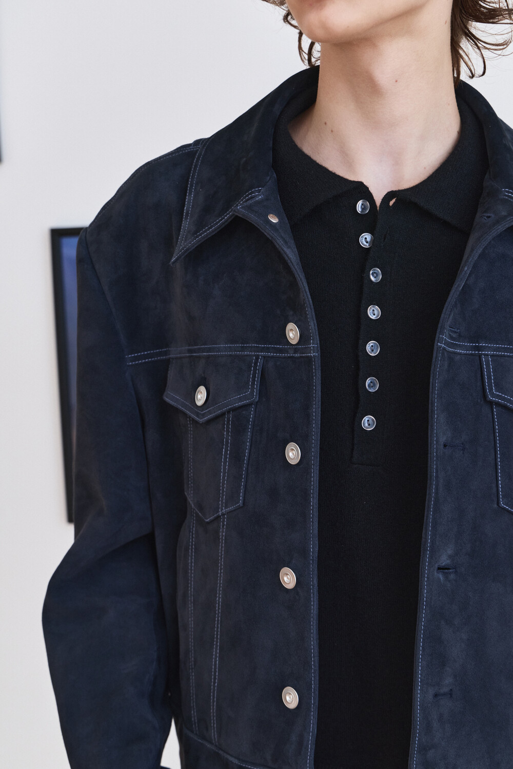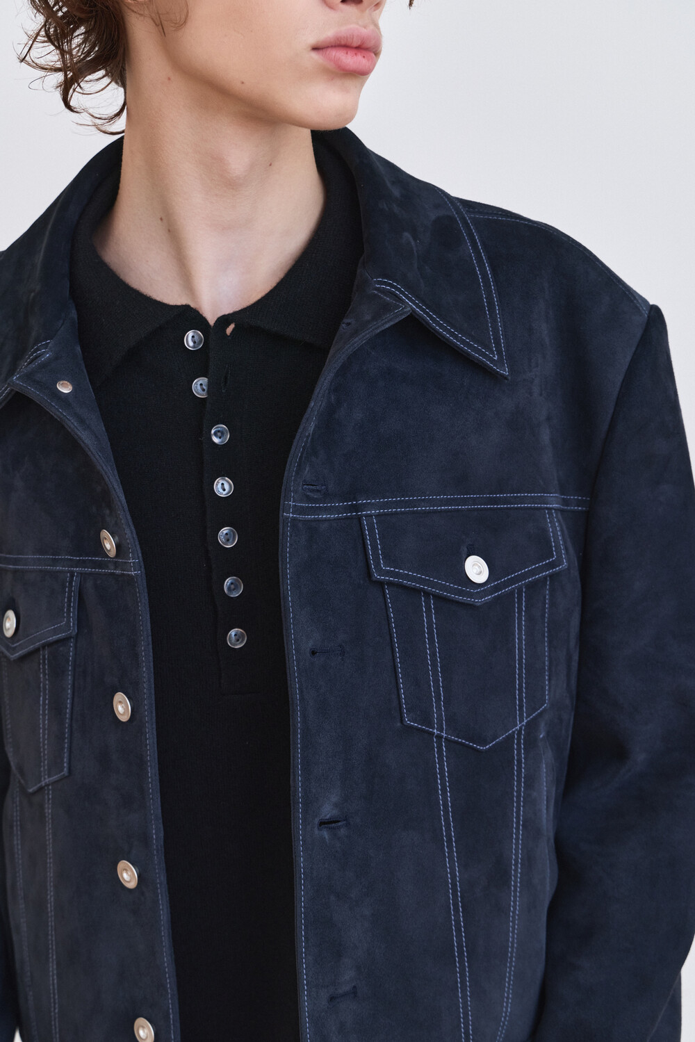 [Flagship Exclusive] Still Crop Suede Trucker Jacket - Graphite Navy