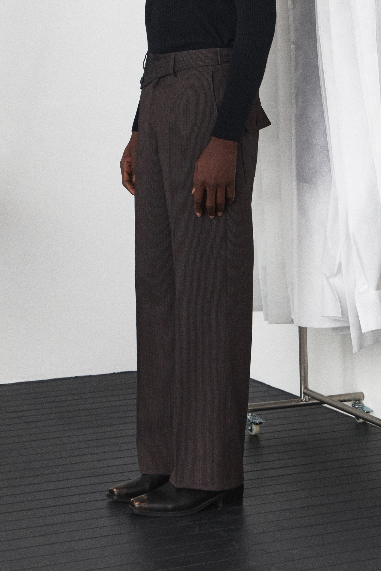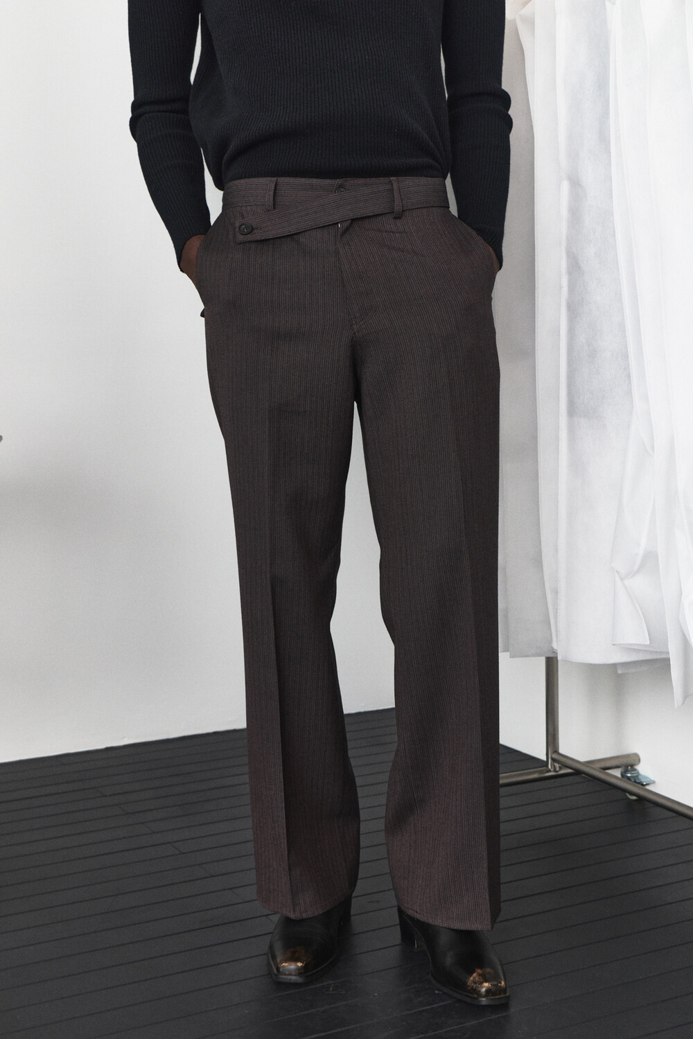 Stripe Wrap Detail Trousers - Ember Brown