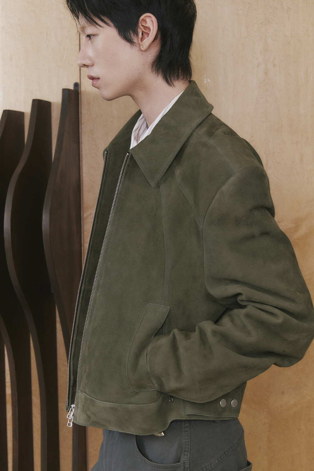 Surge Crop Suede Jacket - Green
