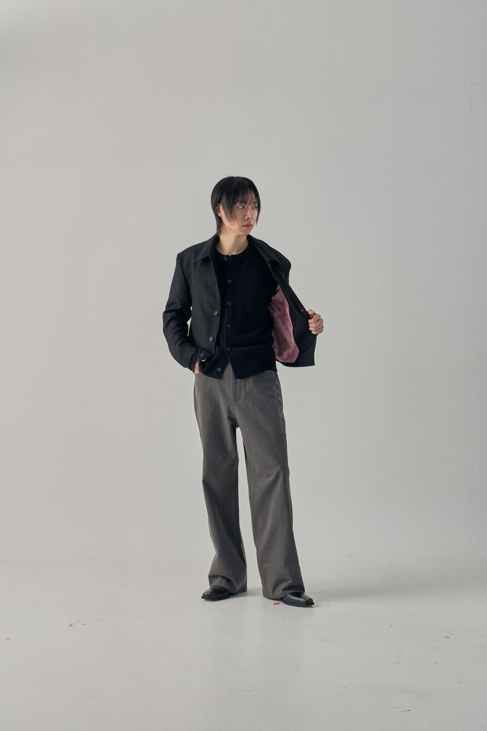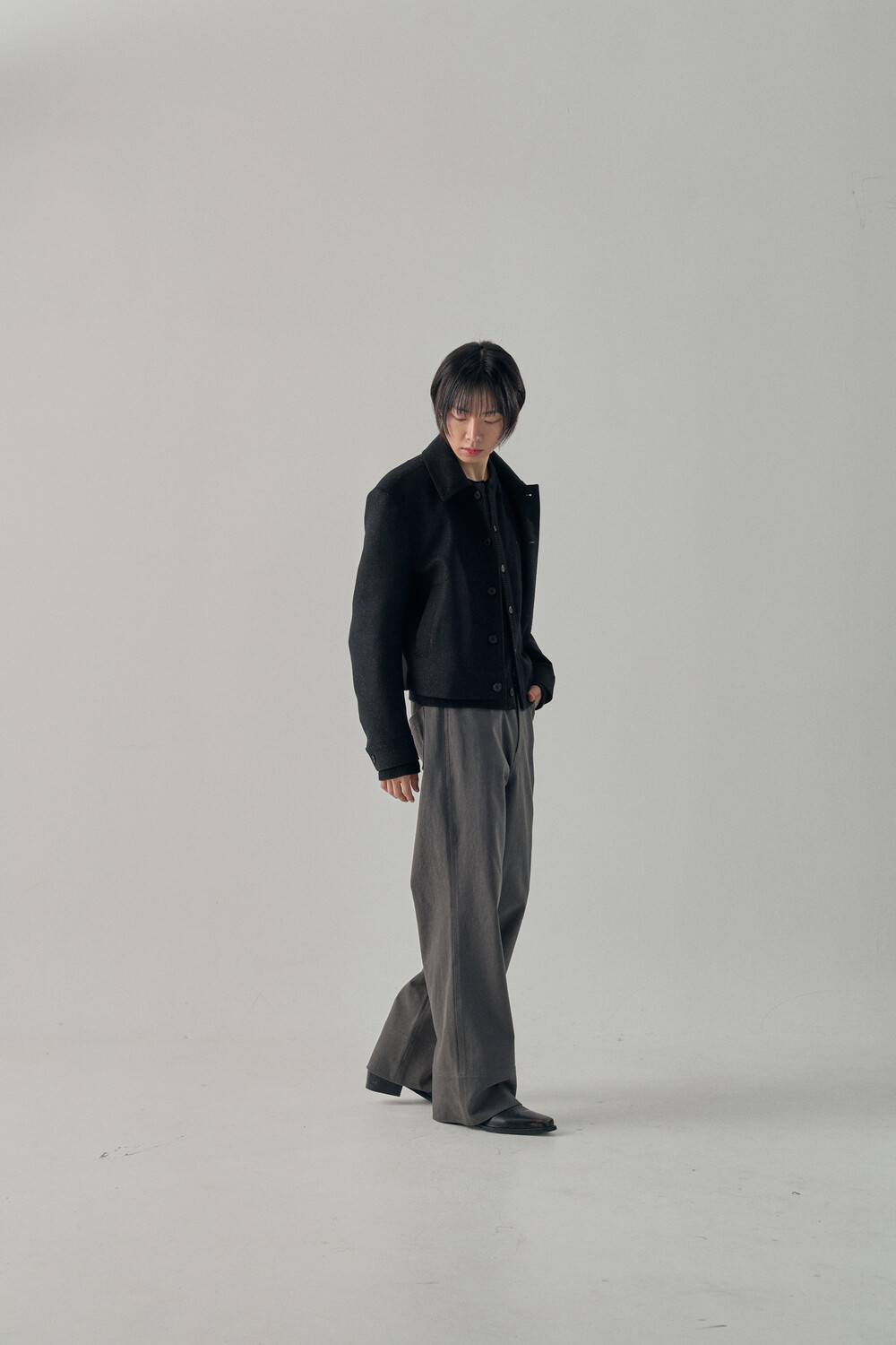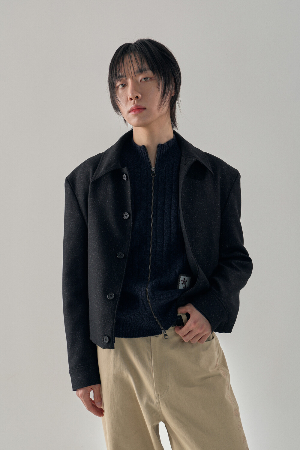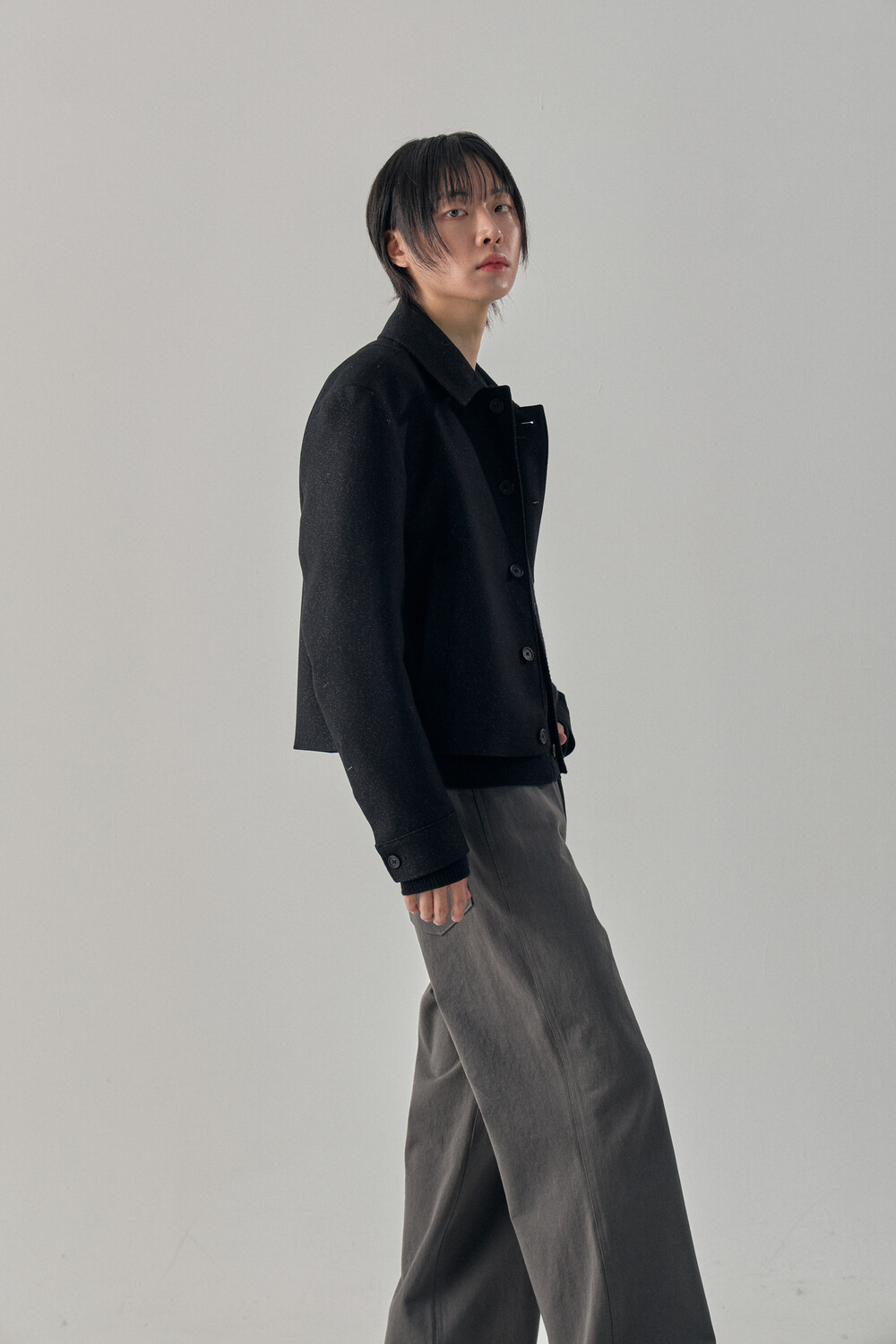 Tweed Texture Wool Crop Jacket - Nezuko