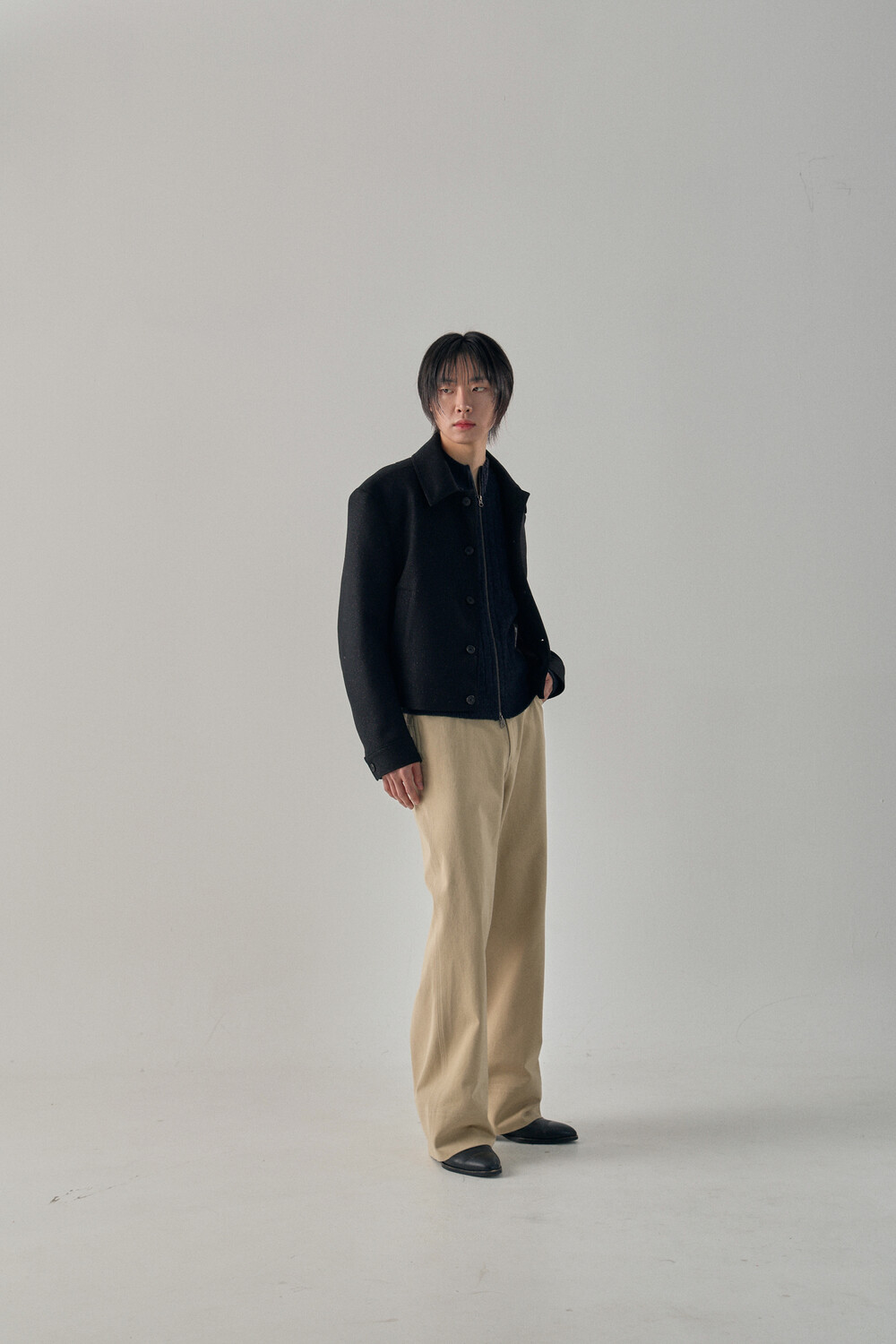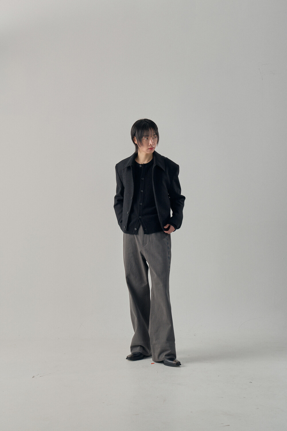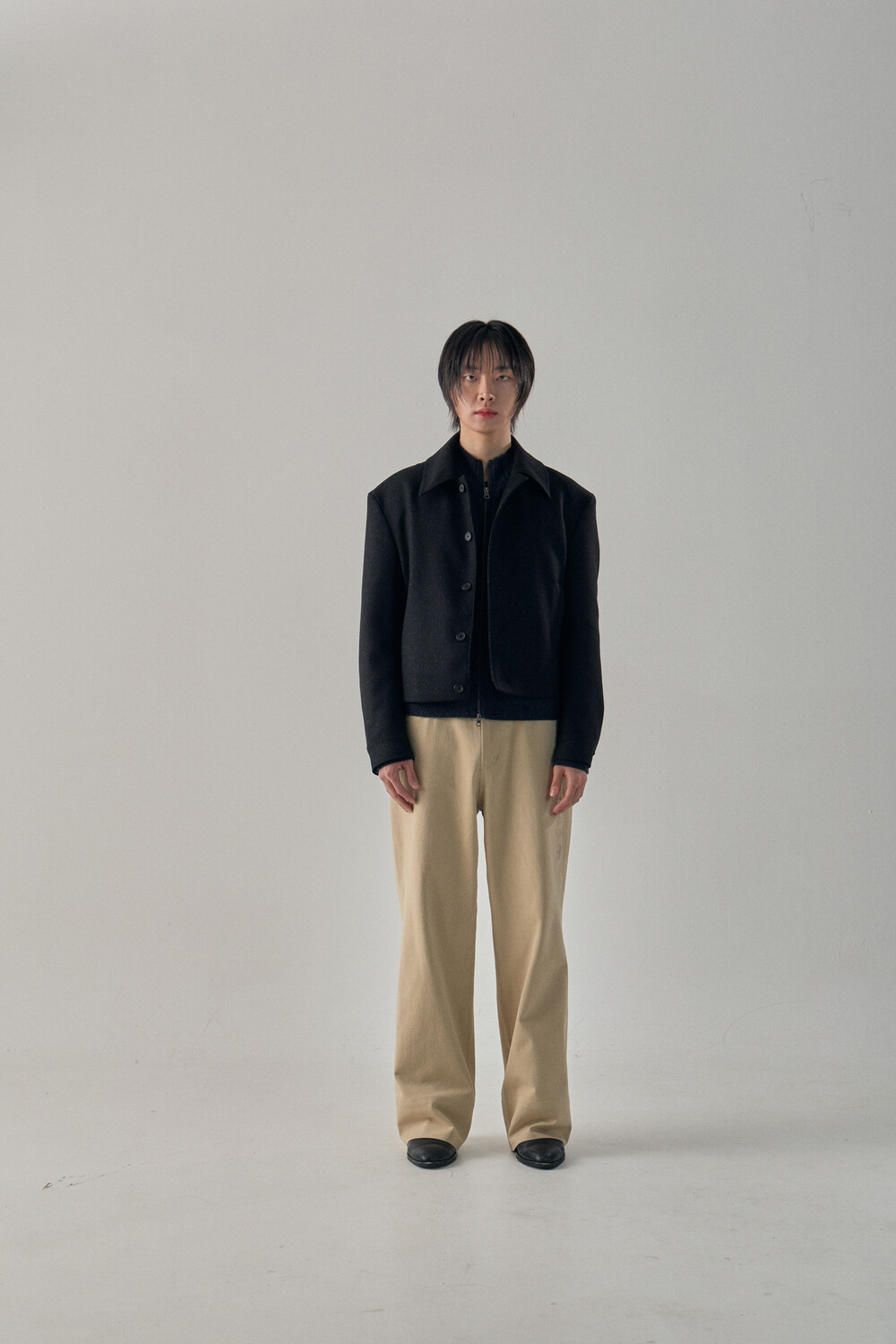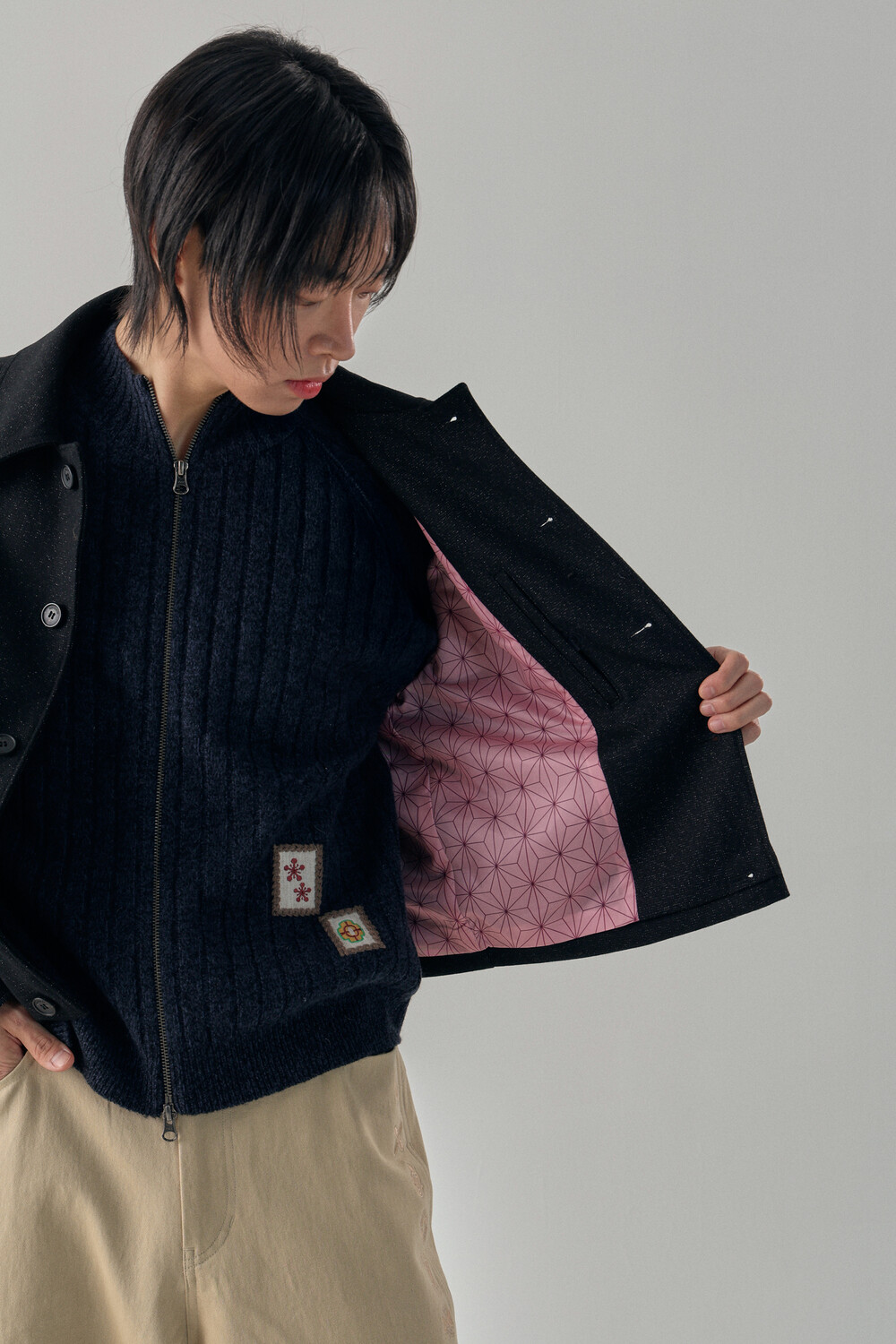 Tweed Texture Wool Crop Jacket - Nezuko