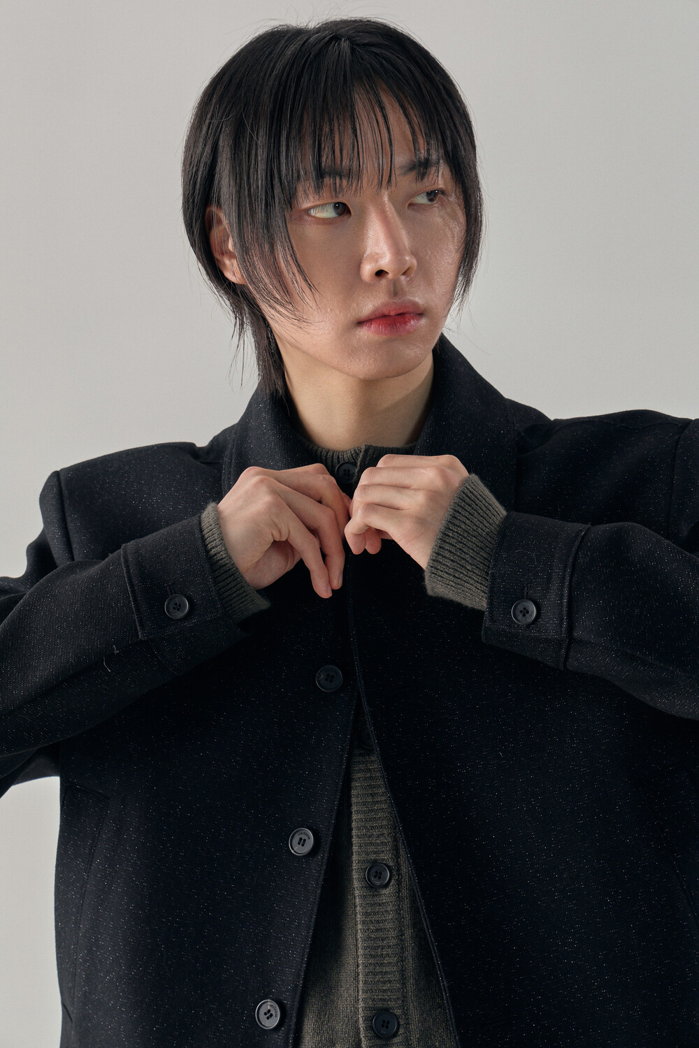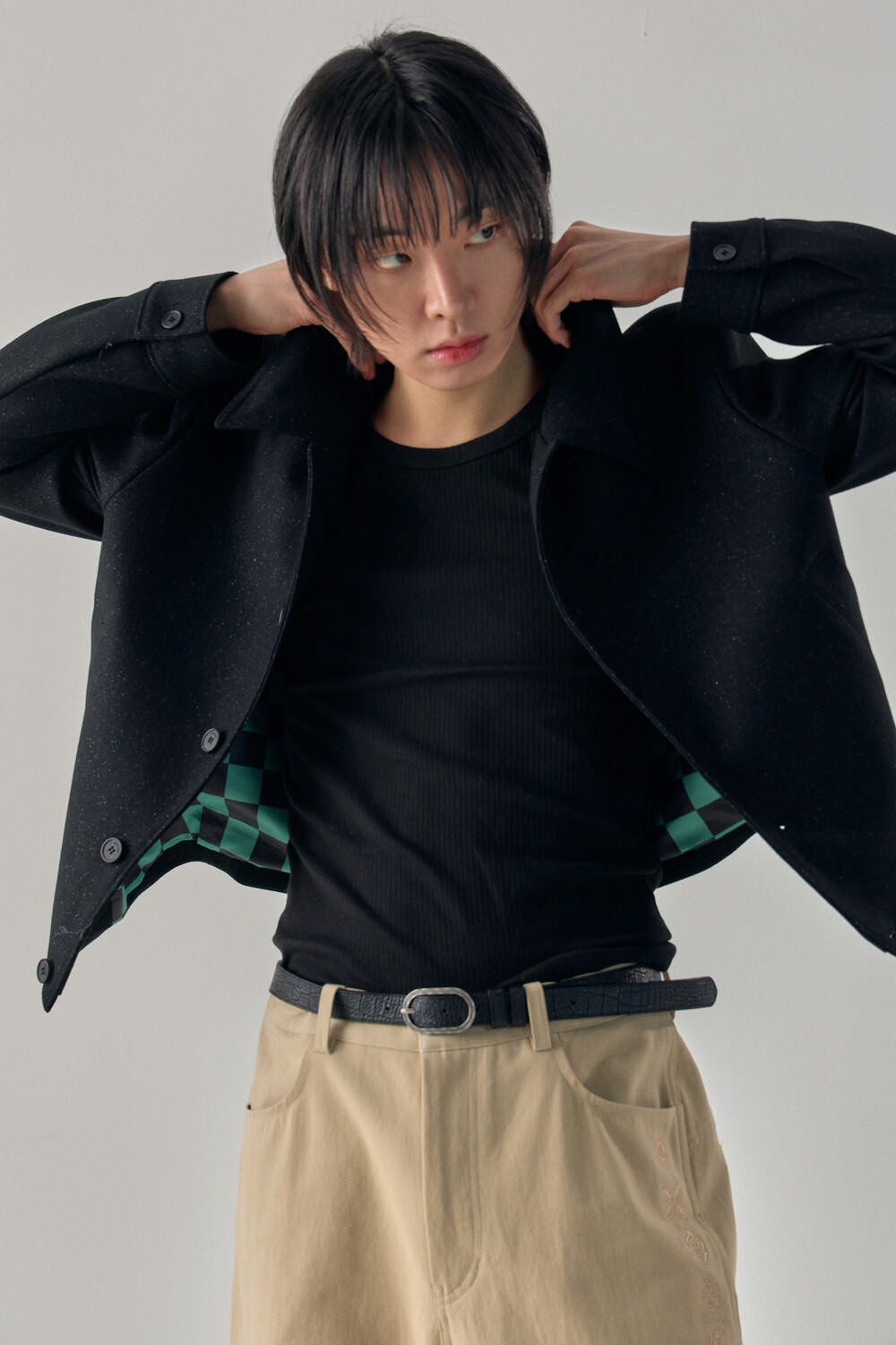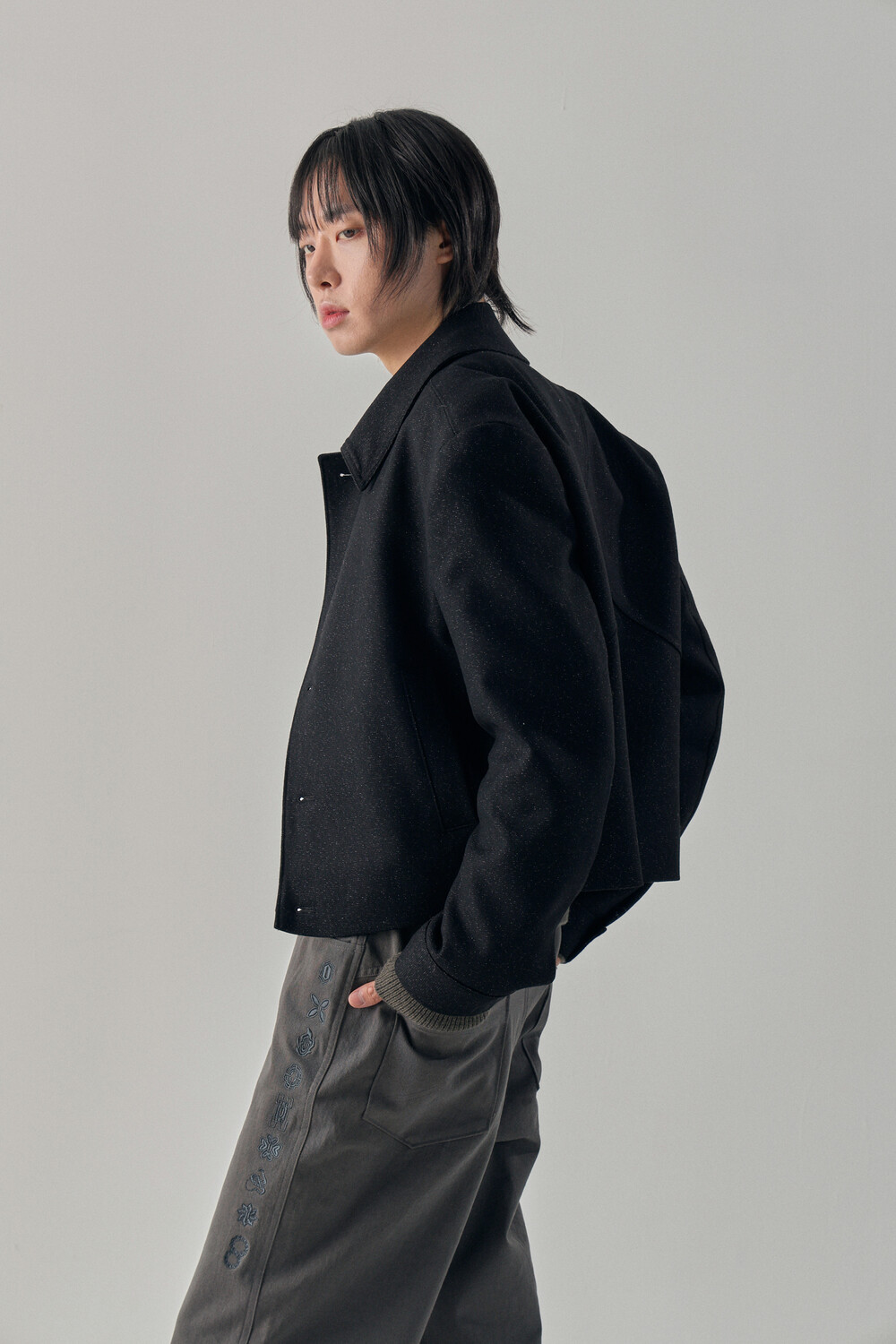 Tweed Texture Wool Crop Jacket - Tanjiro
