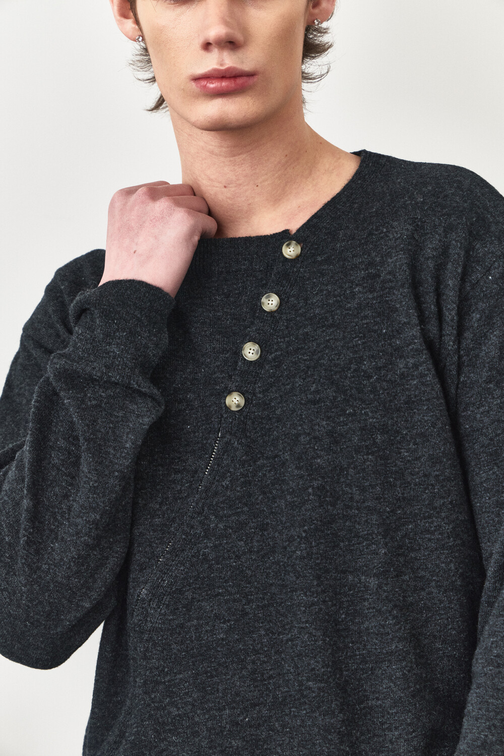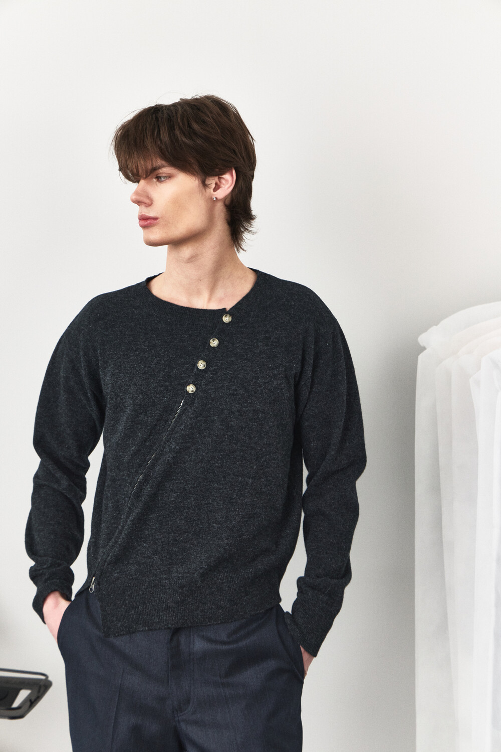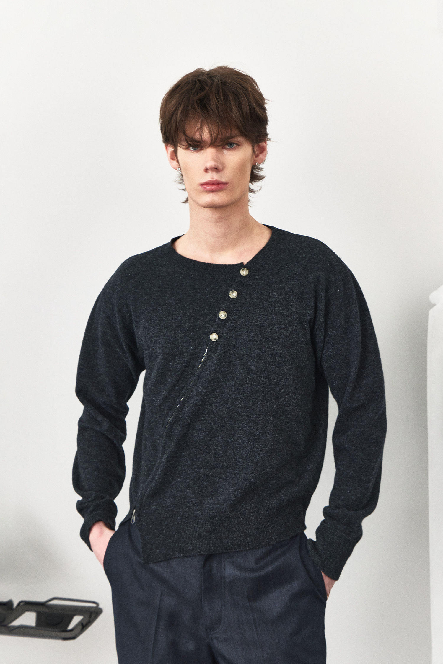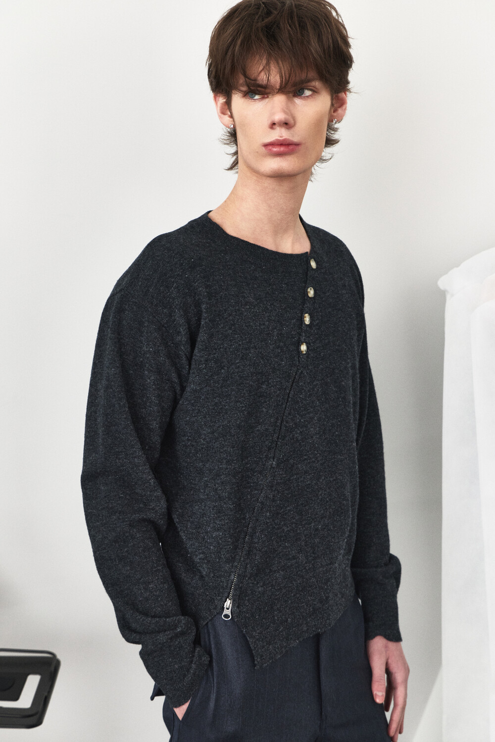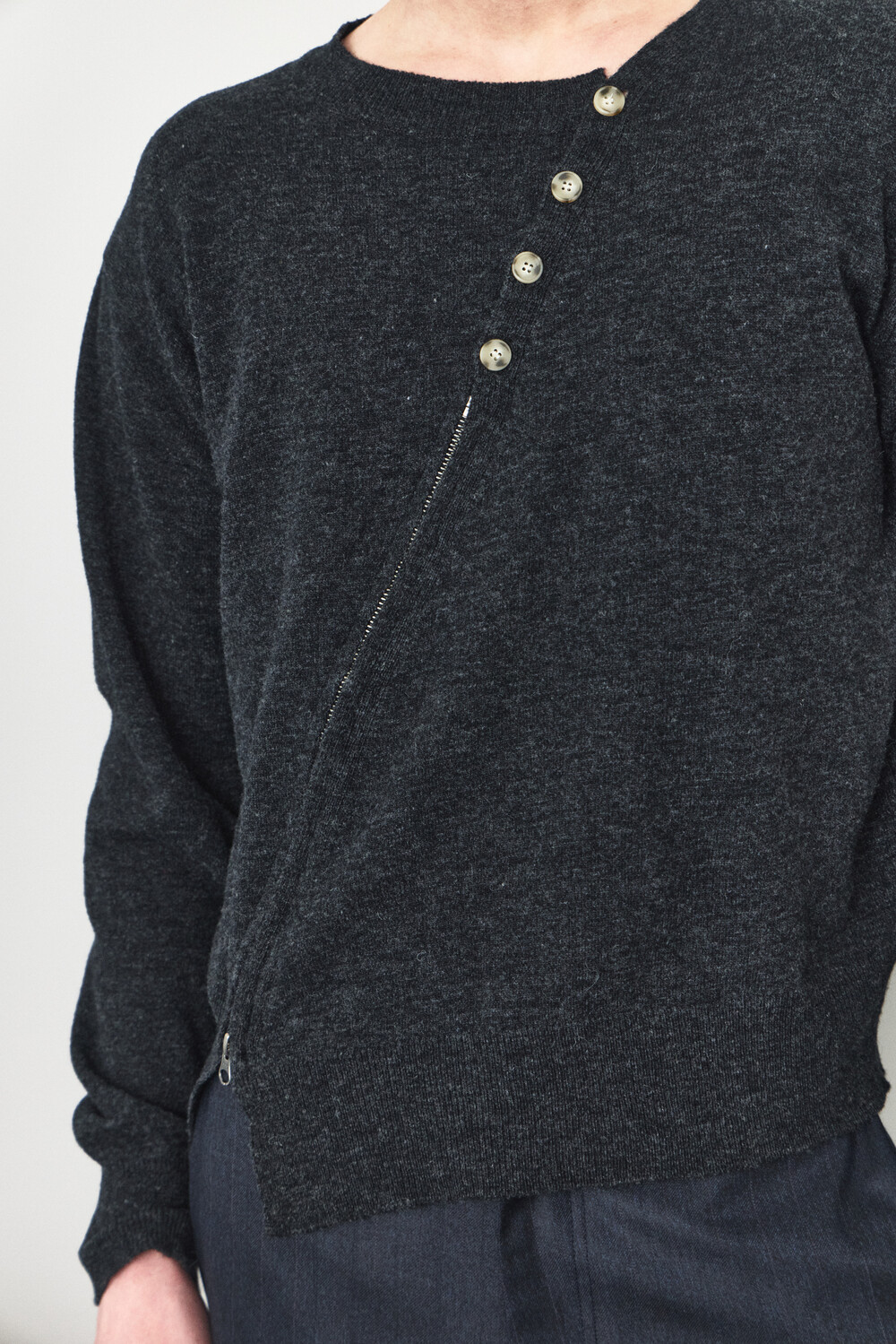Twisted Button Zip-Up Knit - Charcoal