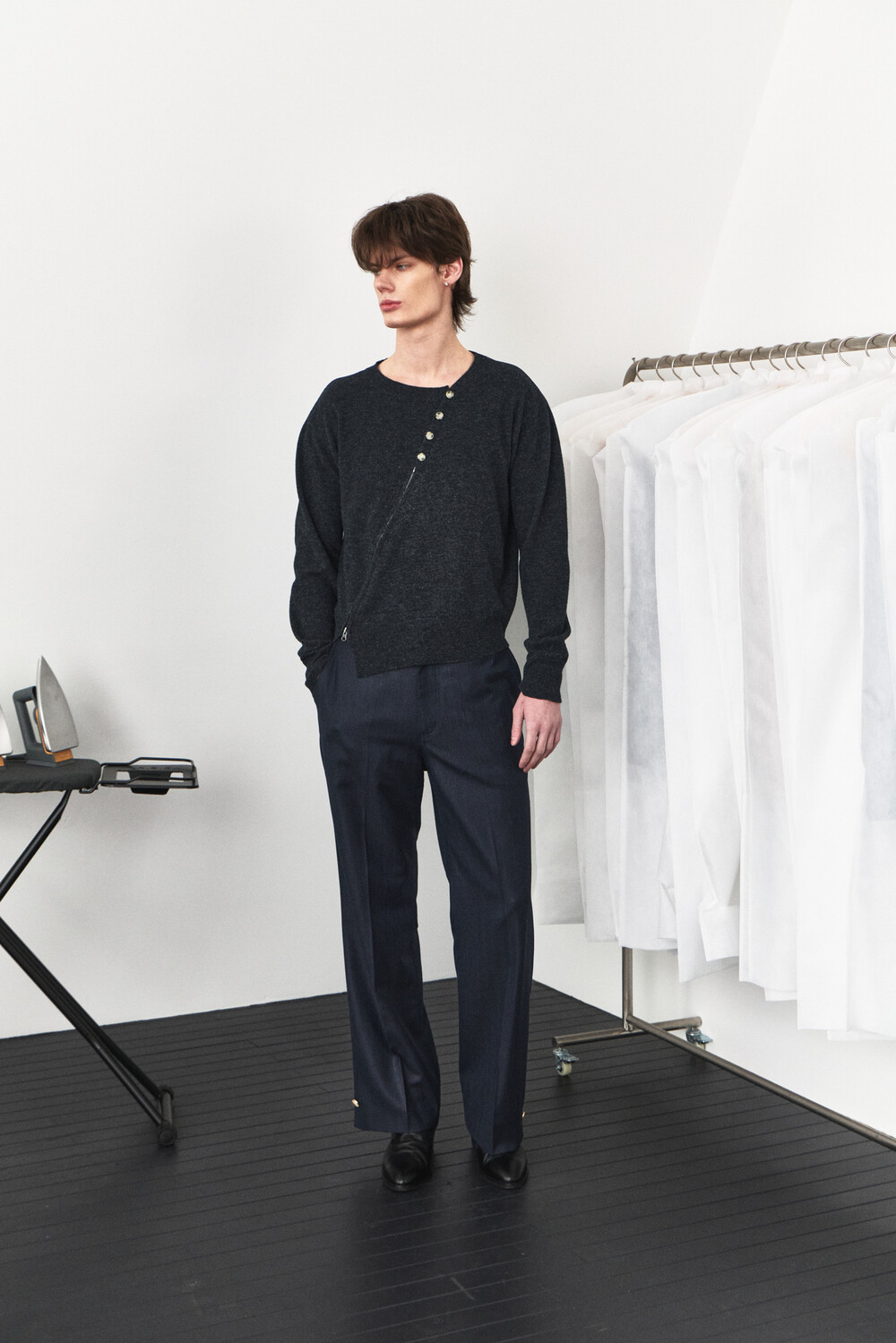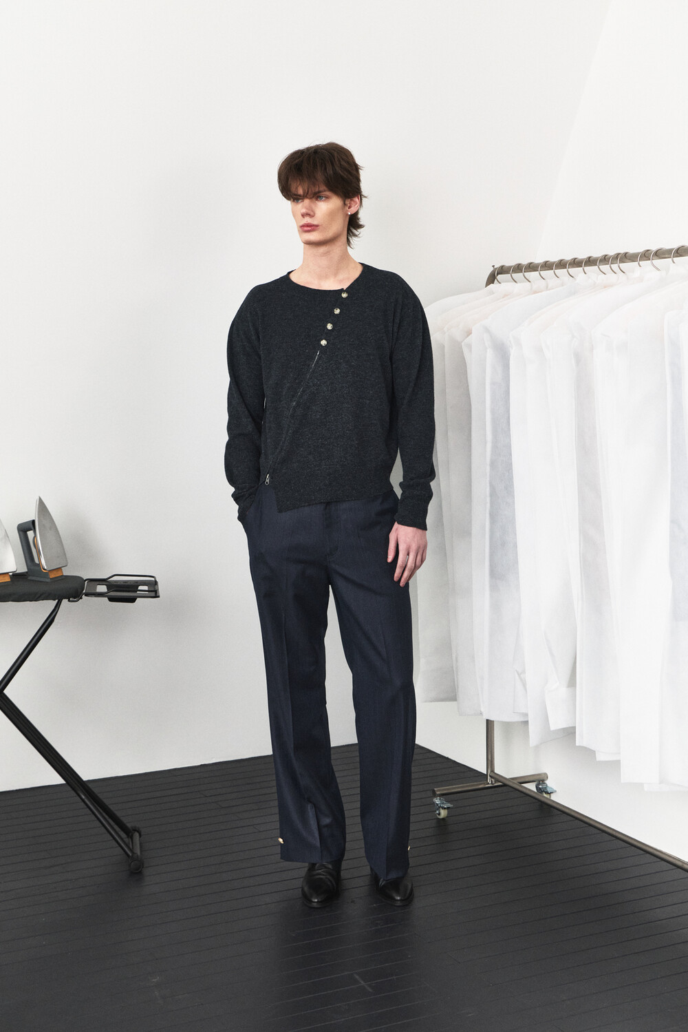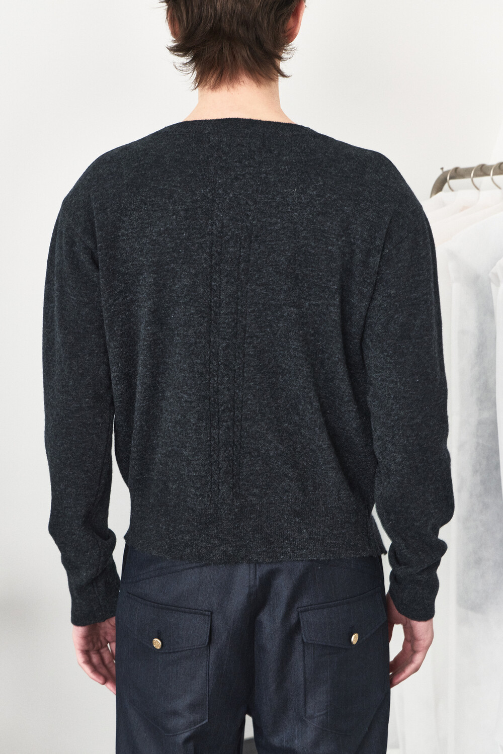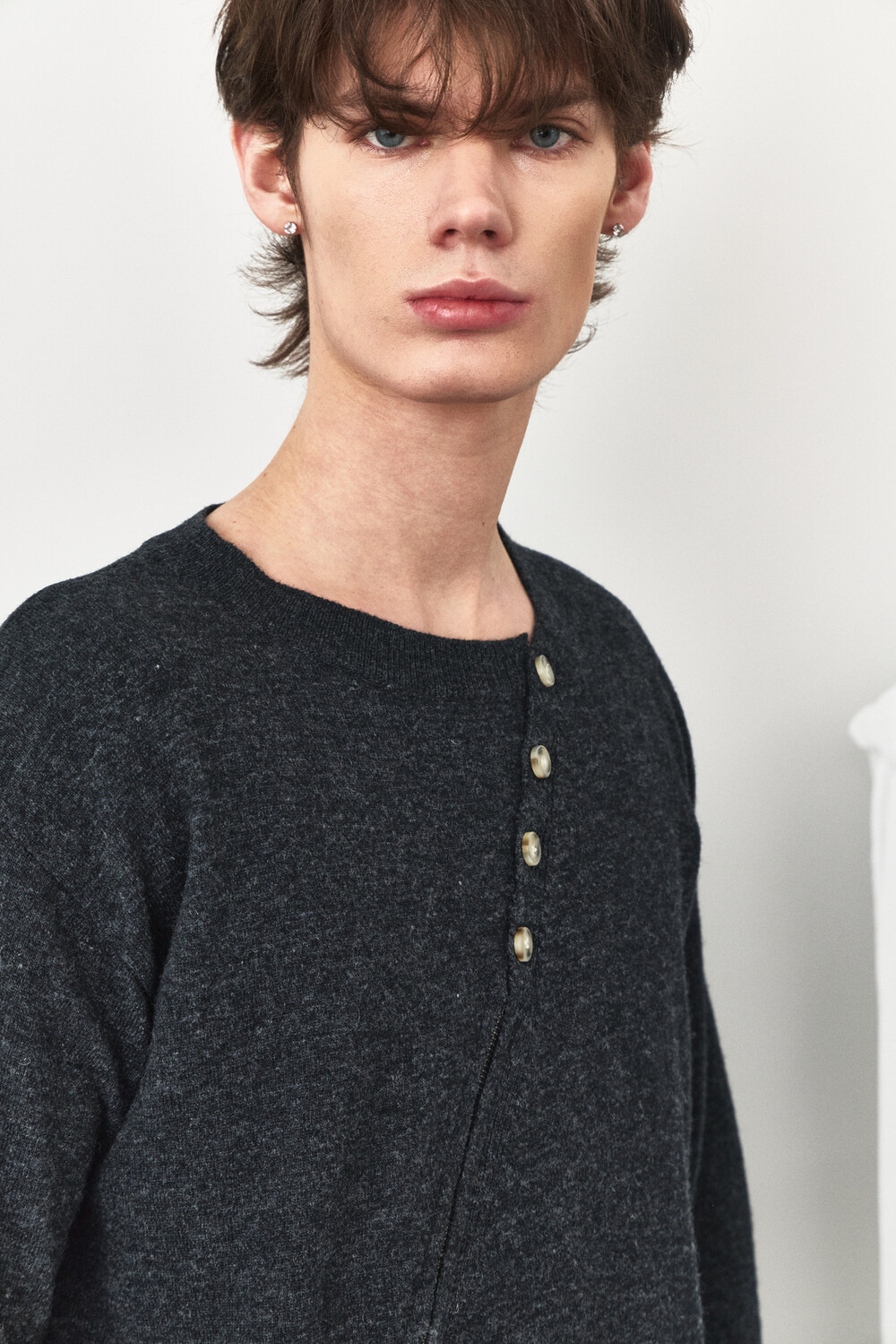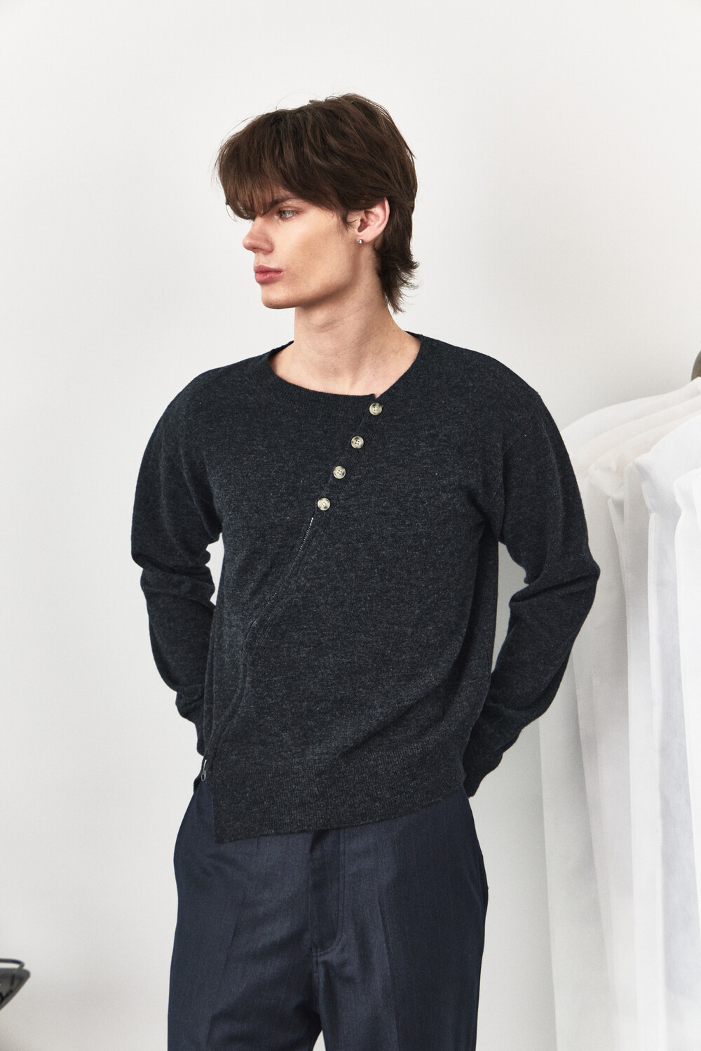 Twisted Button Zip-Up Knit - Charcoal